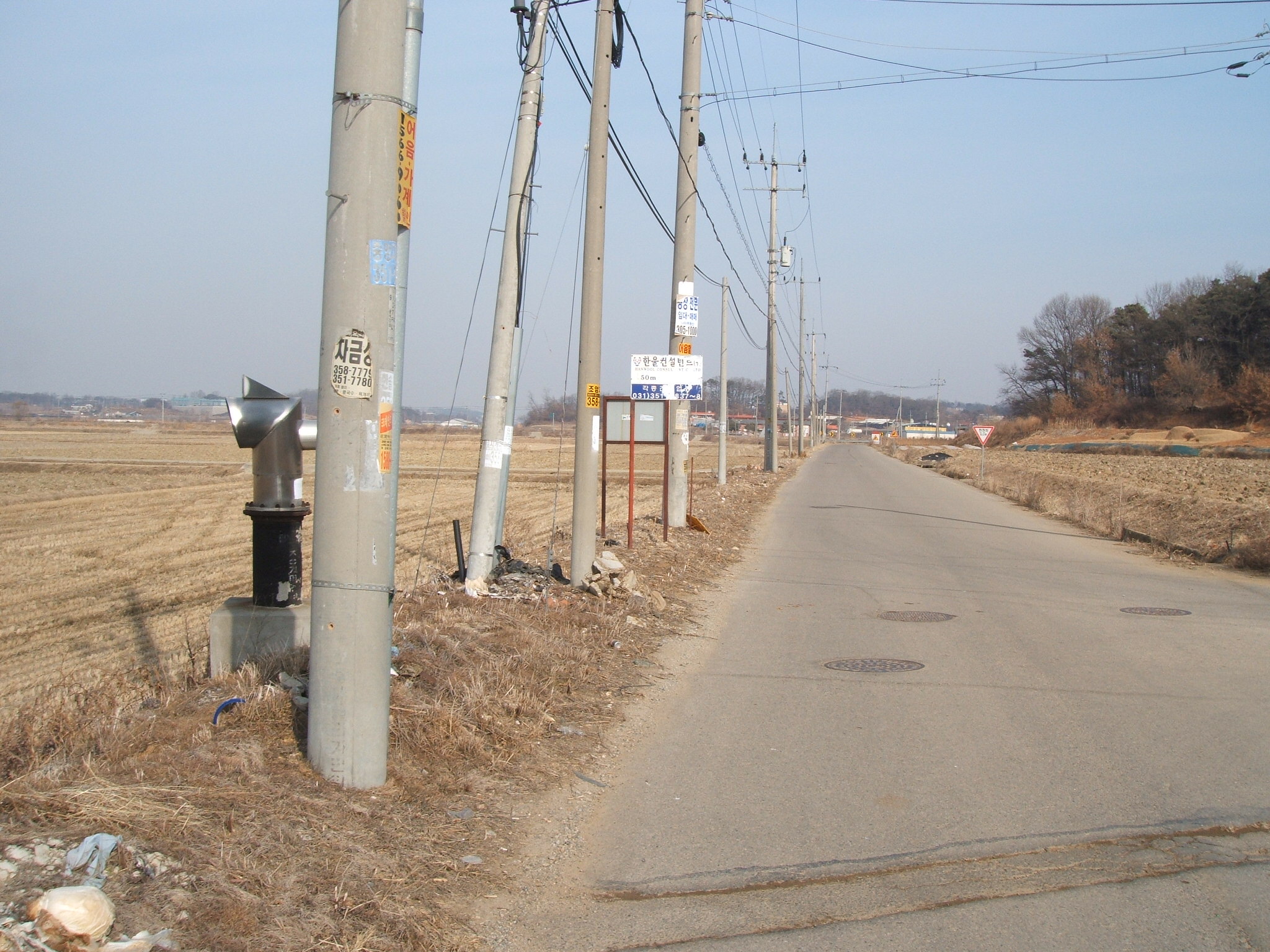 그런데 여기서 저는 기왕 타는 거, 시간도 널널하겠다 노선 형태상 욕심을 좀 부려서 한 정류장 위인 하수처리장으로 가서 타자는 생각을 하게 되었습니다. 슬슬 하수처리장을 향해 걸어가는데, 길이 조금 헷갈리게 되어 있었지만 지도를 보며 맞는 길 찾아 걸어가니 오른편에 하수처리장이 보이더군요. 정류장 표지판은 당연히 없었지만, 정문 건너편에서 기다리면 되겠다 싶어 거기서 가만히 버스를 기다리게 되었죠. 멀리서 개짖는 소리가 들리는 것 빼고는 아주 조용했는데, 제가 할 것이라고는 가만히 버스 기다리는 것 밖에 없었습니다.