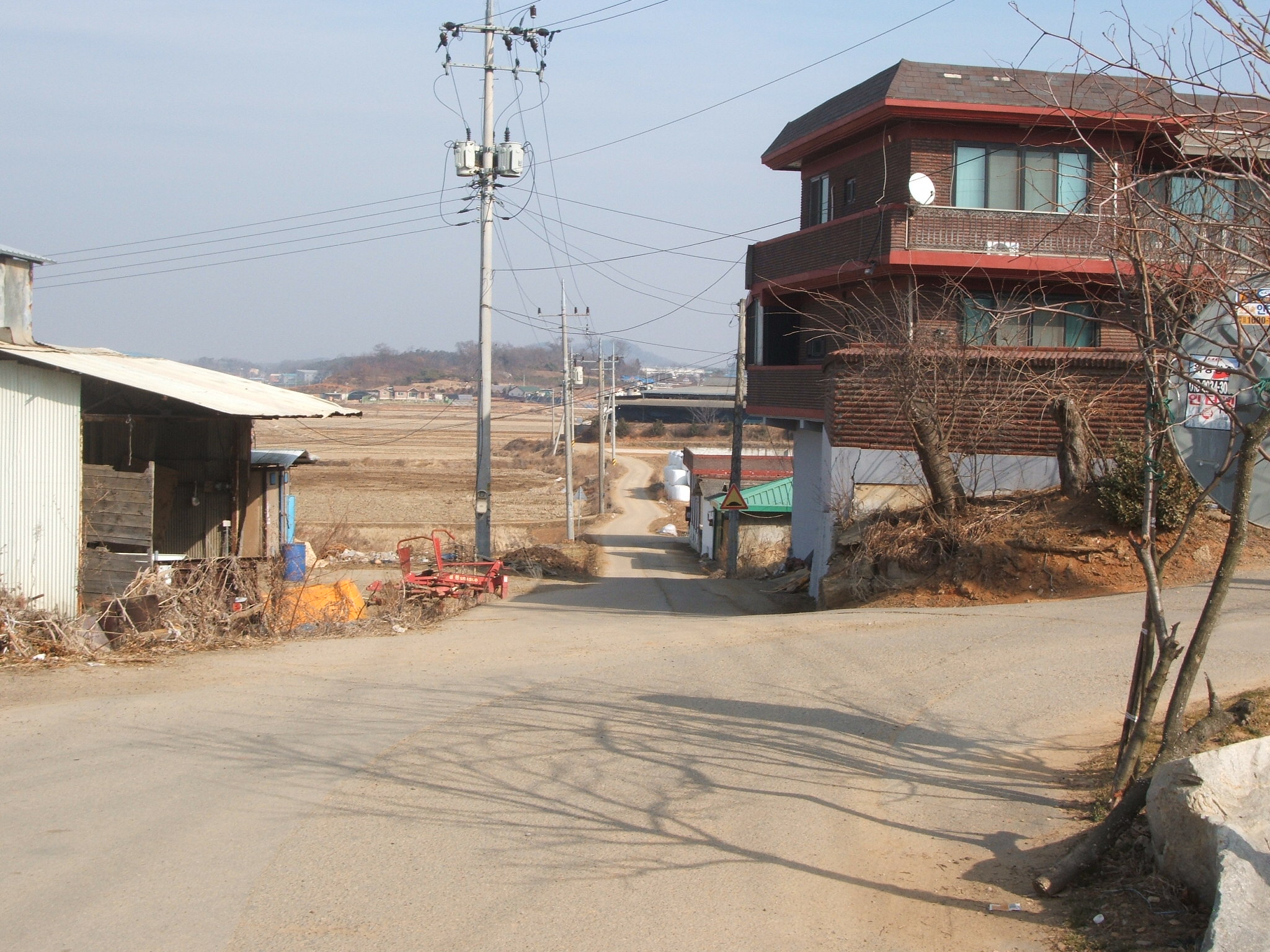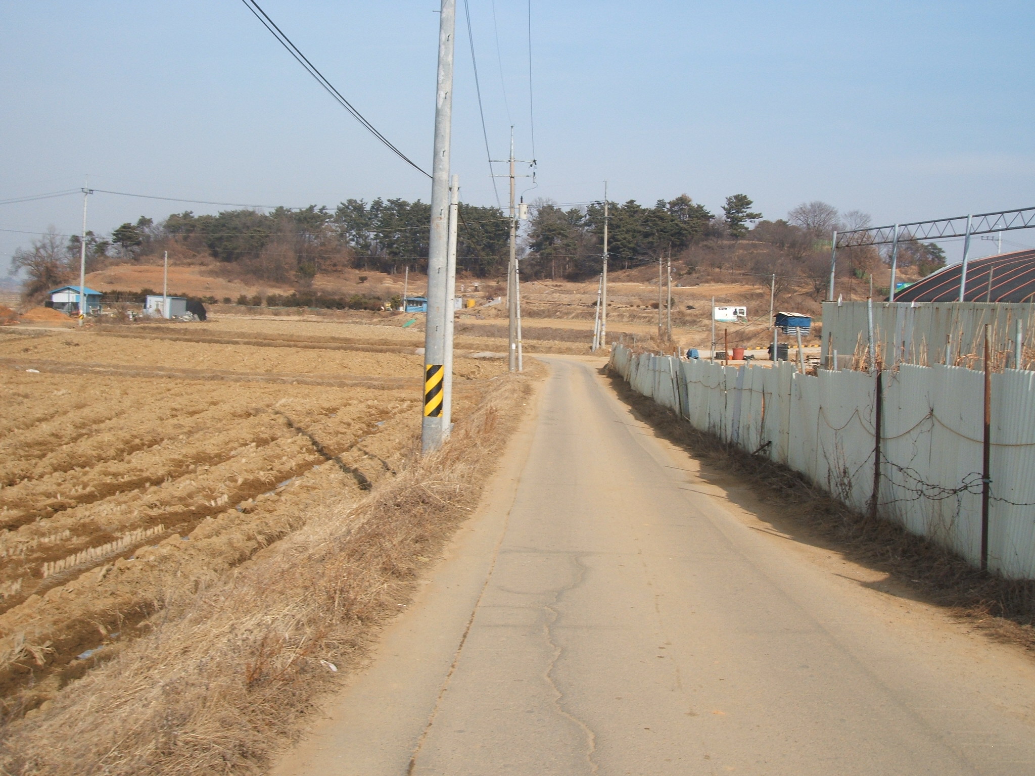지도를 보고 방향을 잡아보니 화산2리로 가는 걸로 보이는 길이 나와 그리로 걸어갑니다. 겨울이라 그런지 풀떼기 비슷한 것도 안 보이고 왔다갔다 하는 사람도 안 보였지만 그래도 전체적인 풍경은 나름대로 볼만하더군요. 화산1리에서 2리로 넘어가는 것은 우회전 한 번만 해주면 되지만, 주의점도 있기에 사진을 올려봅니다.