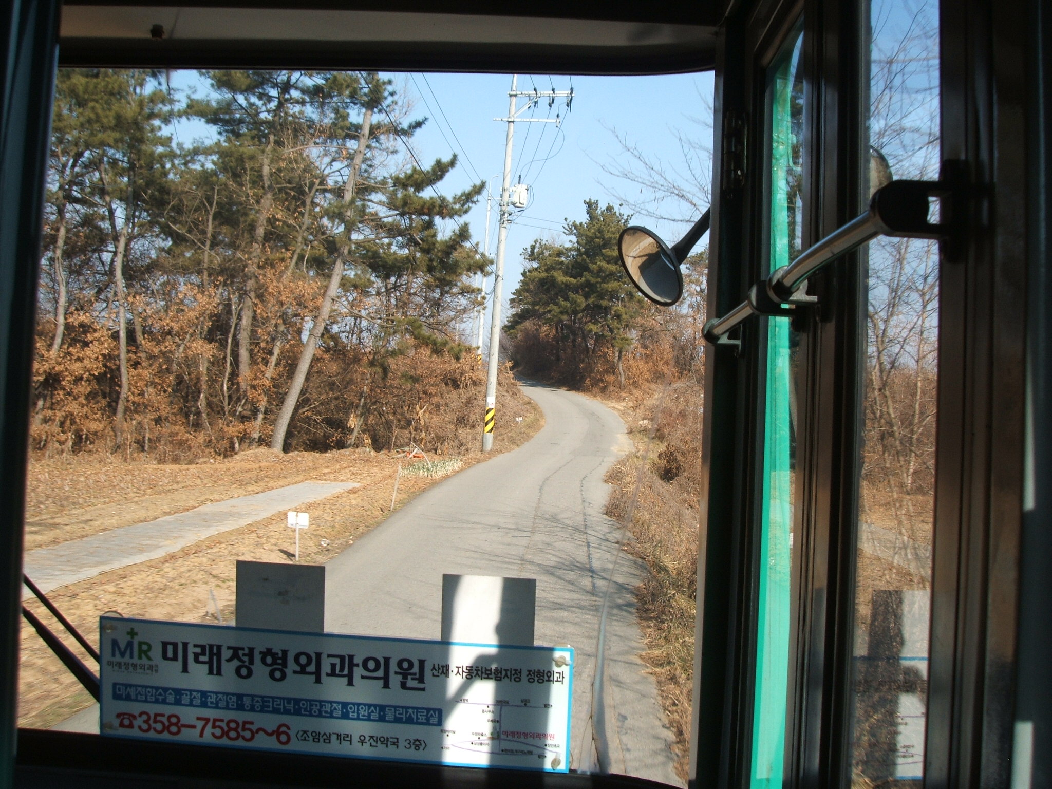 결국 정말 원치 않았지만 저번과 똑같은 장소에서 화산2리 노선을 타게 되었는데 역시 이번에도 기사아저씨께서 어디 가냐며 잡습니다. 조암이라고 대답했다간 바로 내림당하는 거라서 참 망설여졌지만, 아까 하수처리장 앞에서 있었던 일을 이야기하며 조암으로 간다고 하니 천만 다행히도 기사아저씨께서 타라고 하십니다. 그런데 다시 하수처리장으로 좌회전하기 직전에 운평리 쪽에서 시내버스 하나가 달려와 제가 탄 버스를 지나쳐 조암쪽으로 가 버리는 것을 봅니다(나중에 시간을 보니까 운평리에서 오후 1시 40분에 출발한 차였습니다).