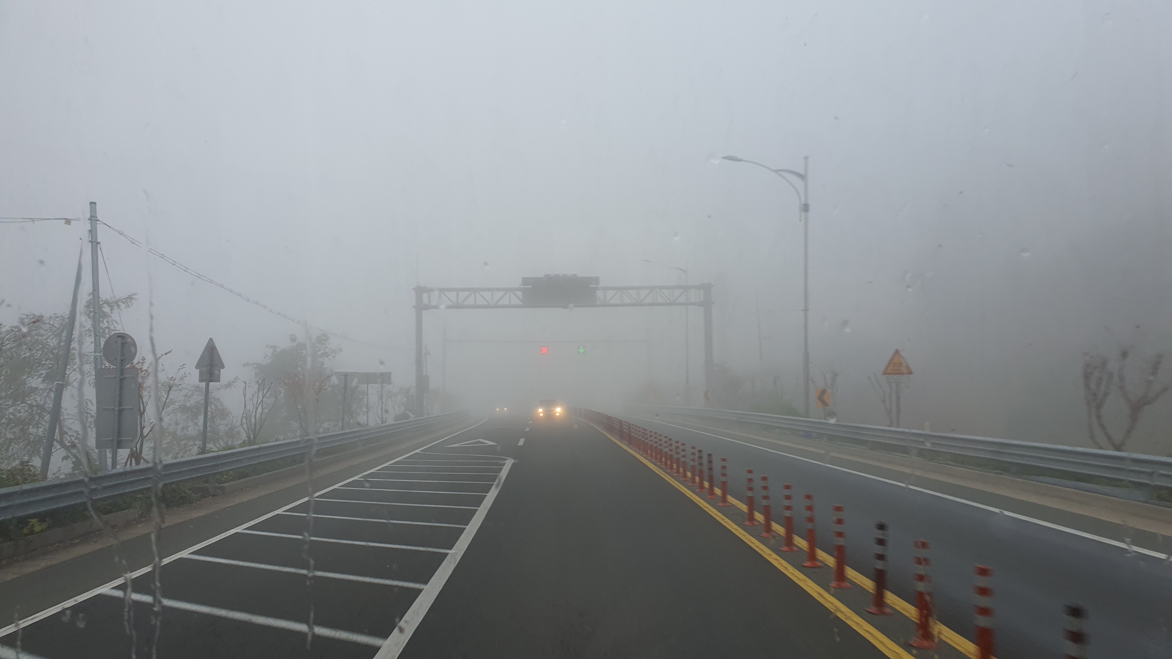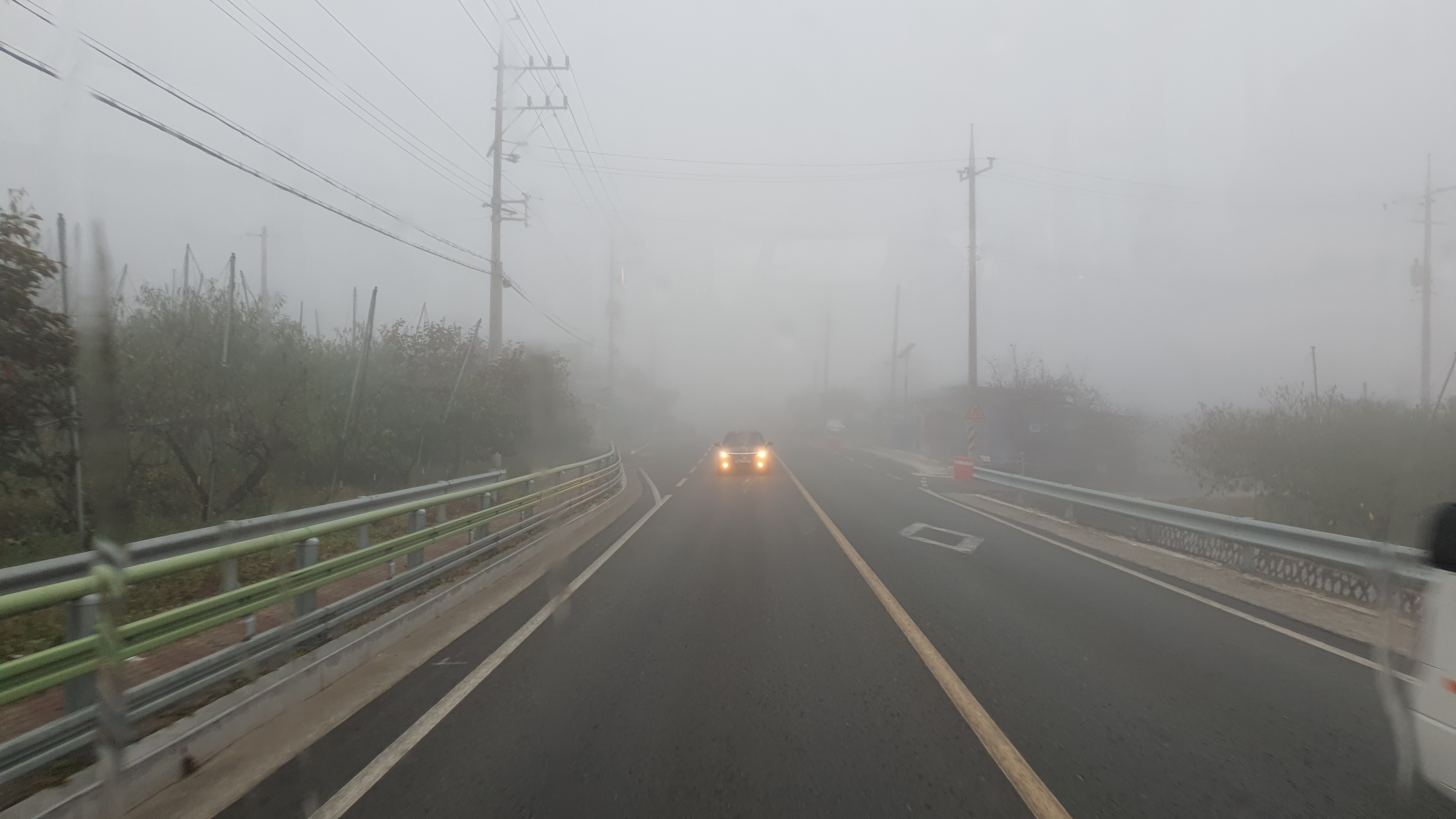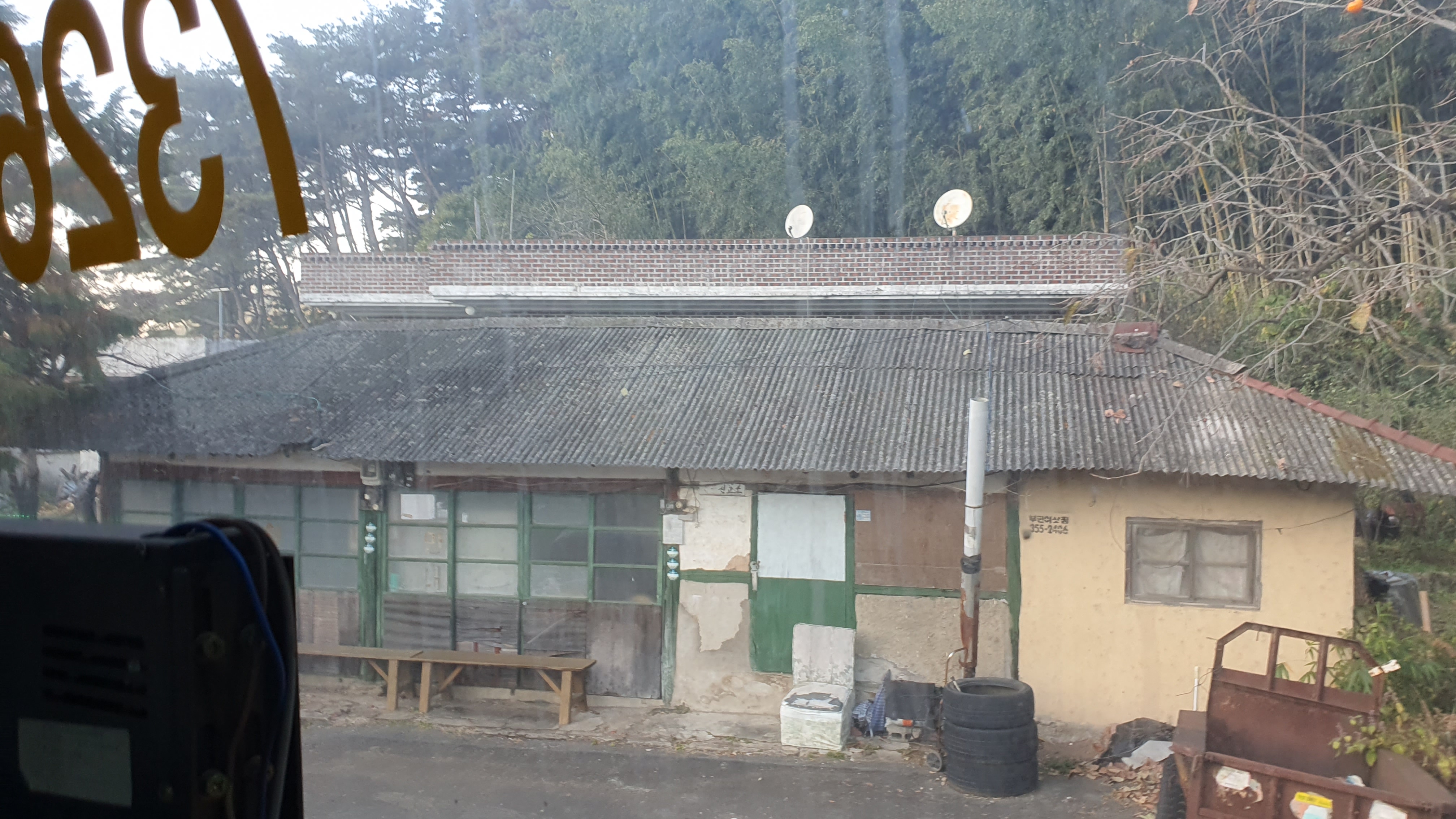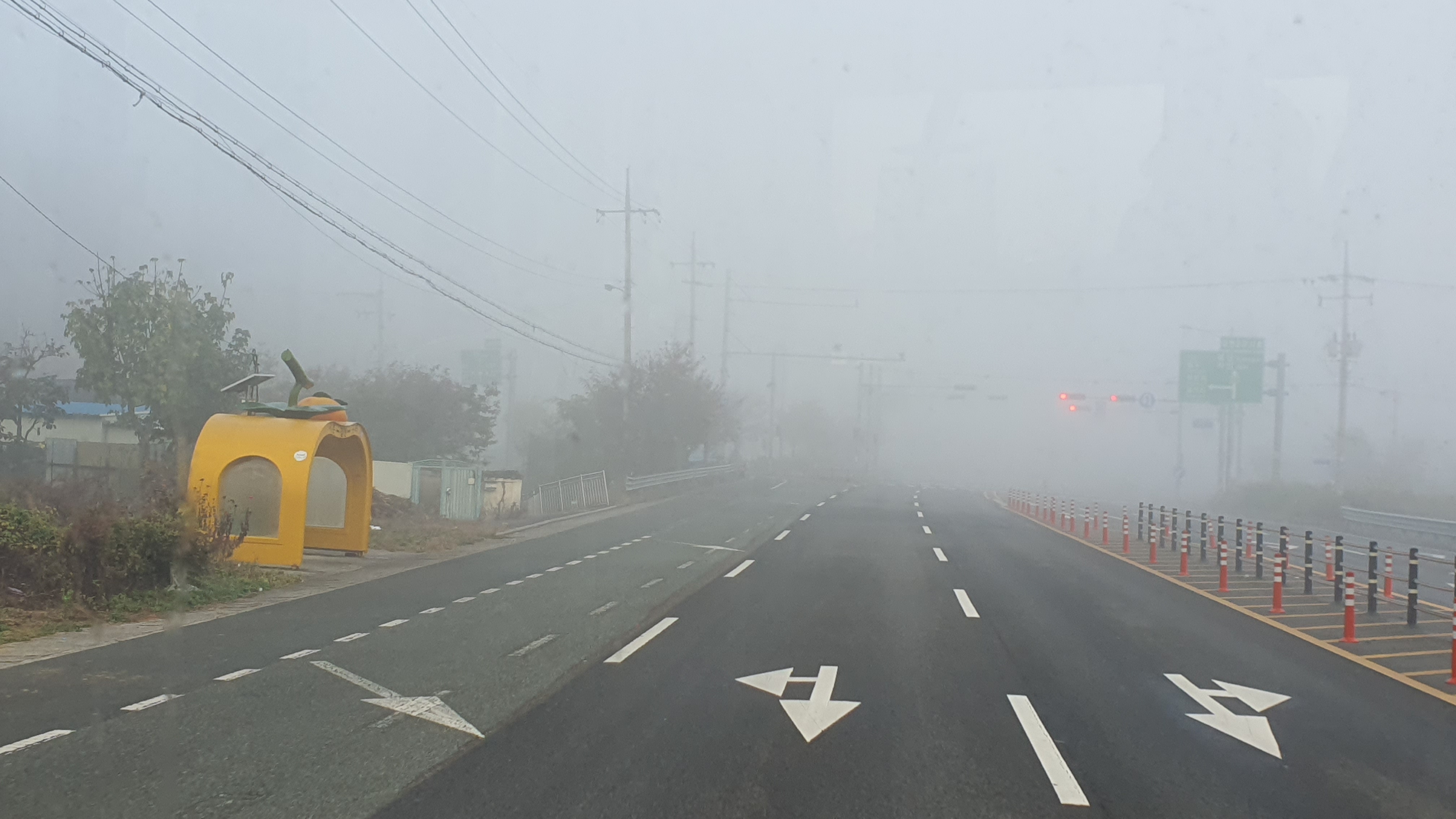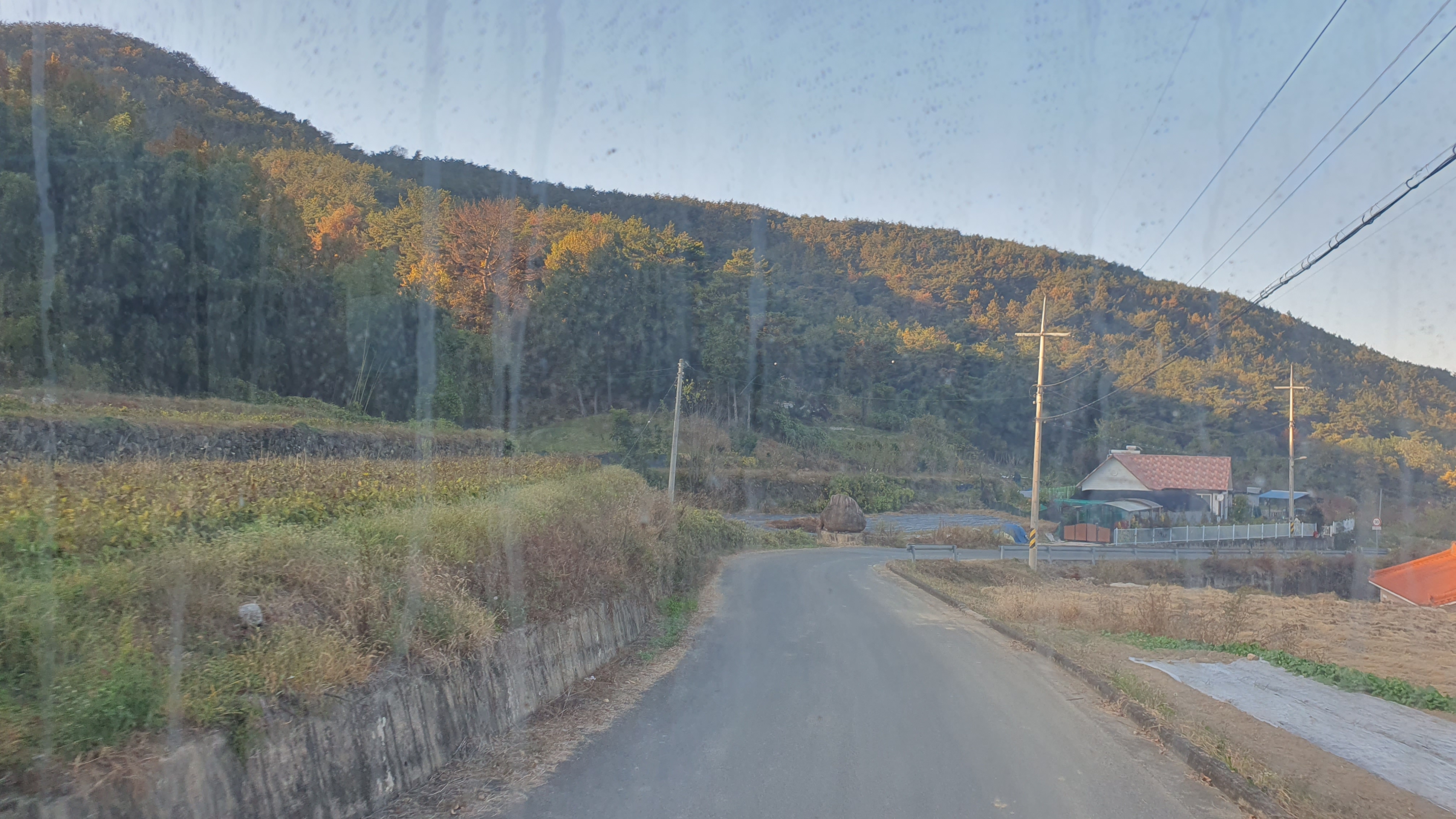 돈치재터널을 넘어오니 다시 안개가 좀 끼어 있었지만 아까 청도역에서만큼 자욱하진 않았습니다. 내리막을 내려오니 김전2리가 나왔는데, 이 버스가 김전2리 안길을 들어가주더군요. 김전2리는 동곡에서 갈고개로 가는 노선이 ㅓ형으로 들르는 곳이라서 행복버스는 마을 안으로 들어가지 않을 거라 예상했었는데, 의도치 않게 여기를 가보는 이득이 생기네요. 쩌는 1차로 길 역시 챙겨가구요. 오우 ㅋㅋ
