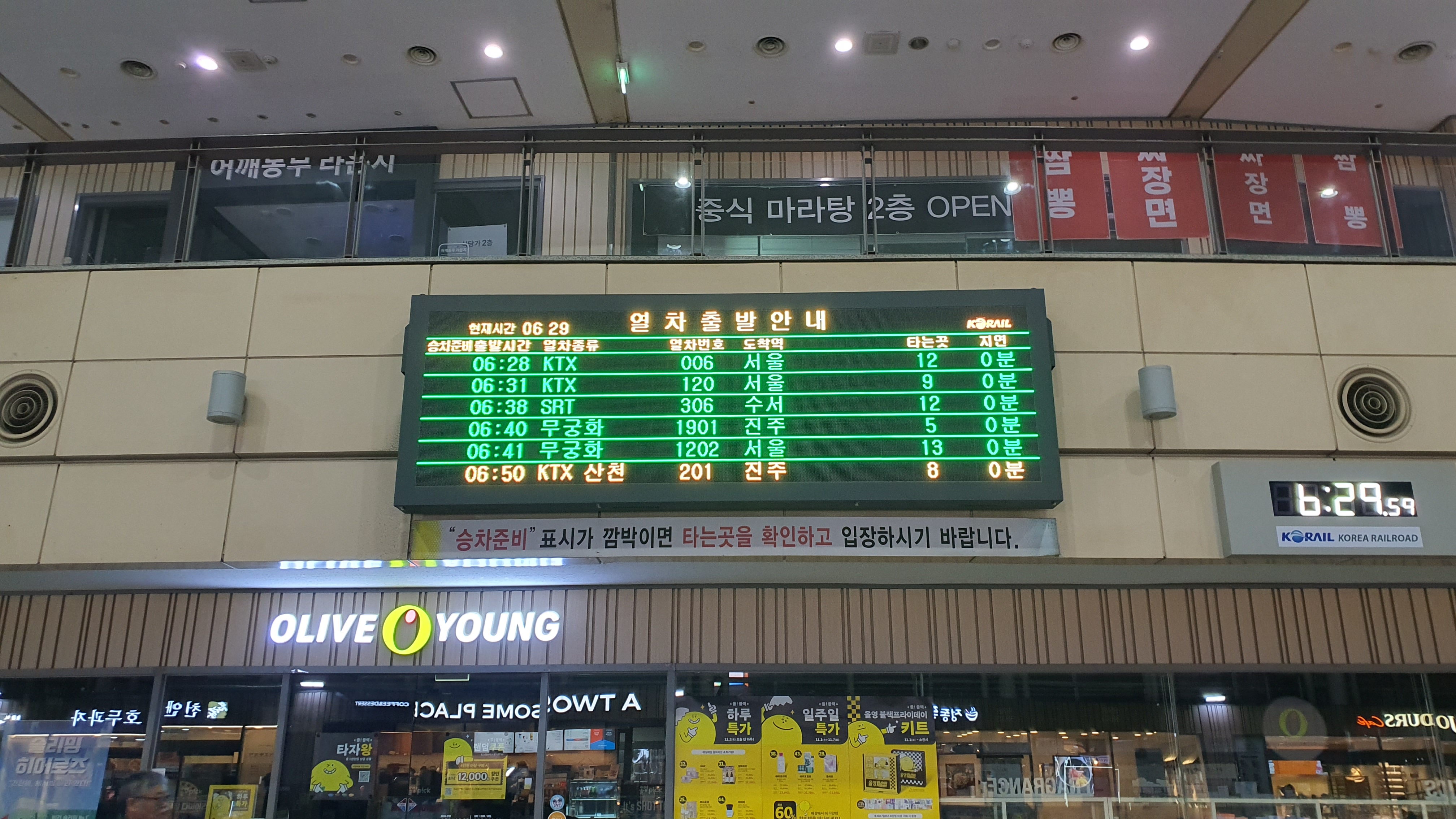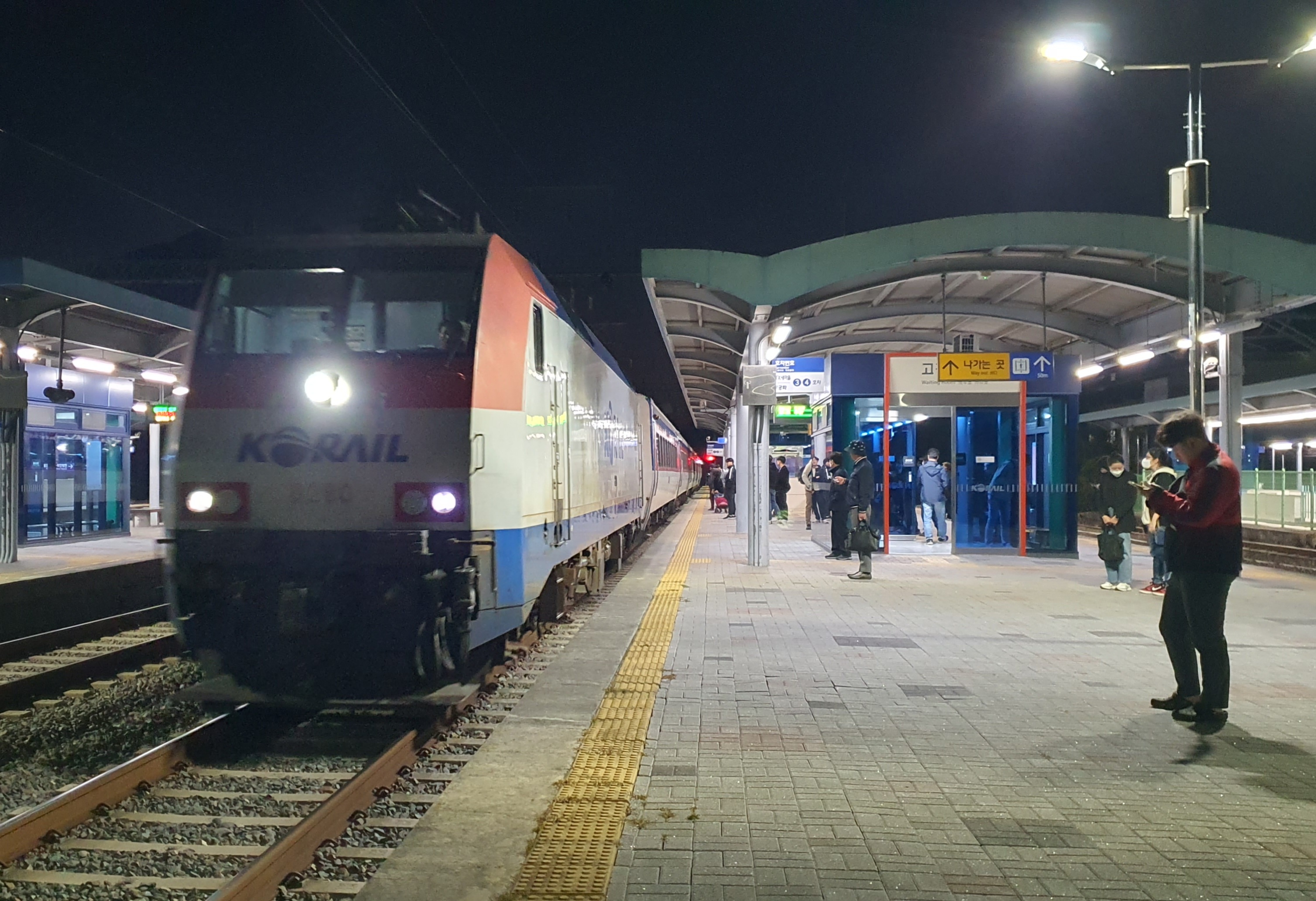 복권방도 마침 하나 있길래 복권도 사고 구경을 마친 저는 역으로 돌아와 부산방향 승강장으로 슬슬 걸어갑니다. 조치원역처럼 지하 통로가 있었는데, 승강장에 나와보니 열차를 기다리는 사람들이 정말 많았습니다.
