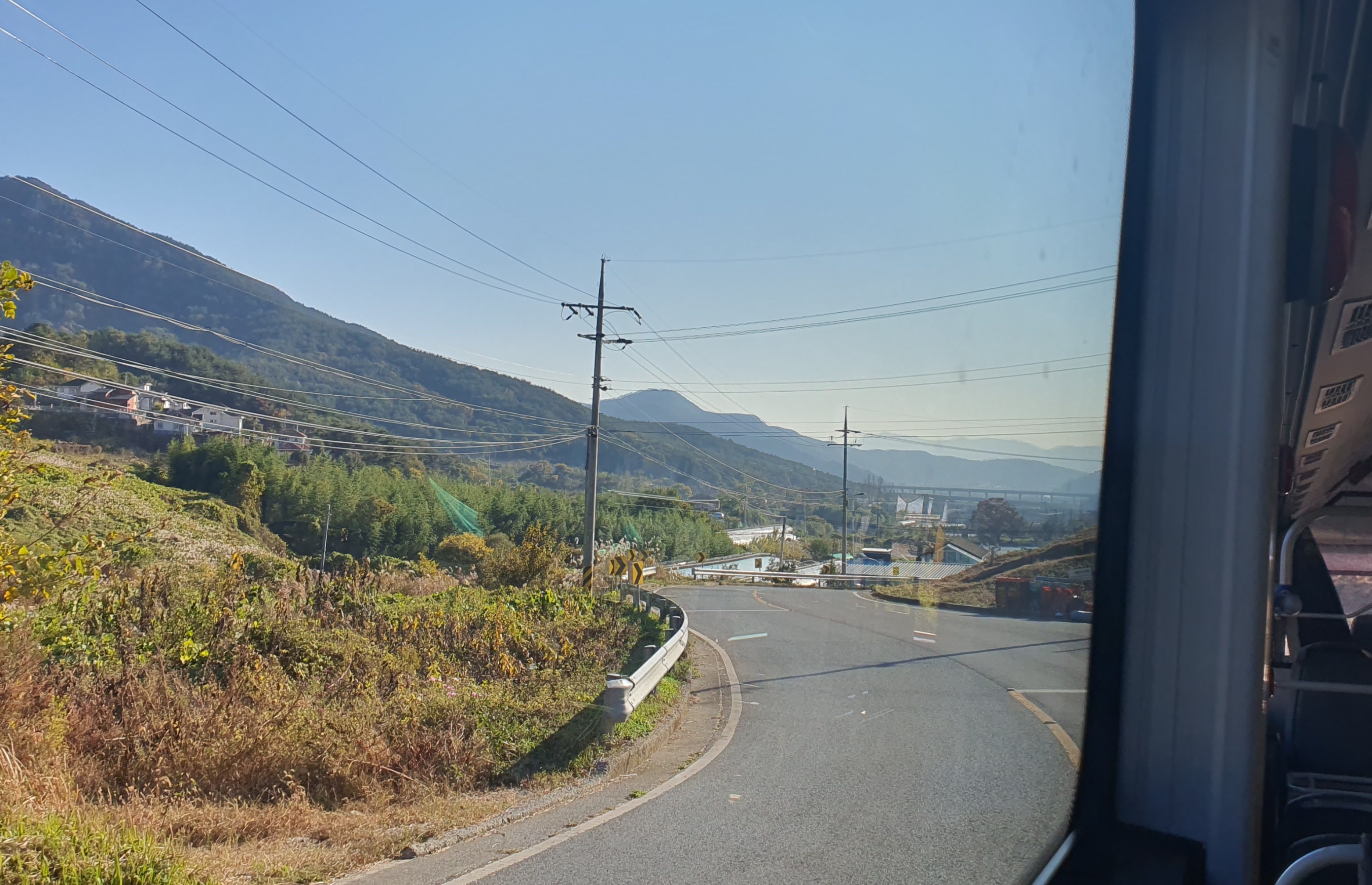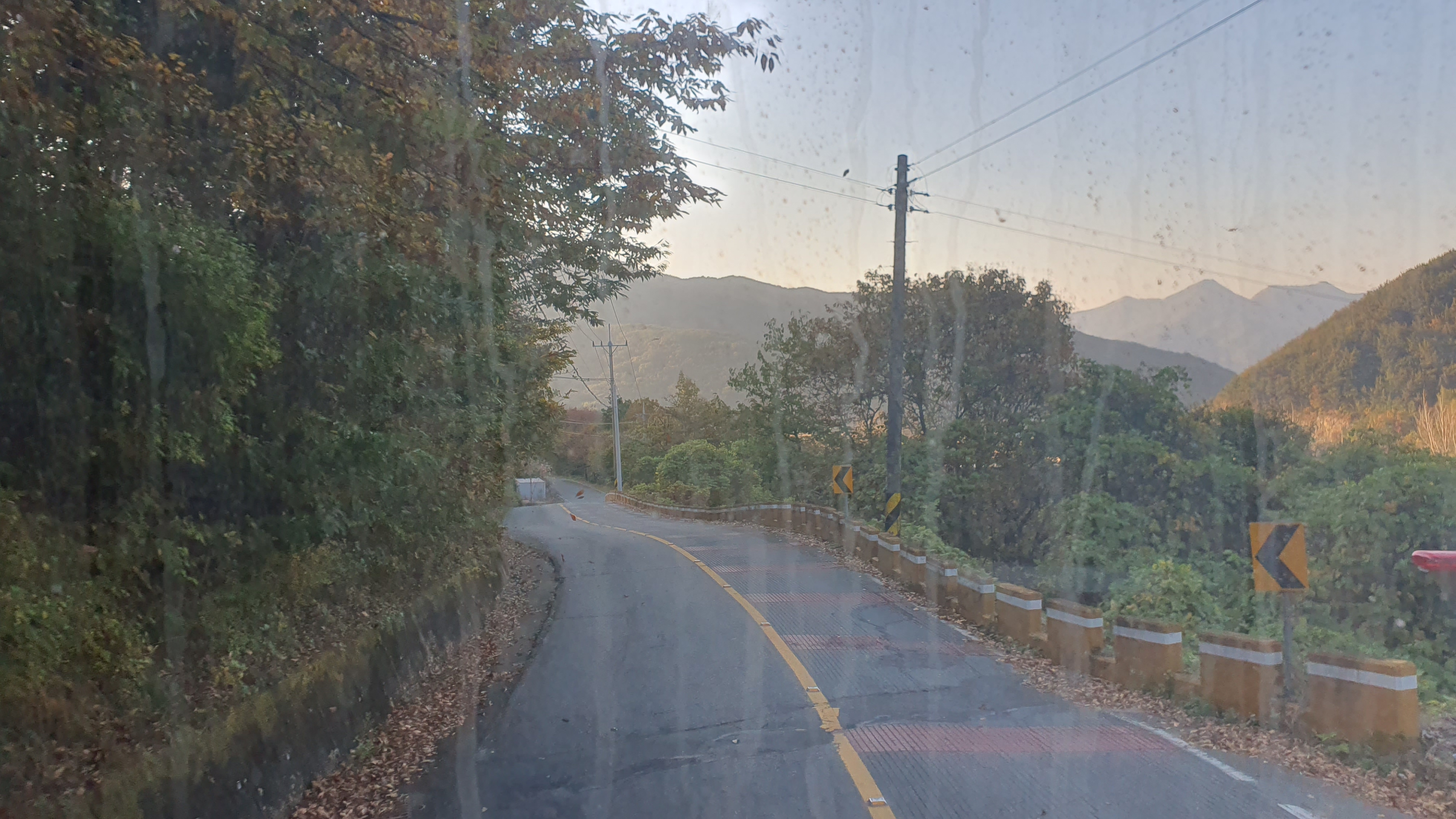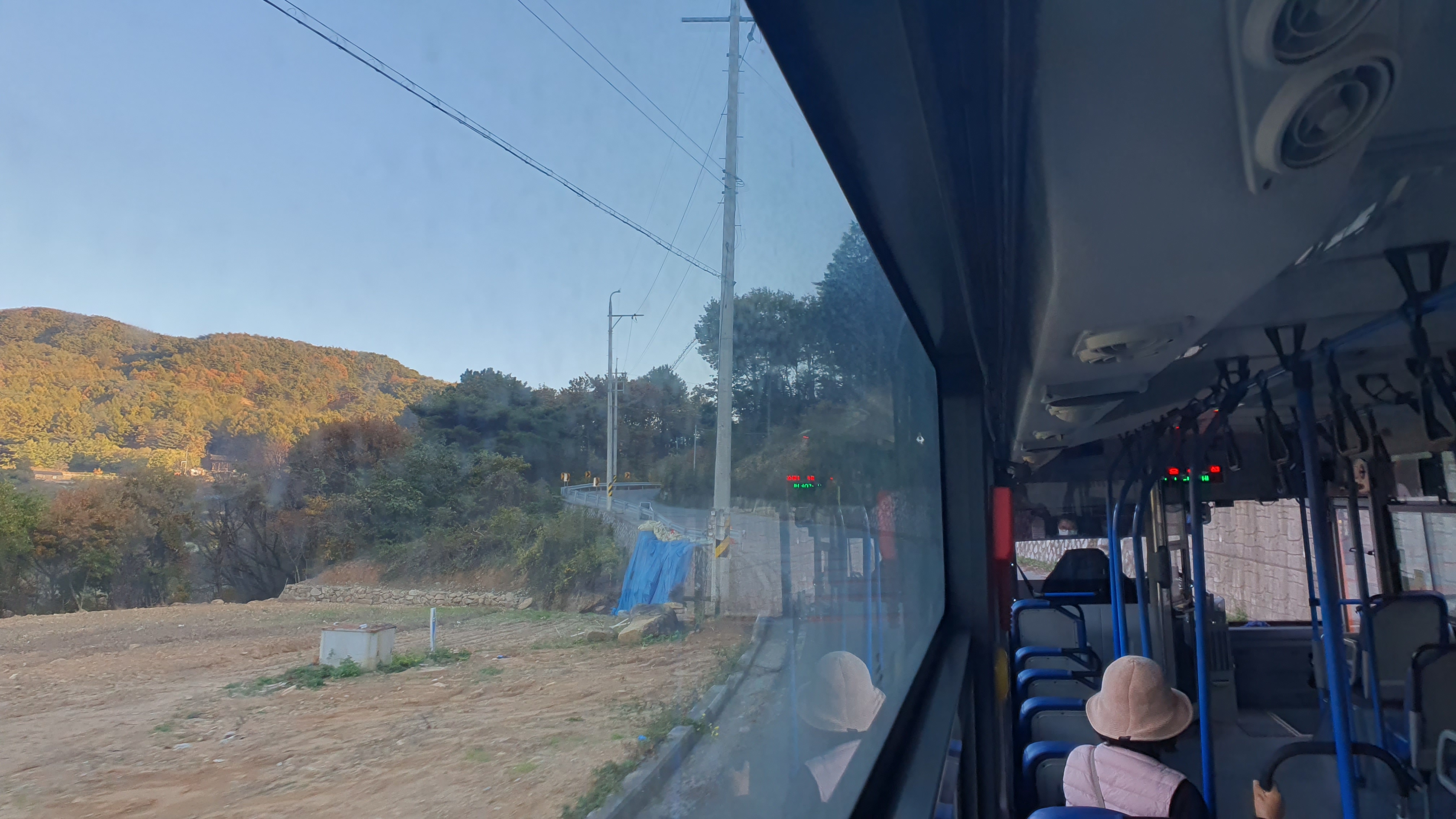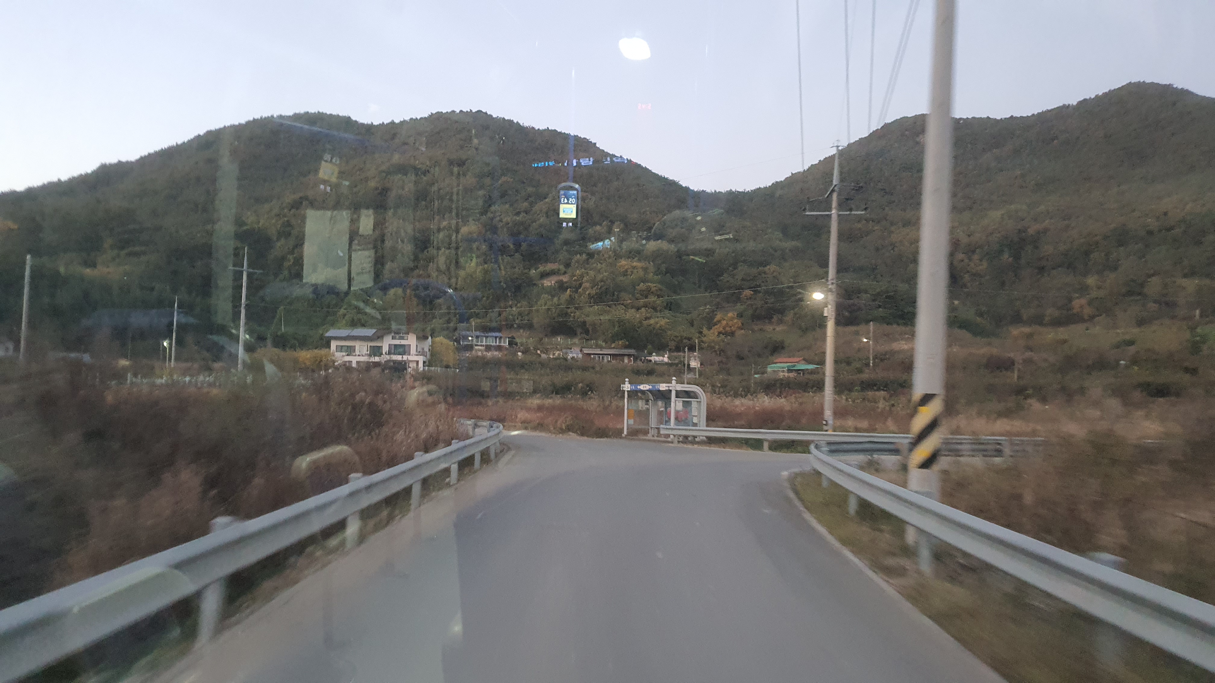 버스 안에는 여학생 한 명이 타고 있었고, 저를 태운 버스는 바로 남촌을 떠납니다. 차창으로 산봉우리들이 주변을 가득 메우고 있는 것이 보이는데, 이곳이 얼마나 첩첩산중이고 험준한 곳인지 말해주고 있는 듯했죠. 종점을 떠나자마자 펼쳐지는 급경사 내리막길은 정말 후덜덜합니다.