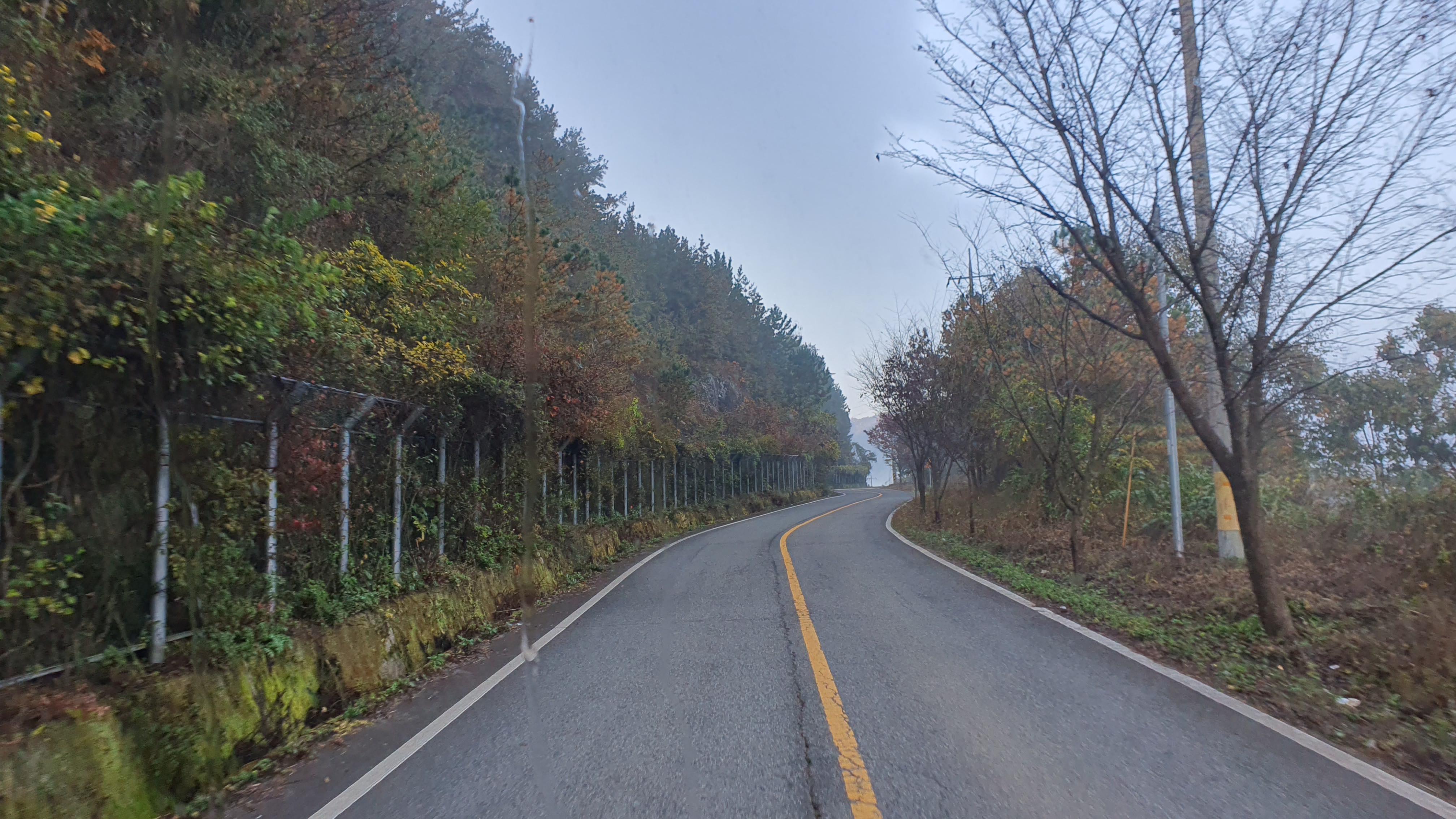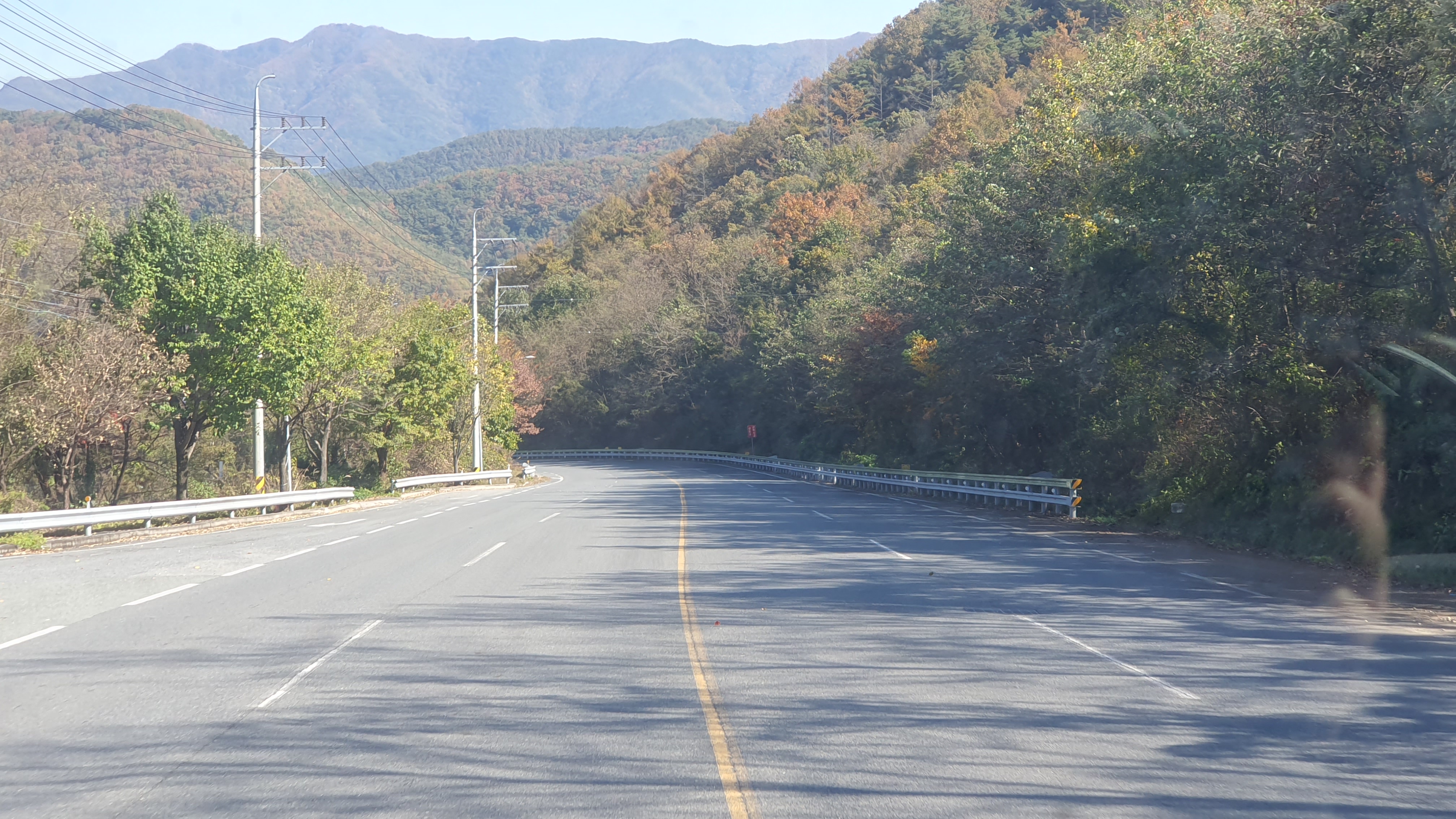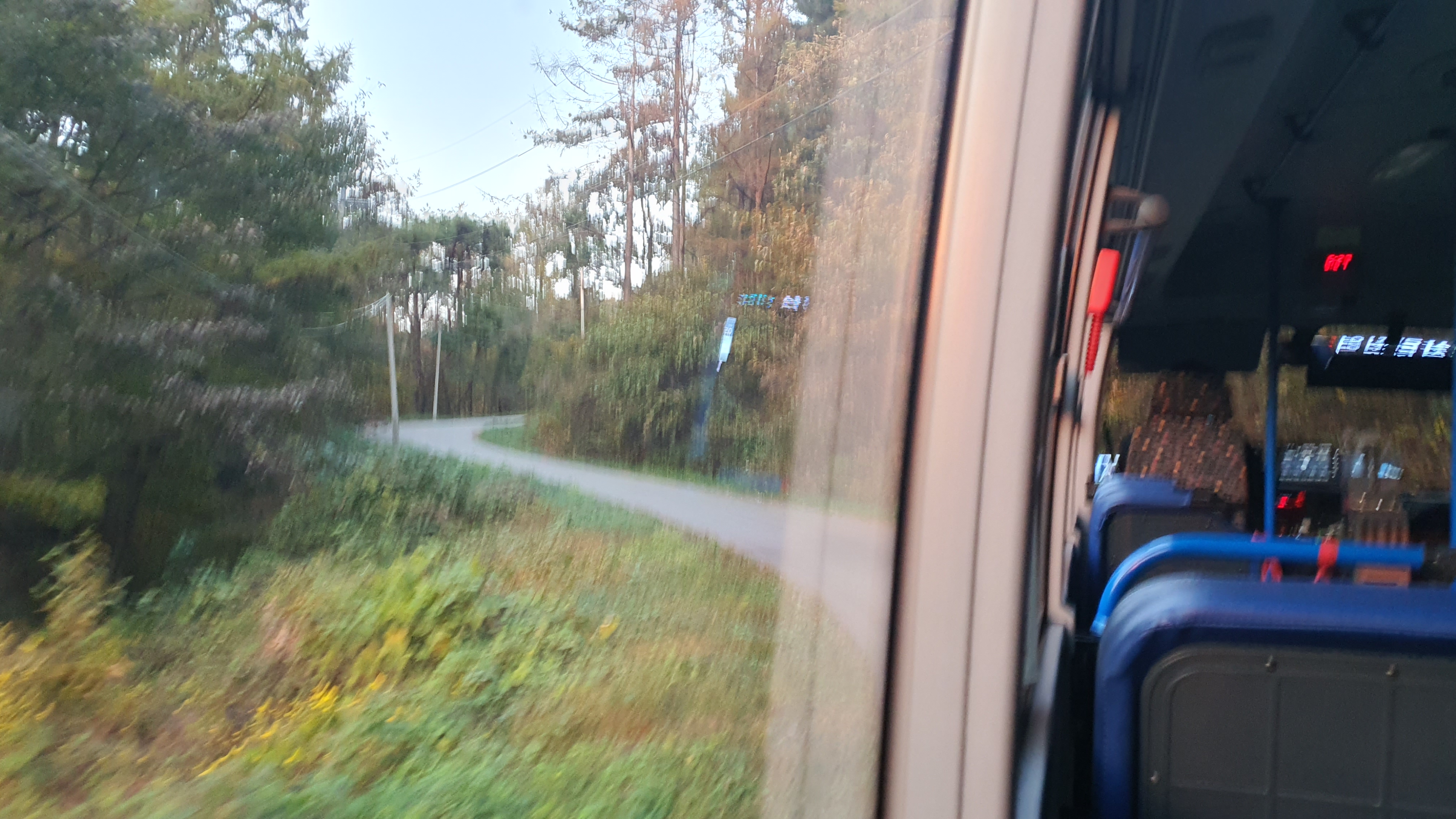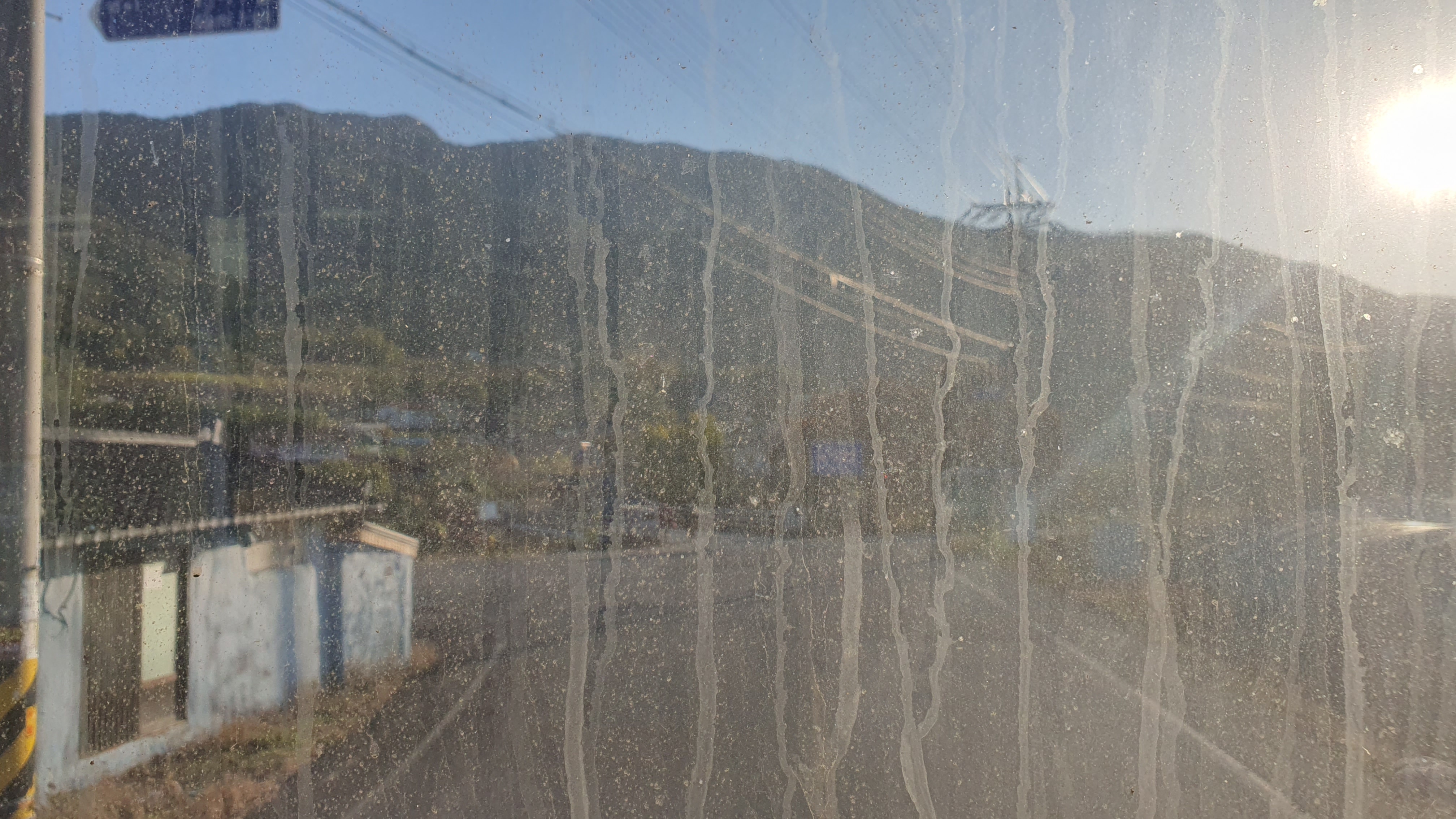 버스 안에는 여학생 한 명이 타고 있었고, 저를 태운 버스는 바로 남촌을 떠납니다. 차창으로 산봉우리들이 주변을 가득 메우고 있는 것이 보이는데, 이곳이 얼마나 첩첩산중이고 험준한 곳인지 말해주고 있는 듯했죠. 종점을 떠나자마자 펼쳐지는 급경사 내리막길은 정말 후덜덜합니다.