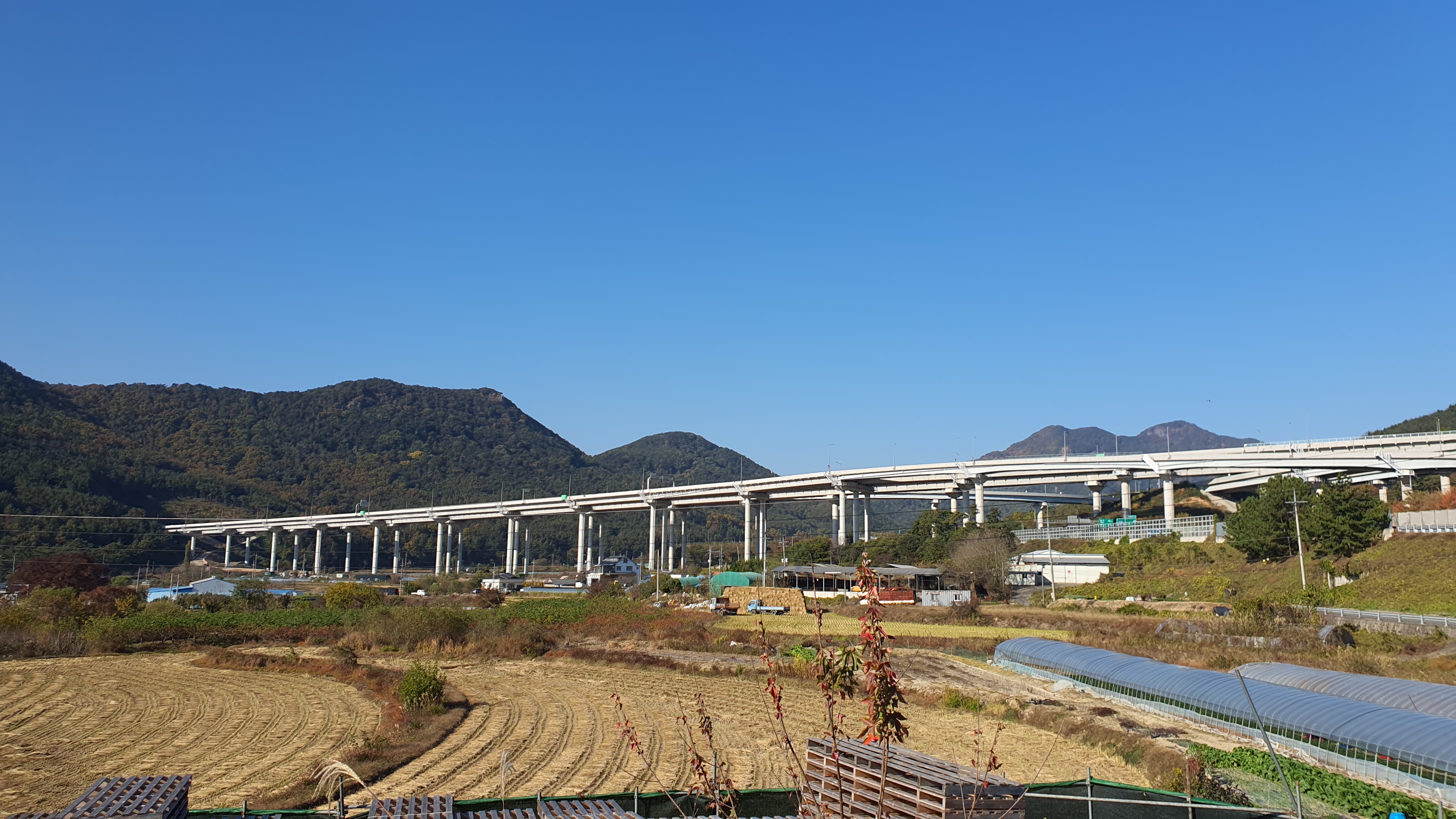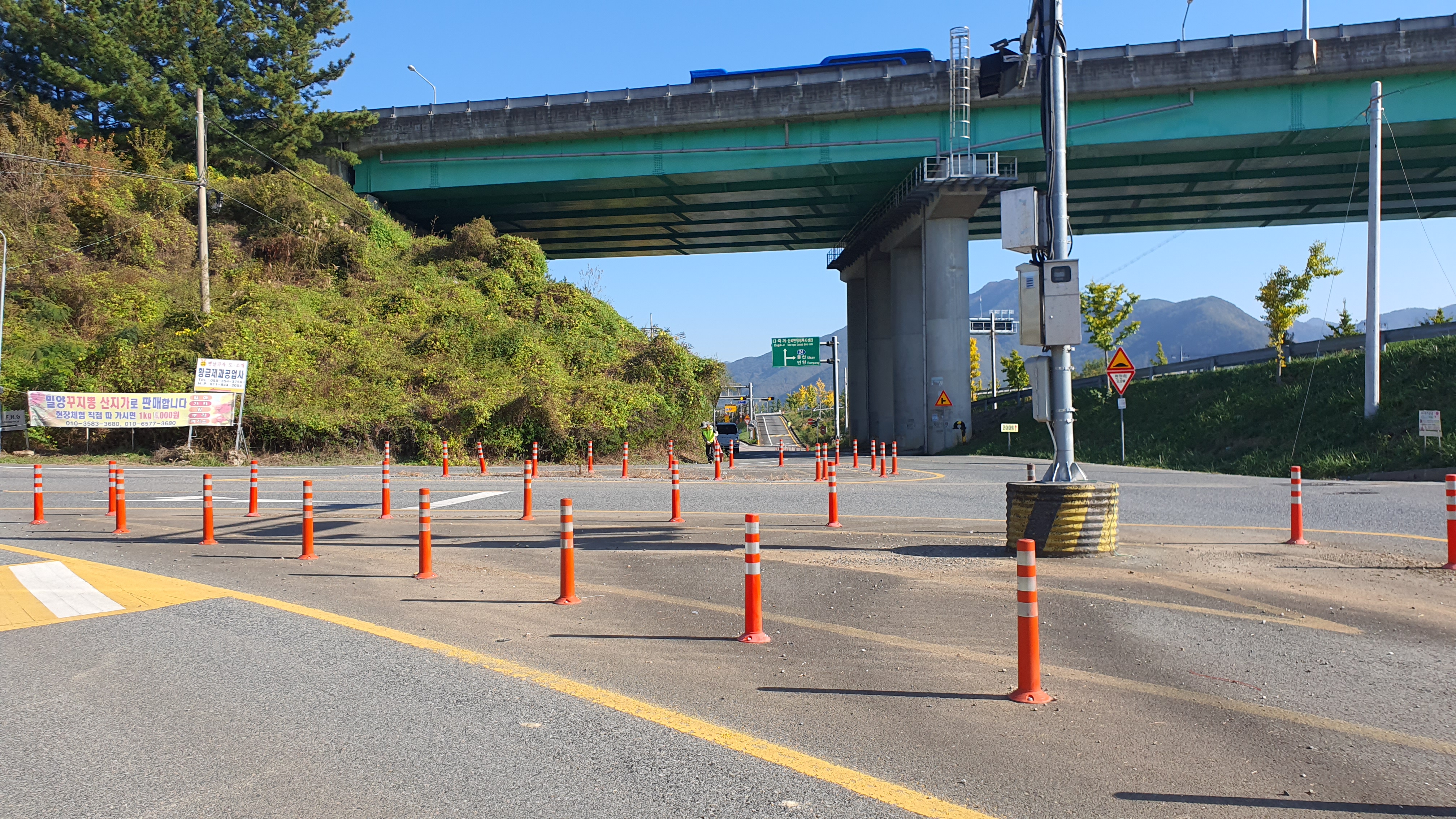 공장들을 보며 앞으로 나가니 고속도로(지도로 보니 대구부산 고속도로였습니다) 교각이 나오는데, 여기에서 양덕동 마을회관까지는 정말 지척이었기에 교각 밑에서 10분 정도 햇빛을 피하다가 나왔습니다.