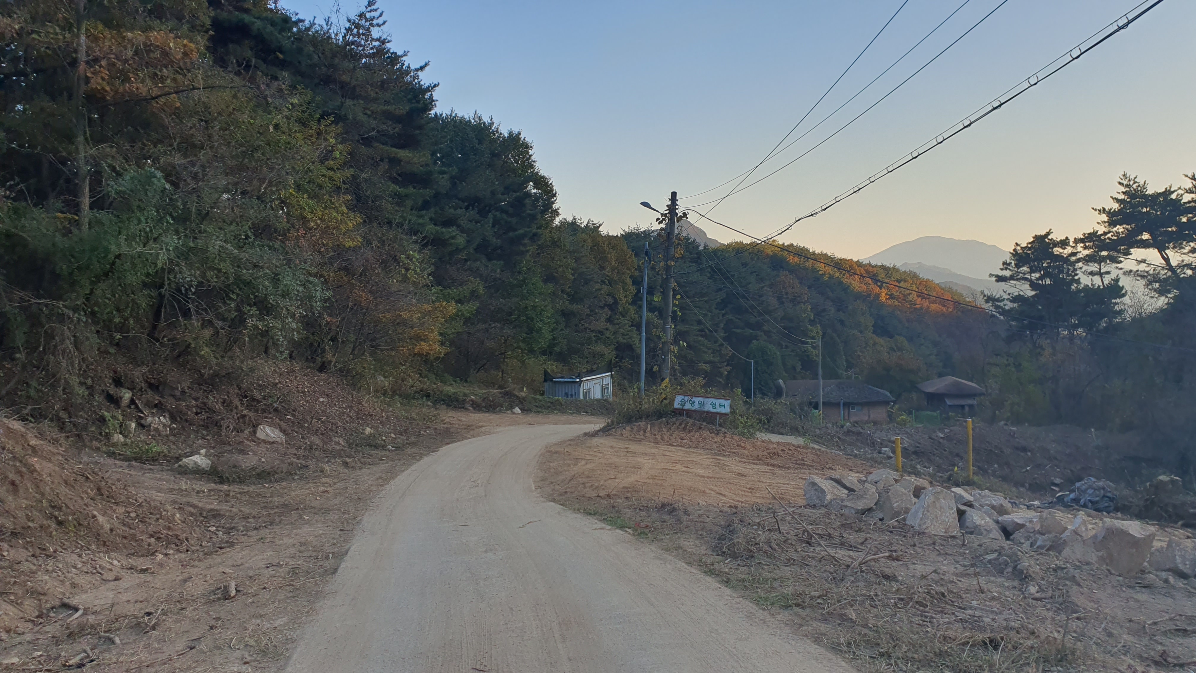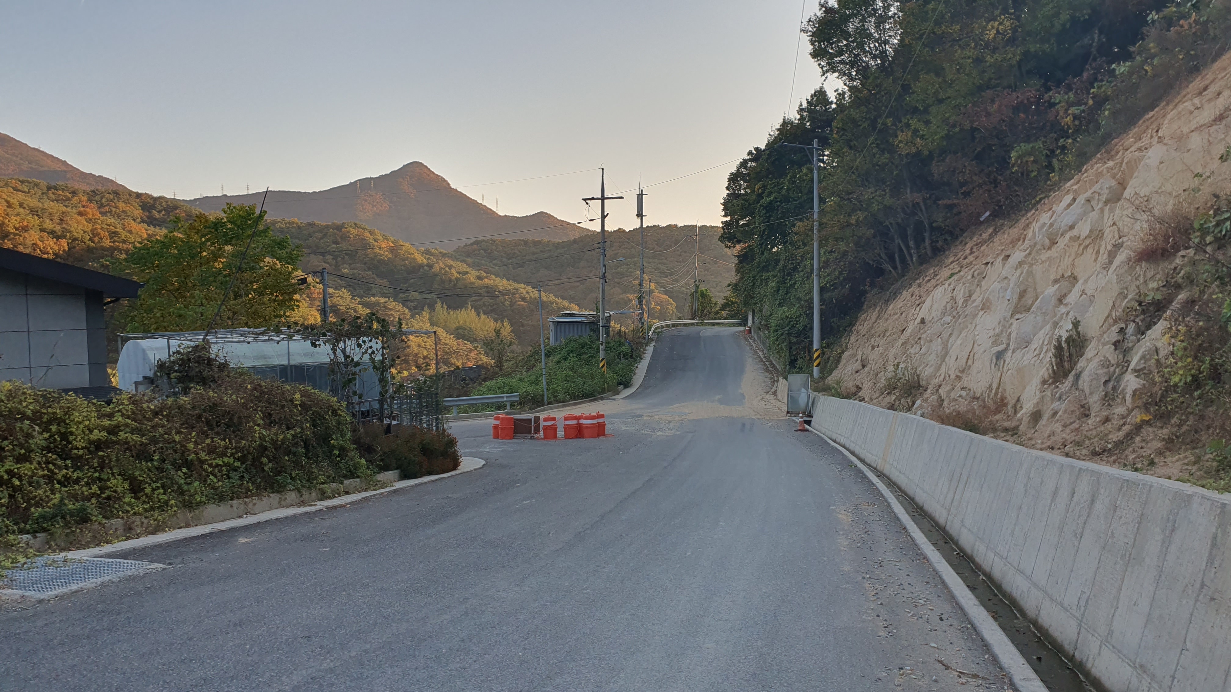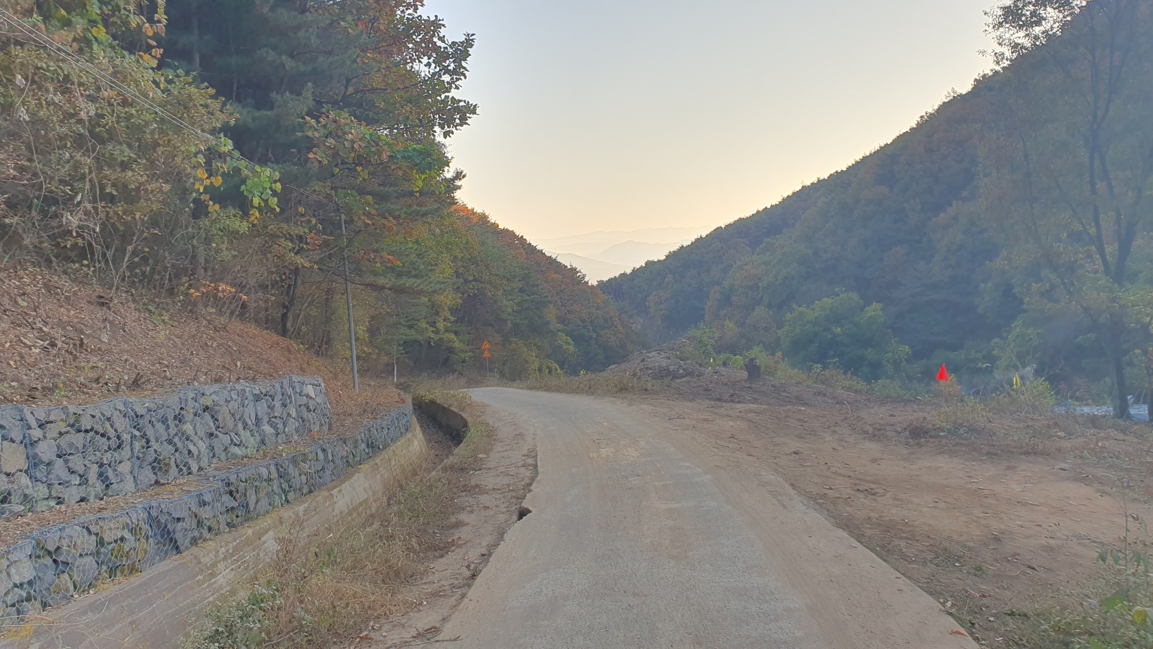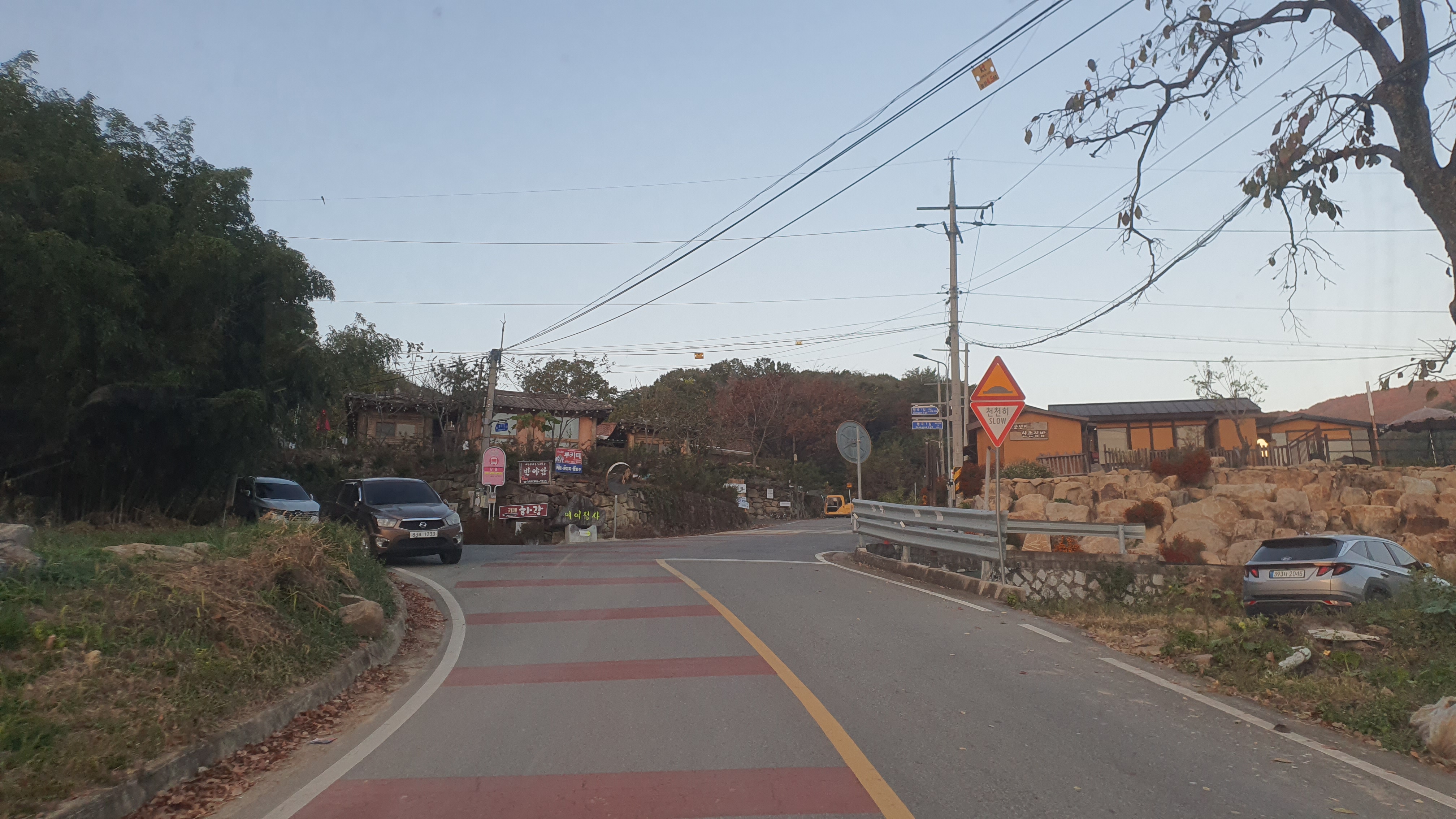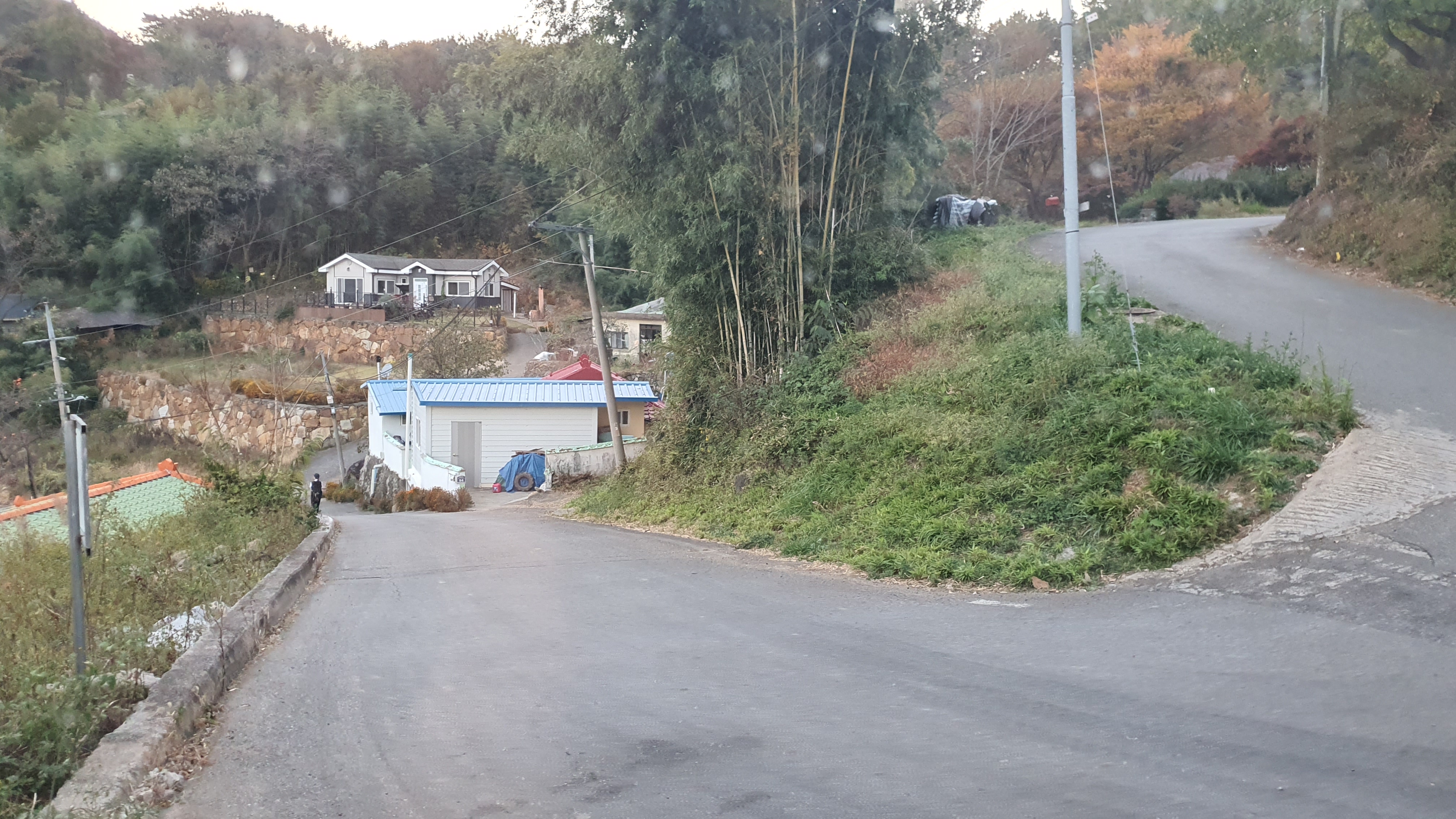 다음 버스는 오후 7시 20분이 되어야 옵니다. 이제는 정말 결전의 순간이 찾아오는데, 다행히 감물리 버스가 이 미칠듯한 오르막을 전부 올라와준 덕택에 이제는 내리막길을 따라 아래로 내려가는 일만이 남아있었습니다. 하지만 내리막을 내려가려던 저는 곧 장애물을 하나 만나게 되었습니다.