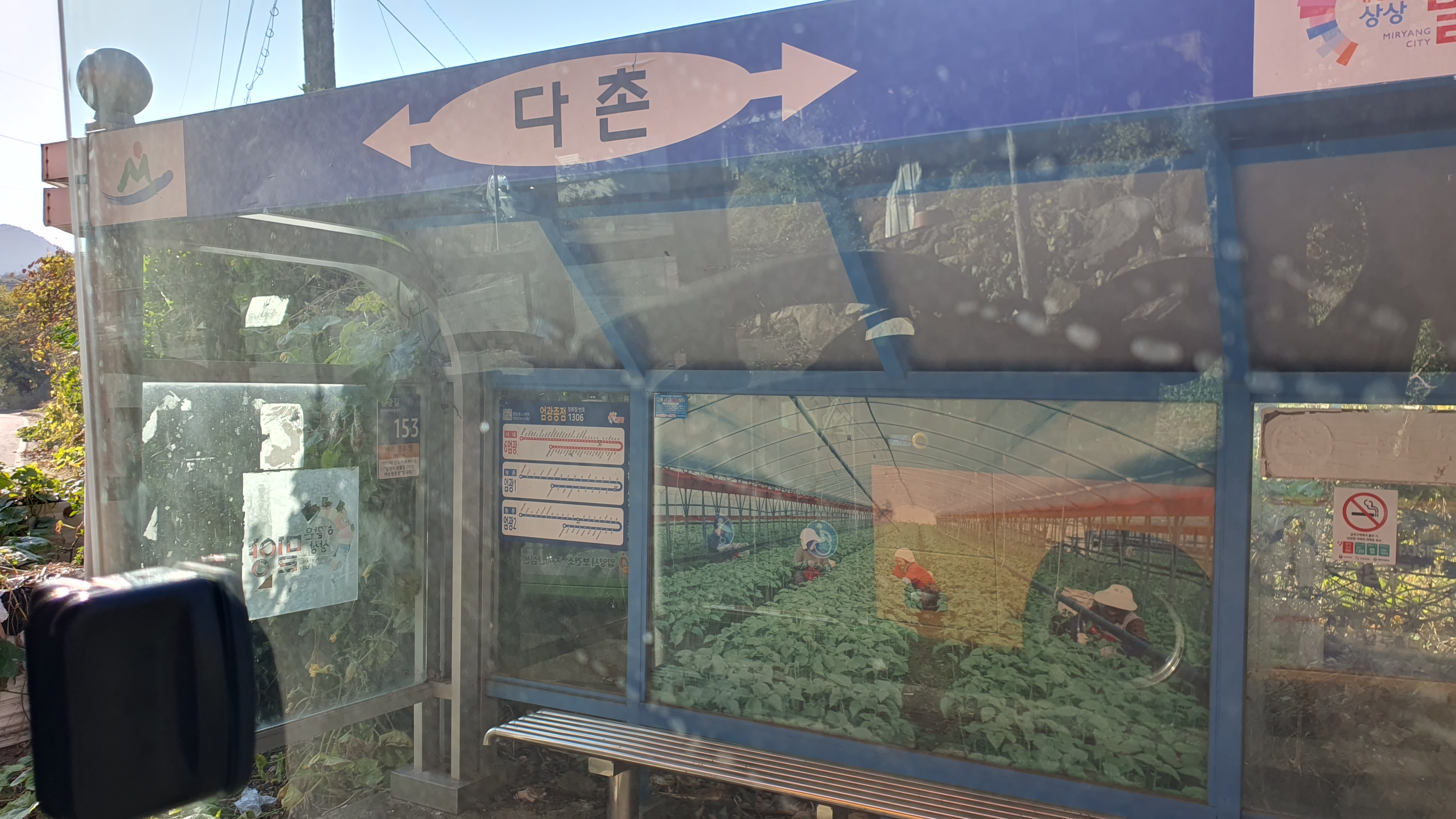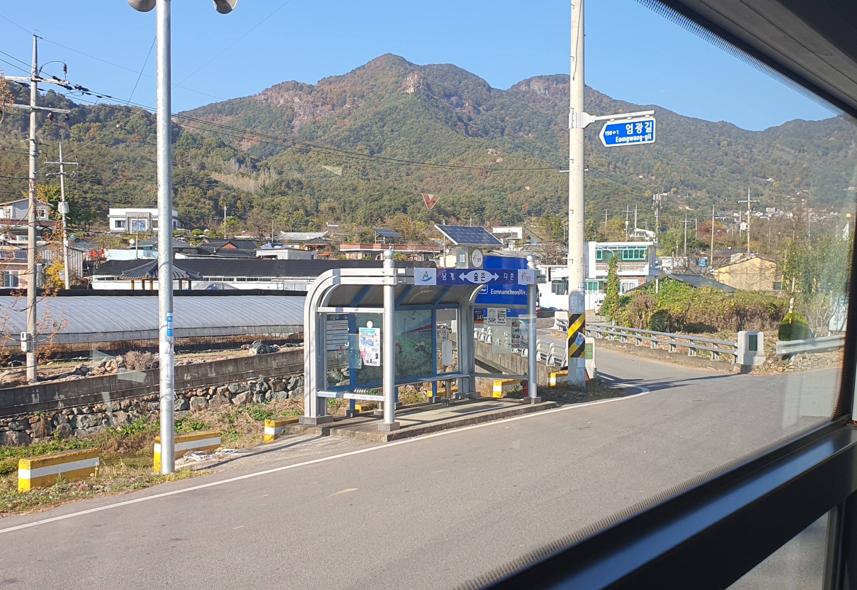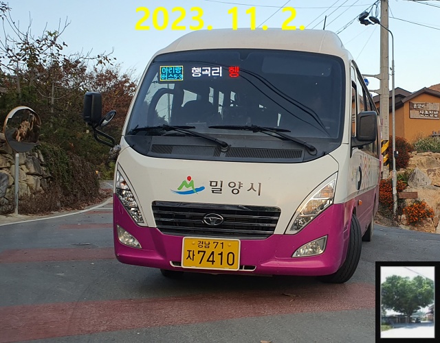 저는 양덕동 마을회관 앞까지 슬슬 걸어갑니다. 버스는 오후 3시는 되어야 올 것이며 양덕동을 경유하는 방향이 틀릴 염려 또한 없으니, 11월 치고는 너무 따가웠던 햇빛을 제외하면 부담이 없었습니다. 사실 밀양은 카카오버스에 뜨는 운행경로만 믿어서는 안 되는데, 미리 밀양시 버스정보시스템을 통해 교차 검증을 해놨던 것이죠.
