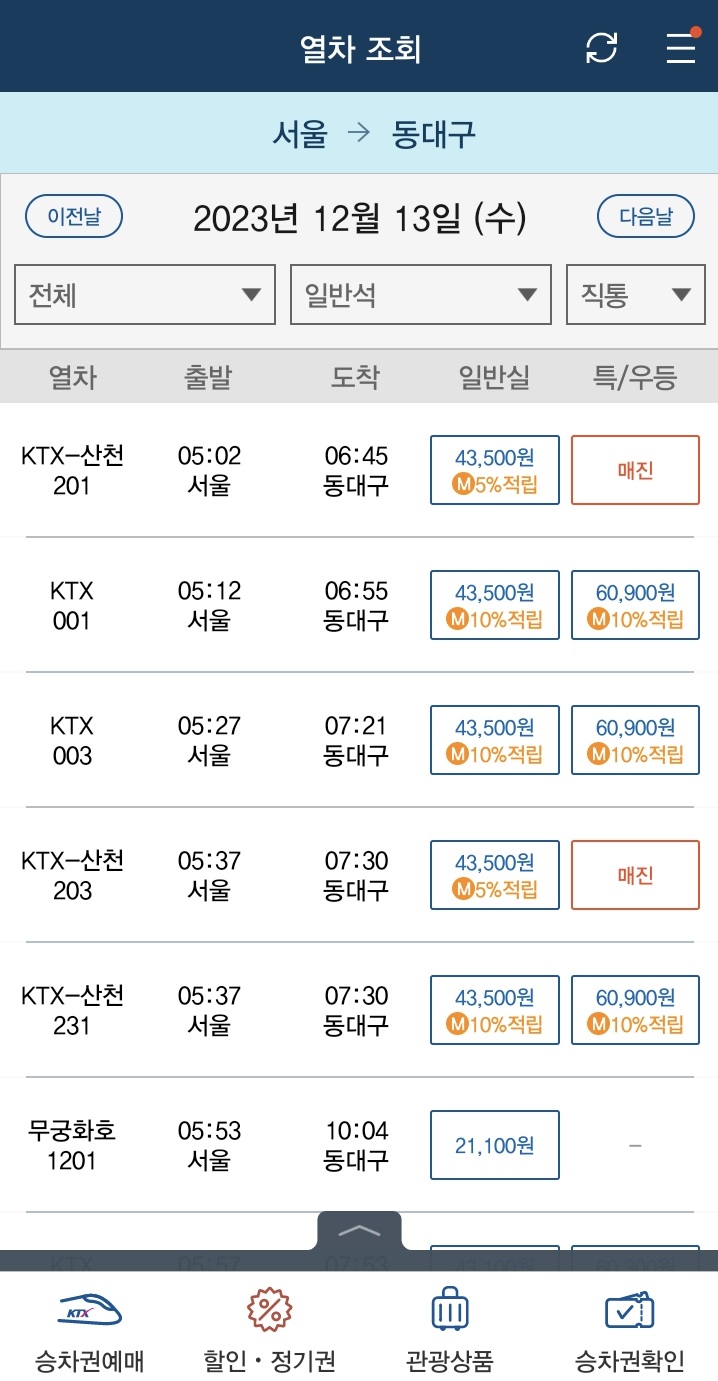 [무궁화호(서울→부산)][3100] ※ 서울역 1303 출발