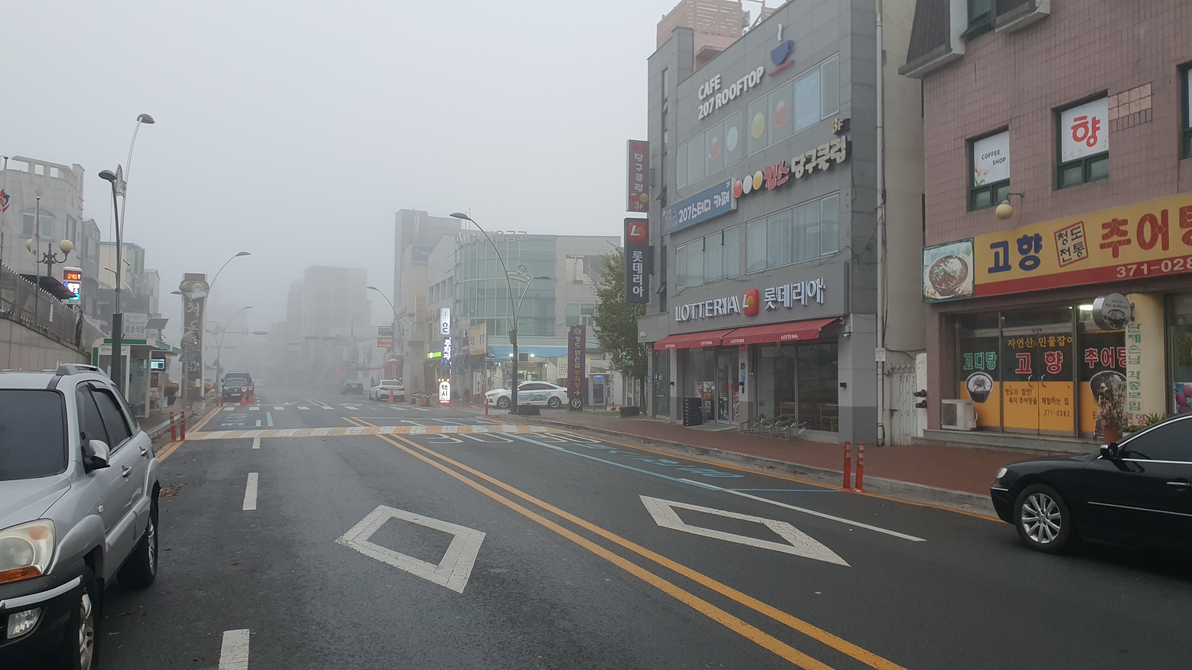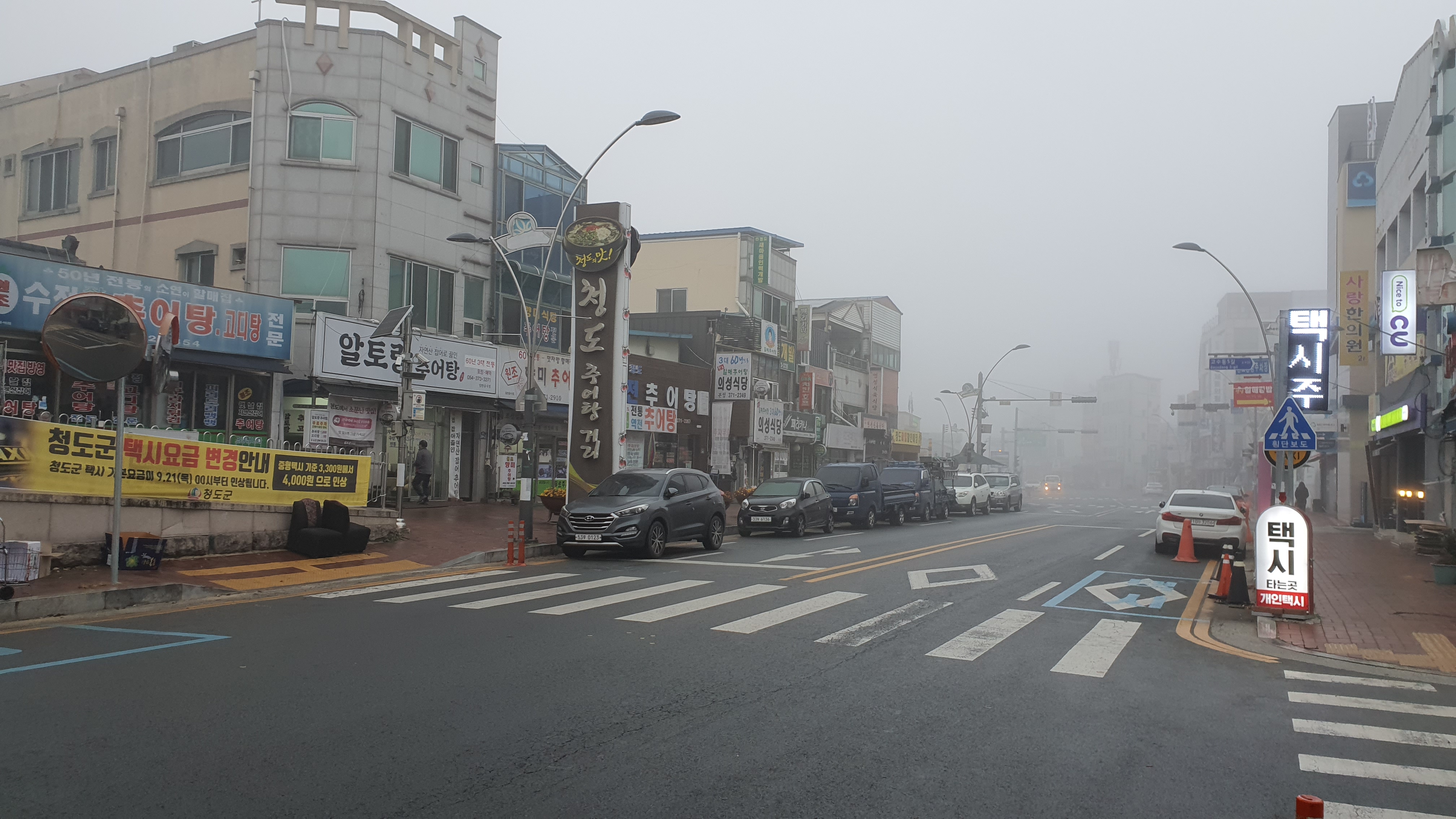 아무래도 아침 일찍인데다 읍내를 나가는 방향이라서 그런지 버스를 타는 사람은 저 혼자뿐이었고, 버스는 안개를 헤치며 읍내를 떠나 동쪽으로 달리기 시작했습니다. 청도군내버스는 의외로 안내방송이 나오는데 원주나 공주, 청주, 제천, 부산 등에서 쓰는 것과 똑같더군요. 다만 이들과 차이점이 하나 있었는데, 이번 정류장만 말해주고 끝이었다는 겁니다. 그래도 나와주는 것만으로도 감사할 지경이니, 그러려니 할 수밖에는 없습니다. -ㅅ- ㅋ