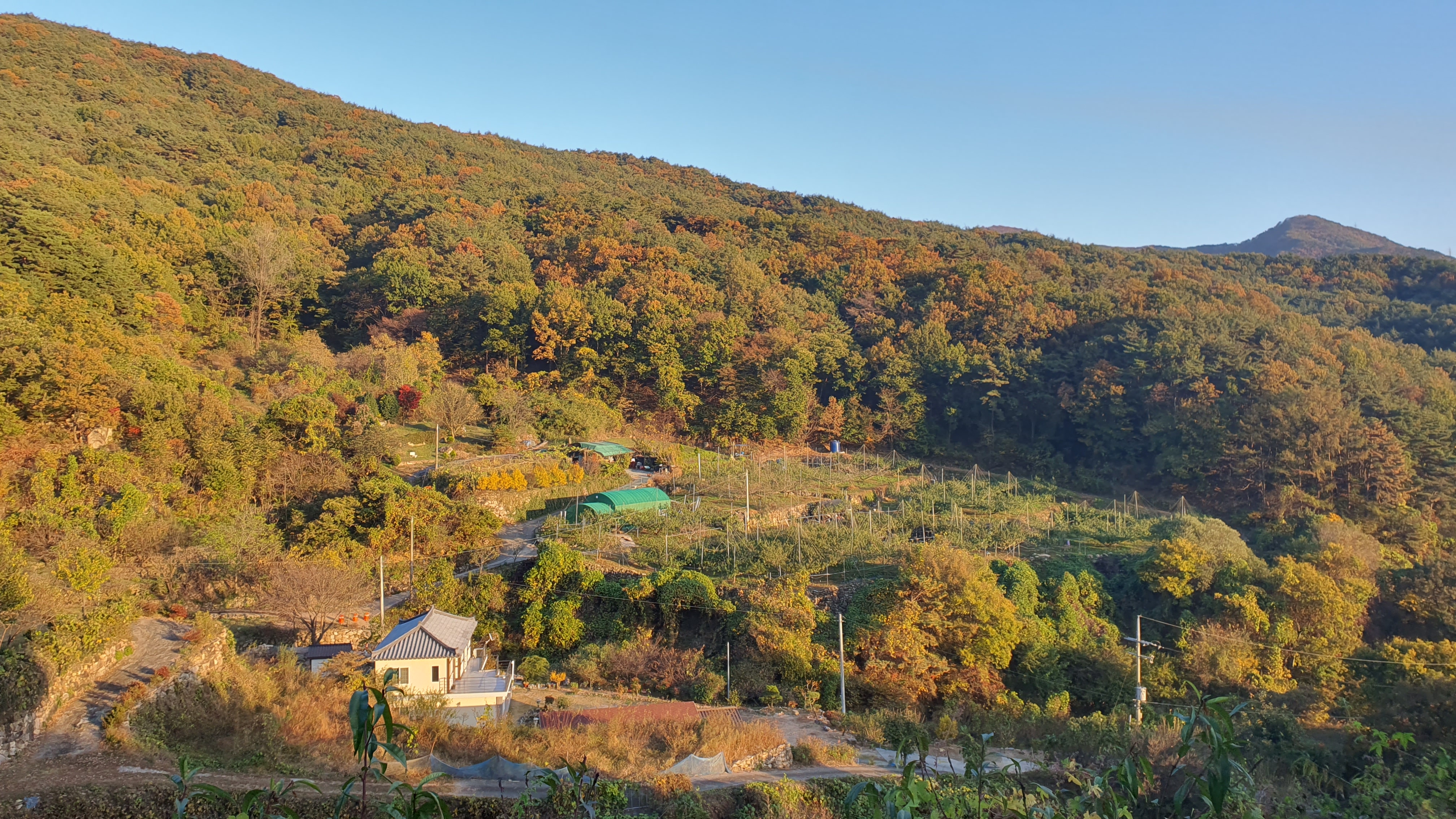 아무튼 길이 지도와 다르게 나 있는 지점을 지나 아래로 계속 내려가니 곧 마을이 나오기 시작하는데, 내려가면서 바라본 아름다운 경치와 험준한 산세에 정말 미쳤다는 말을 얼마나 했는지 모릅니다. 첩첩산중이라는 말은 정말 이럴 때 쓰는 거구나 싶었는데, 그만큼 이곳은 산봉우리 하나하나가 만만치 않았던 겁니다. 사실 높이 1000m짜리 험한 산들이 널려있는 영남알프스의 일부였으니 그럴 만도 하지만 말입니다. -ㅅ-;;;