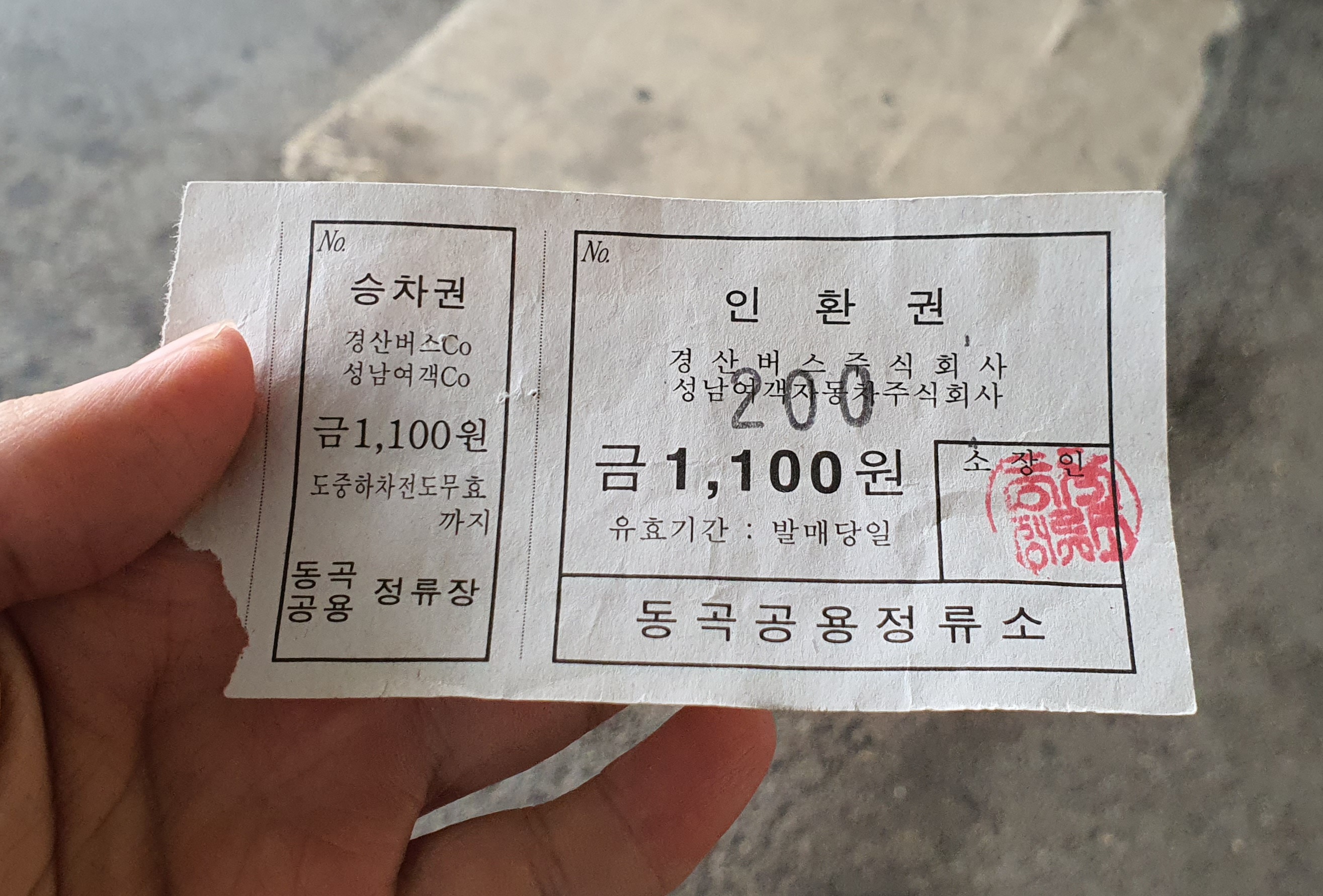 아무튼 석준형에게 줄 것까지 2장의 표를 끊고 승차장으로 나와보니 카운티 말고는 버스가 없었습니다. 여기서 상동역 가는 노선은 그린시티가 다니는 것 같은데;;; 하지만 척 하면 척인 것도 있었고, 승차장에 있던 카운티에 걸린 행선판에도 유천이 적혀 있어 이 차를 타면 되겠다는 생각이 듭니다. 버스 안에는 이미 5명의 손님들이 타고 있었는데(물론 다 어르신입니다), 유천 가냐고 물어보니 예상했던 대로 간다는 대답이 돌아옵니다.