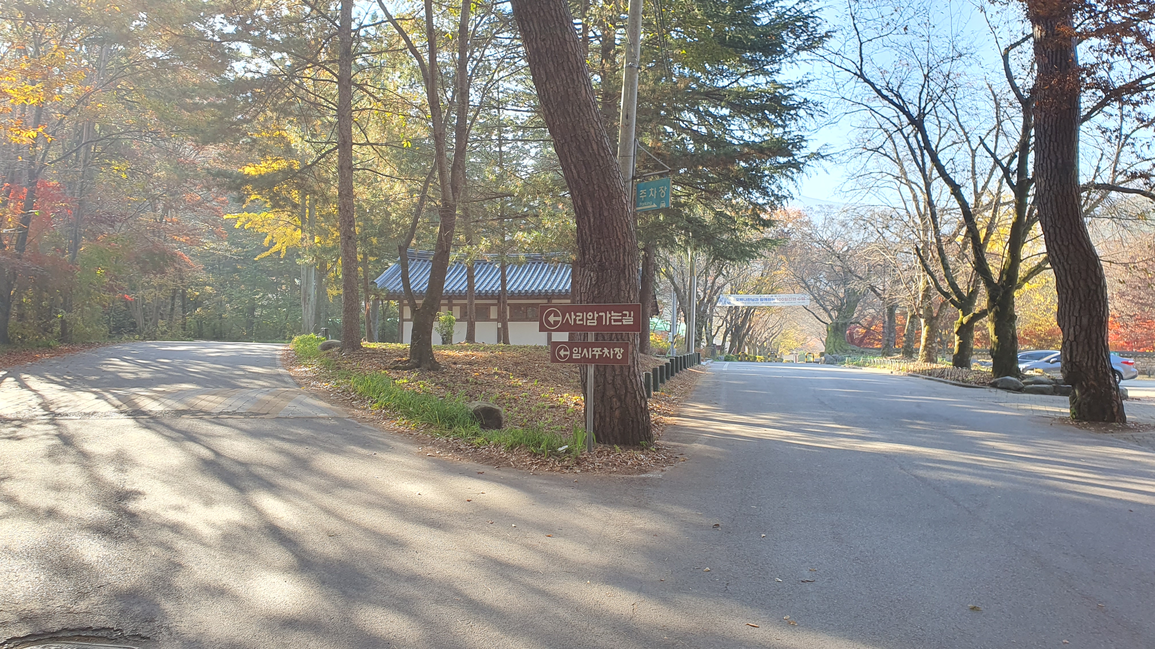 주위의 단풍을 구경하며 앞으로 나아가니 드디어 운문사가 오른편에 보입니다. 왼쪽 길로 가면 사리암으로 가는데, 그곳은 여기에서도 3km를 더 가야 해서 오늘의 일정 상 어쩔 수 없이 포기해야 했습니다.