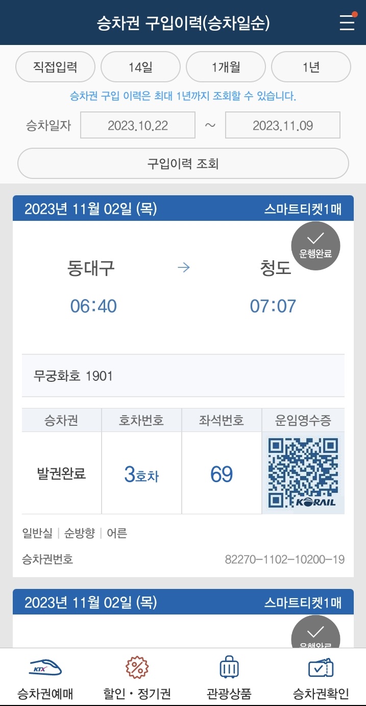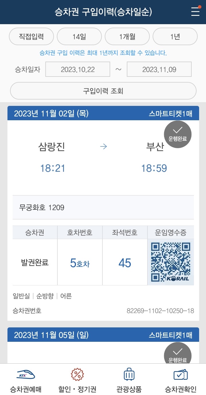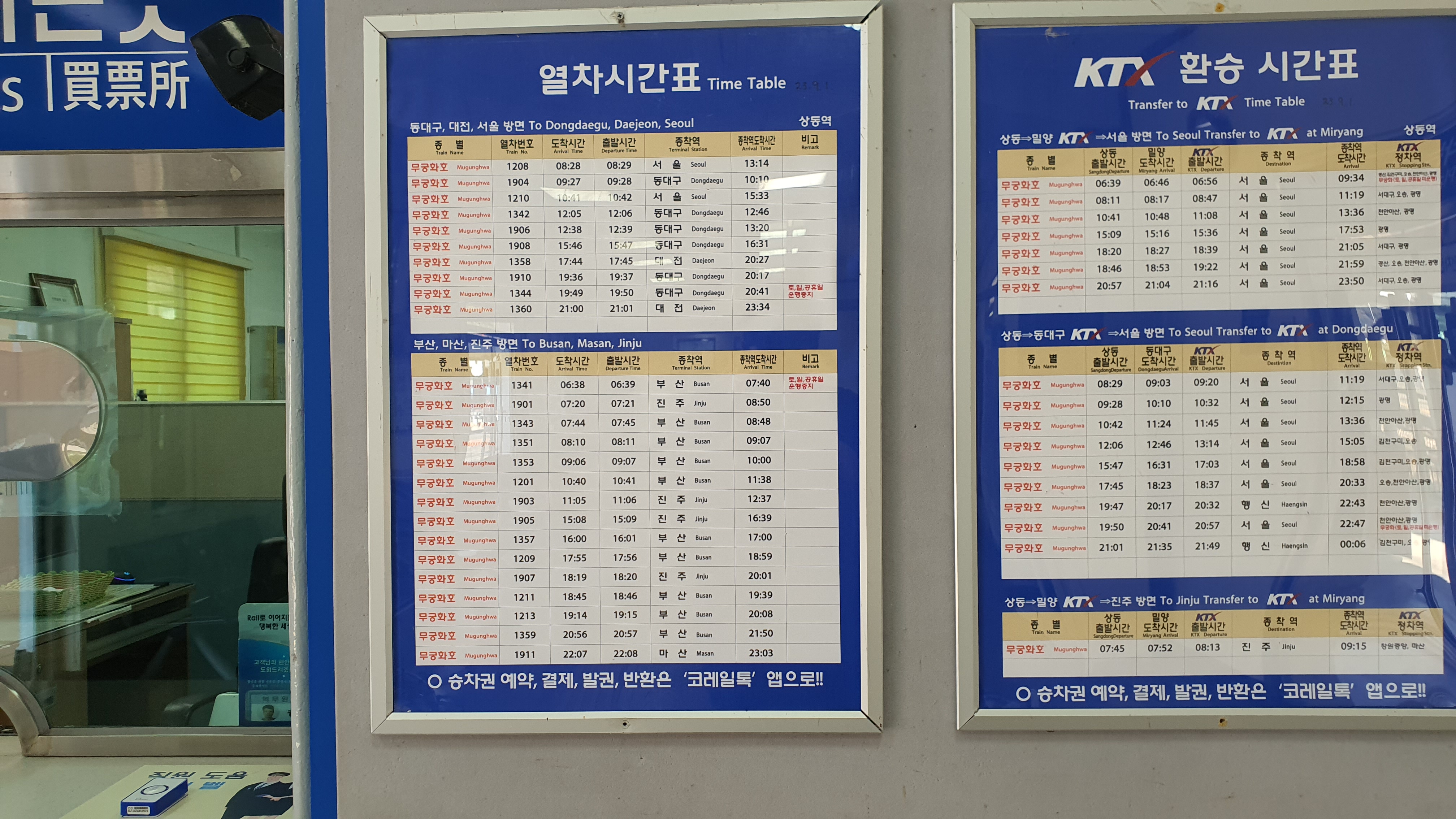 시간표를 보니 무려 서울역에서 오후 1시 3분에 출발했던 열차입니다. 무궁화호가 한국에서 2번째로 높은 등급이자 우등열차였던 시절은 역사가 되었지만, 그래도 대한민국 철도에서 상징과도 같은 이 서울~부산 운행계통은 40여년이 지난 지금까지도 살아 있었습니다.