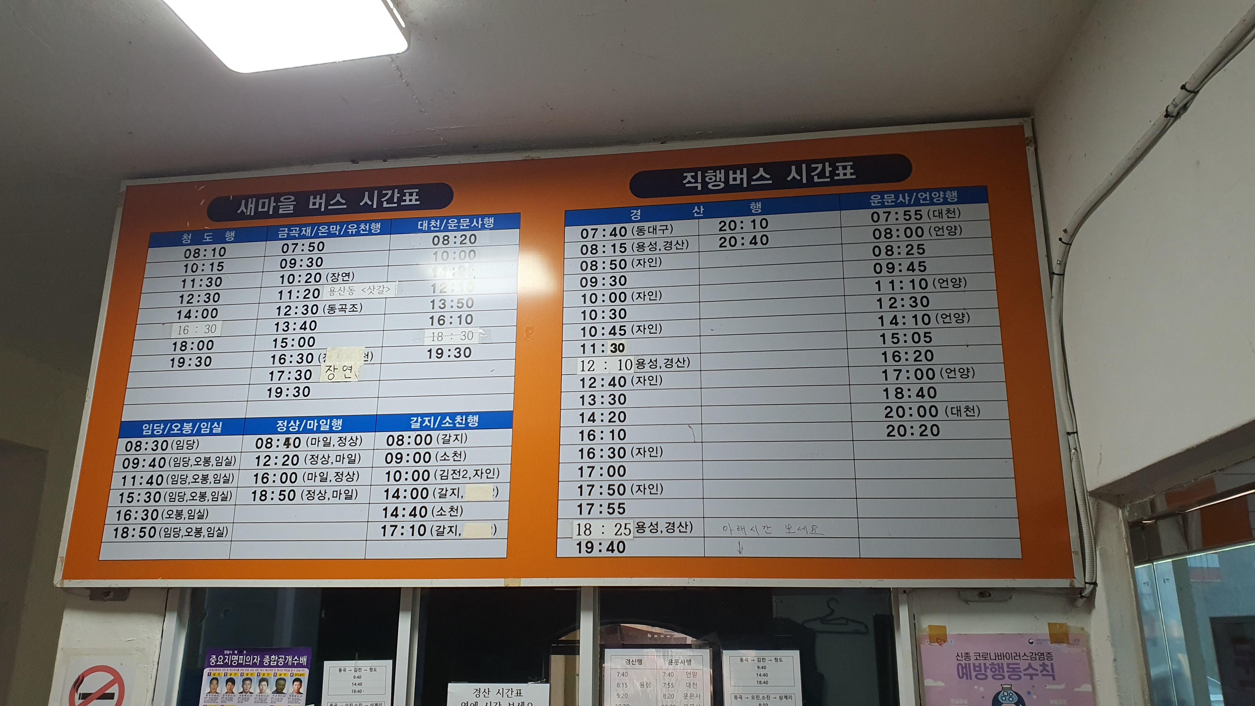동곡터미널에 도착하니 오전 8시가 채 못된 시간이었는데, 그럼에도 불구하고 주변에 사람이 아무도 보이질 않았습니다. 청도로 가는 노선 외에도 밀양 상동역으로 가는 노선도 있는데다, 경산이나 운문사 가는 노선버스들이 무조건 들르는 장소인데도 이 모양이니 정말 인구 감소가 와닿을 지경입니다.