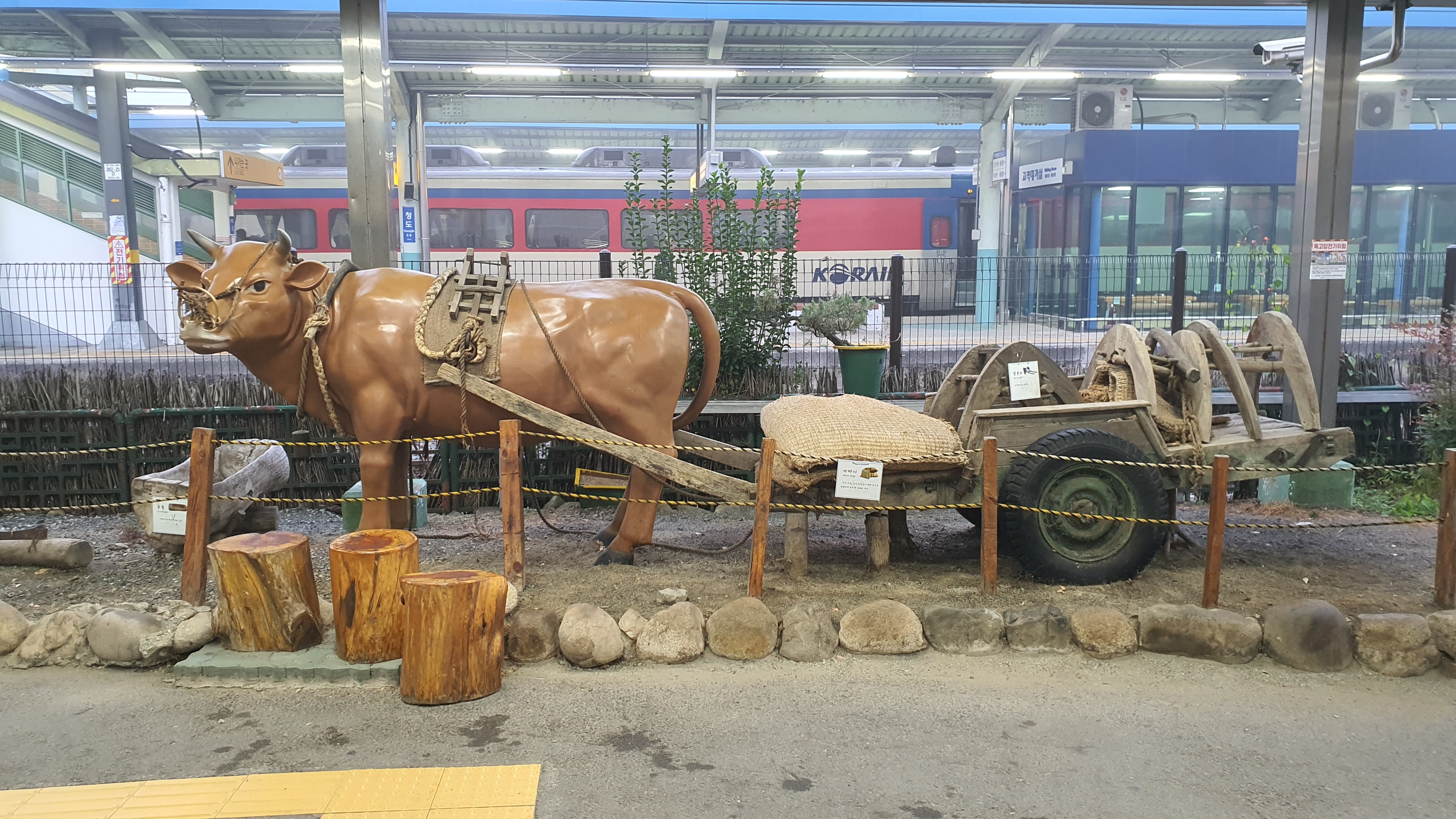 청도역에 내려 승강장 바깥으로 나와보니 황소 모형이 저를 반겨줍니다. 그러고보니 청도는 소싸움으로도 유명한 동네라는 사실을 다시 한 번 상기하게 됩니다. ㅋㅋ