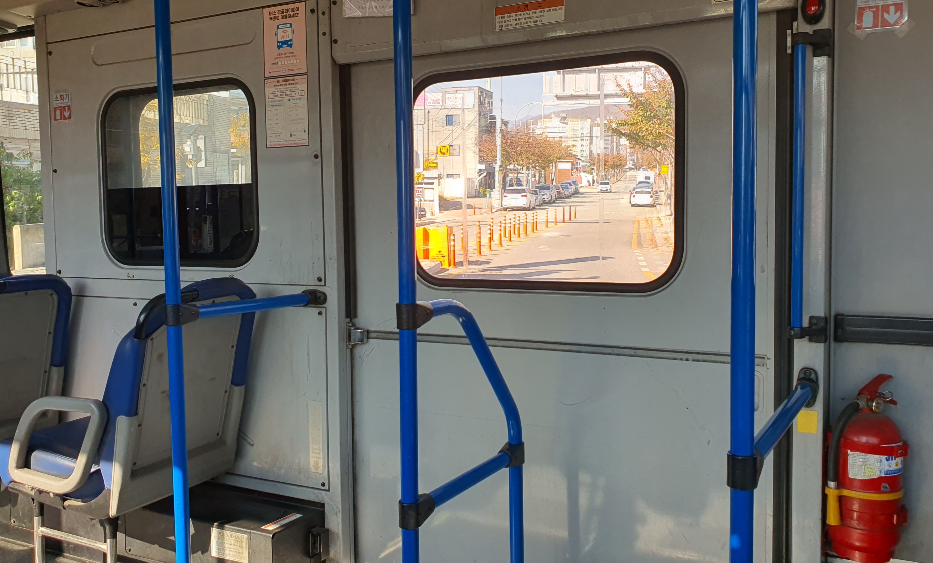 카드를 대니 1450원인데, 밀양시내버스에는 환승할인 개념이 없다고 하더니만 정말 앞문 쪽에만 카드 단말기가 설치된 것을 볼 수 있었습니다. 환승할인 없는 경기도 시내버스 꼭 진천이나 음성, 태안군내버스를 타는 느낌이지만, 그래도 여기는 안내방송이 이번 정류장과 다음 정류장 모두 잘 나와주기는 하더군요.
