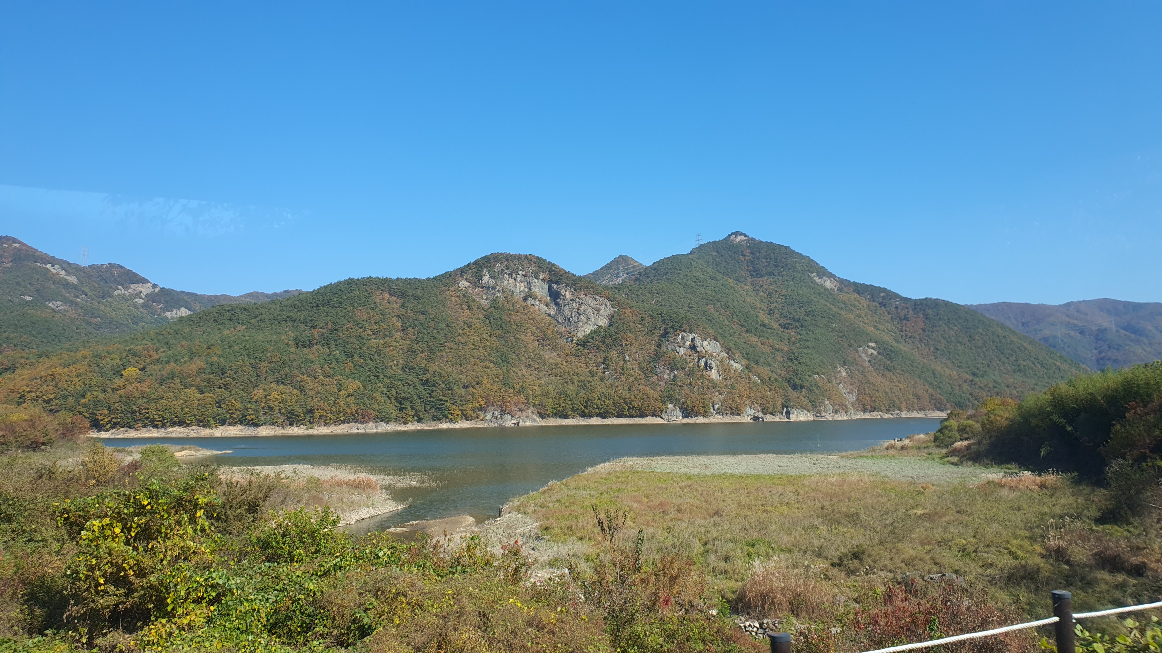 정류장 건물 바로 앞 공터까지 들어간 버스는 손님 한 명을 태우고 본격적으로 운문사를 향해 출발합니다. 대천터미널을 벗어나니 금방 운문호가 보이기 시작하는데, 진짜 장난아니게 멋집니다. 여기 정말 오길 잘했다, 경치 진짜 작살난다는 생각도 들었죠.