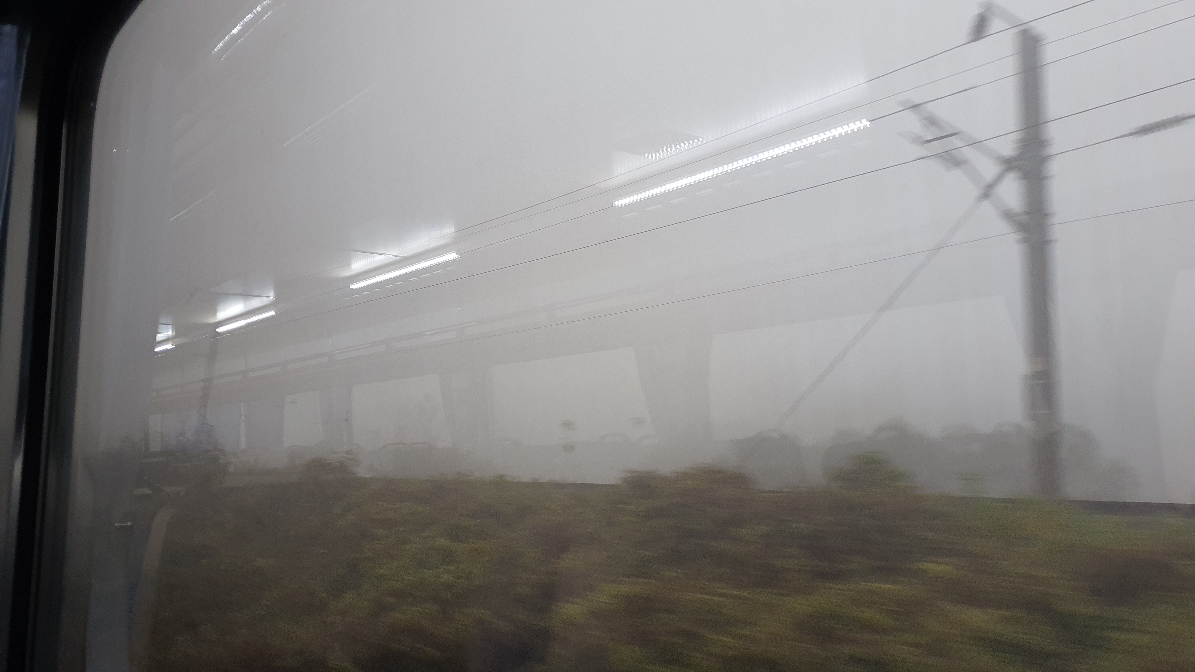 오전 6시 40분이 되자 문이 닫히는 소리가 들리고, 곧 열차가 움직이기 시작합니다. 3칸짜리 열차다보니 전철을 탄 것마냥 금방 속도가 붙는데, 꼭 중앙선 또는 충북선 무궁화호를 다시 타는 것 같더군요. 경산역을 지난 후로는 산밖에 보이지 않는데, 안개가 짙게 끼어 있어 꽤 몽환적인 분위기가 나옵니다.
