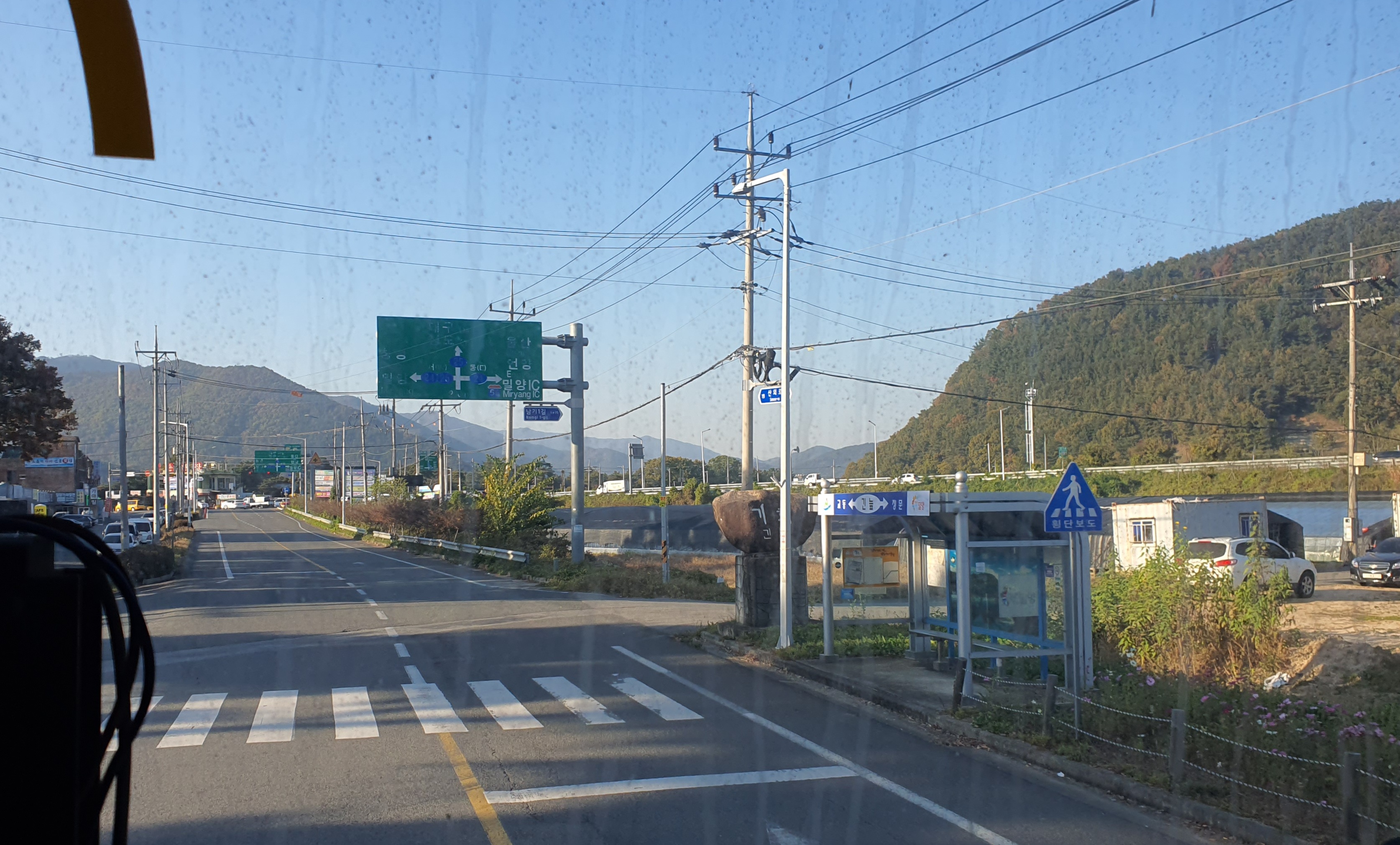 고개를 넘으니 강을 따라가는 도로가 나왔고, 매전면사무소 소재지 어귀에서 밀양 쪽으로 좌회전한 것을 제외하면 버스는 시종일관 직진만을 하고 있었습니다.