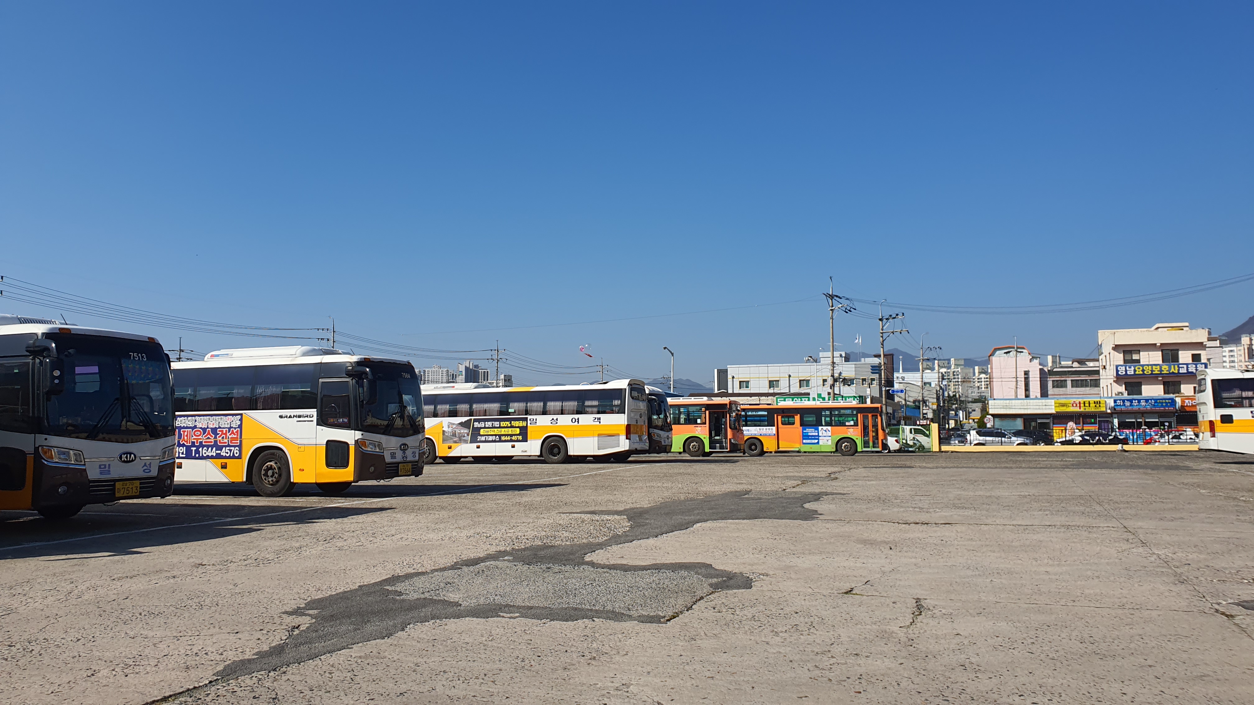 터미널에 내리니 사진으로만 보던 밀성여객 시외버스들을 두 눈으로 직접 보게 되었습니다. 비록 시외버스이긴 하지만 밀양 버스들을 타보려면 활용해야 할 일이 생길 것이기에, 주차중이던 그 밀성여객 차들이 예사롭게 보이지 않더군요. -ㅅ-;;;