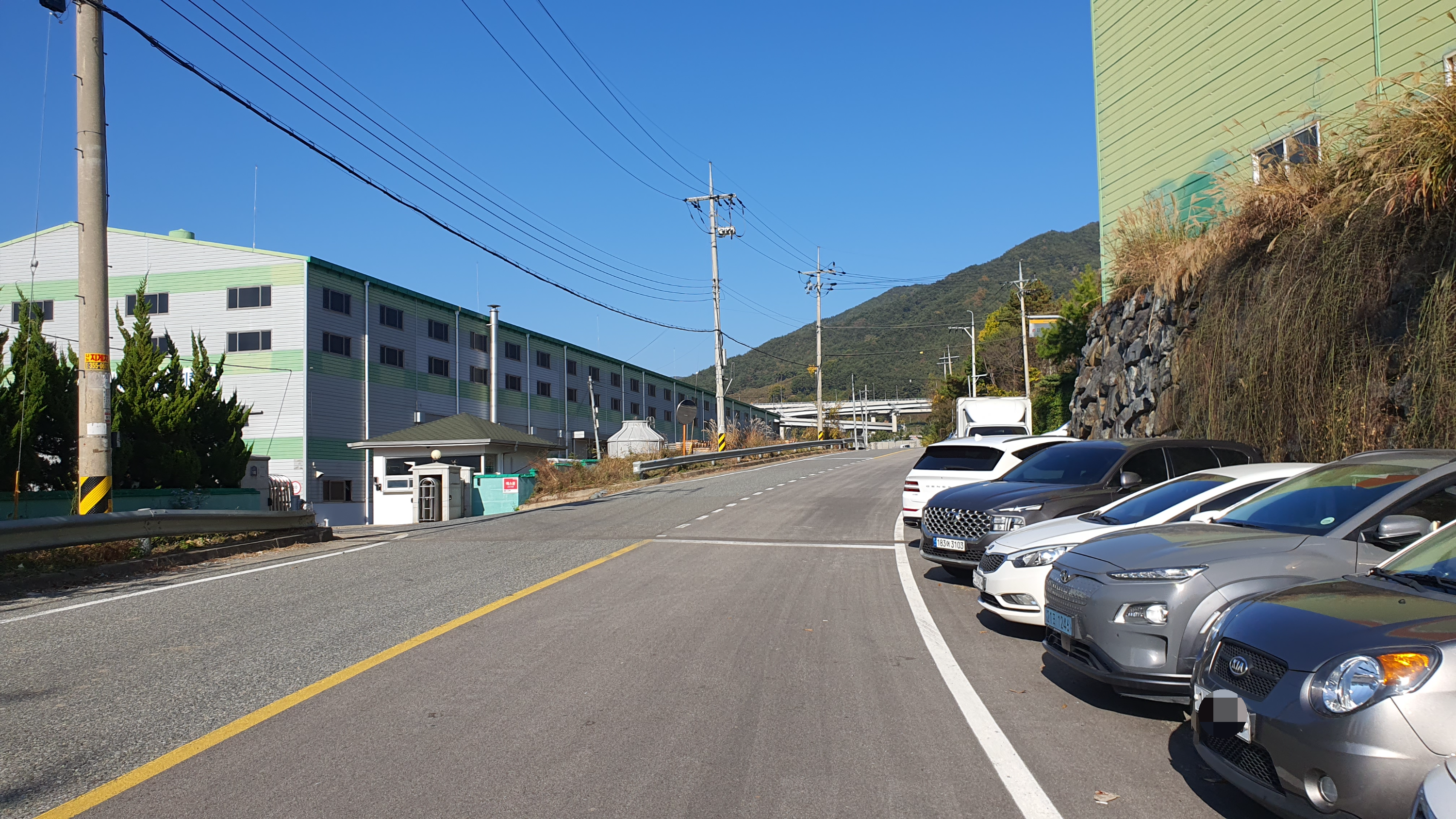 양덕동 마을회관 앞까지 올라가는 길은 살짝 오르막이었고 왕복2차로 도로 주변으로 공장들이 보였습니다. 공장들은 활발히 가동 중이었고 건물 앞에 자동차들이 주차되어 있는 것이 보이는데, 그러고보니 오늘이 평일이라는 걸 실감하게 됩니다. -ㅅ- ㅋ