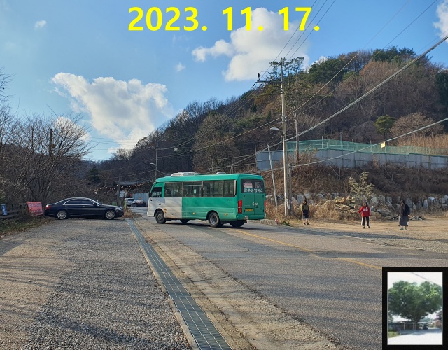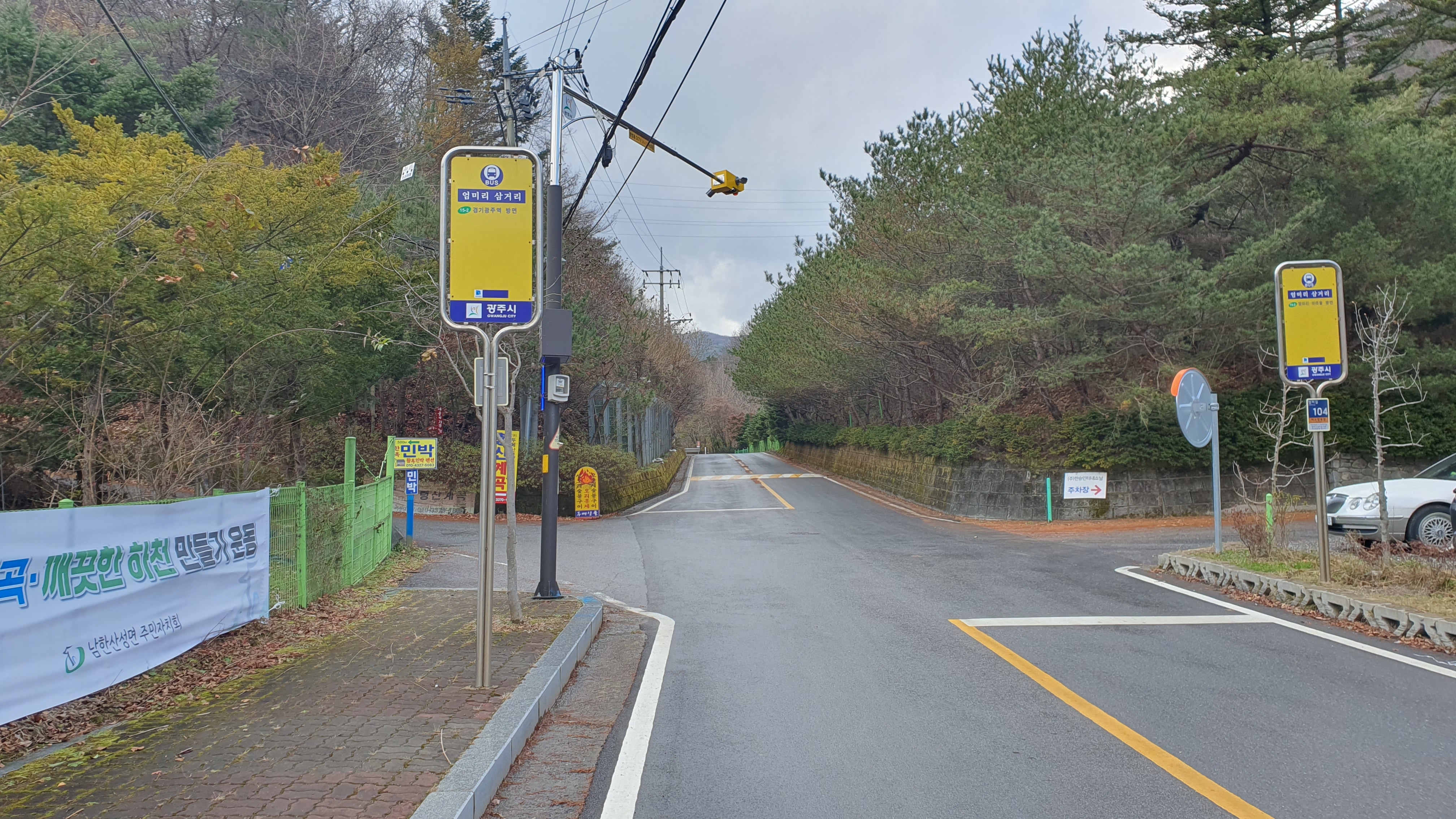 오후 5시에 출발한 버스는 광주 쪽으로 올라가다가 수광2리 나뭇가지마을 정류장 바로 앞 삼거리에서 좌회전을 하여 인후1리로 들어갑니다.