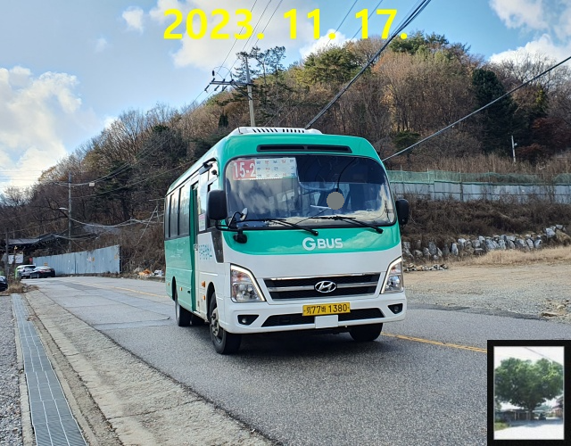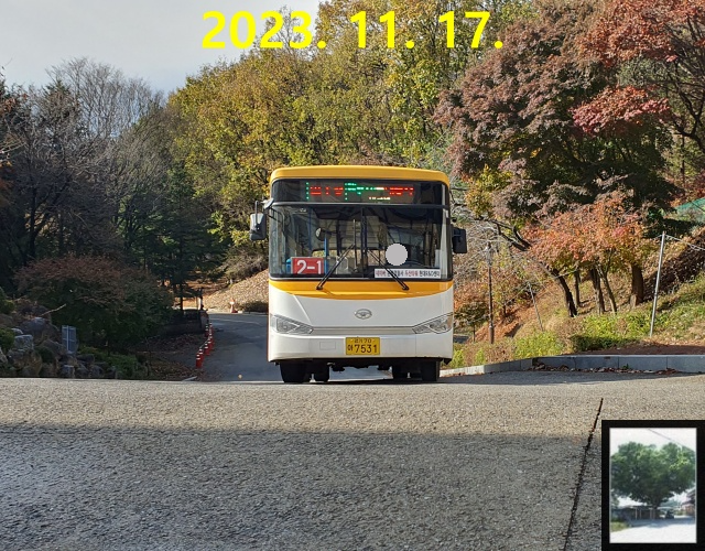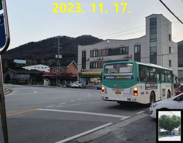 편의점에서 식사를 하며 버스 위치를 확인하니 이번에도 과거 기록과 비슷하게 출발할 각이더군요. 식사를 마치고 정류장으로 나와보니 버스가 종점으로 올라가는 것이 보입니다.