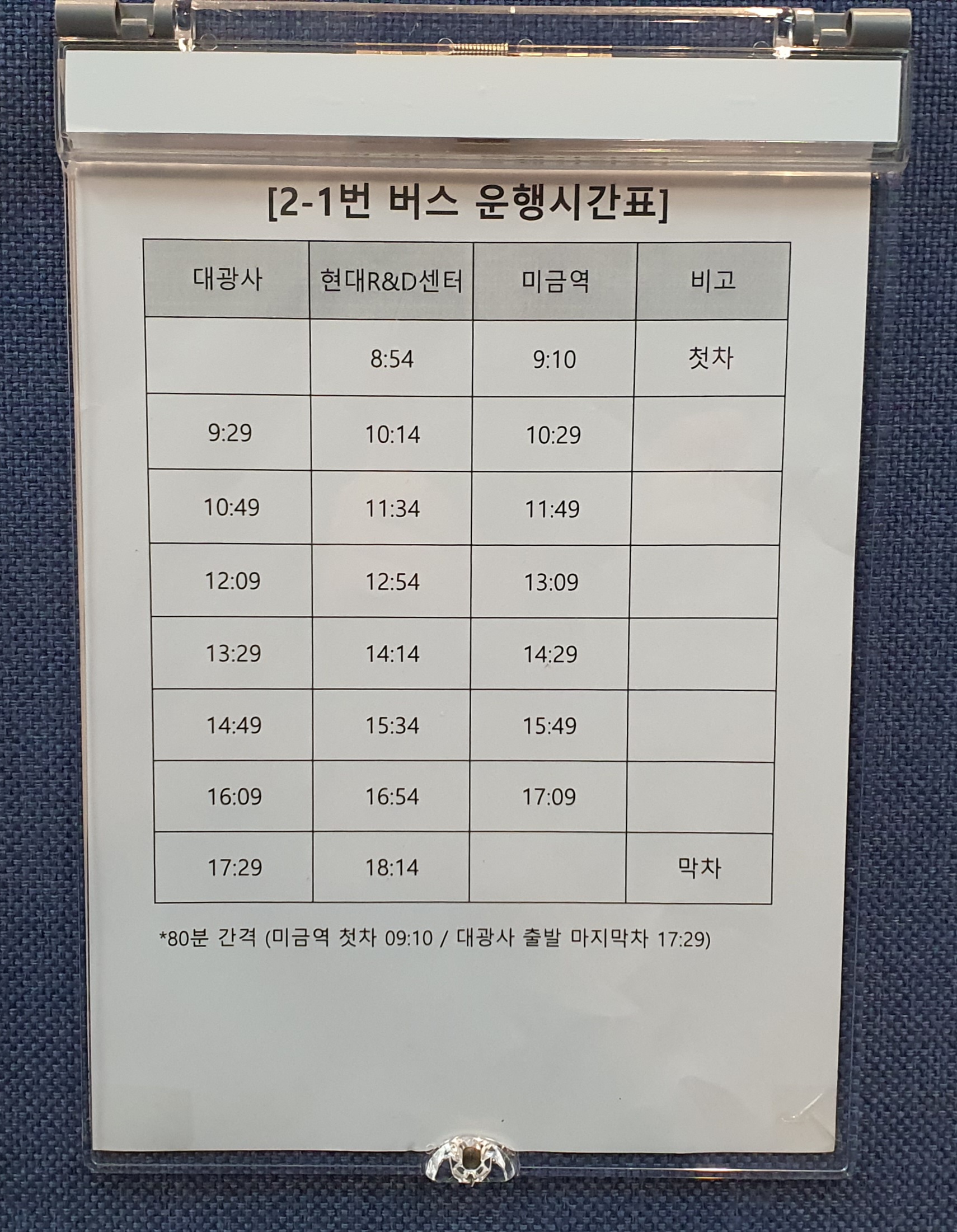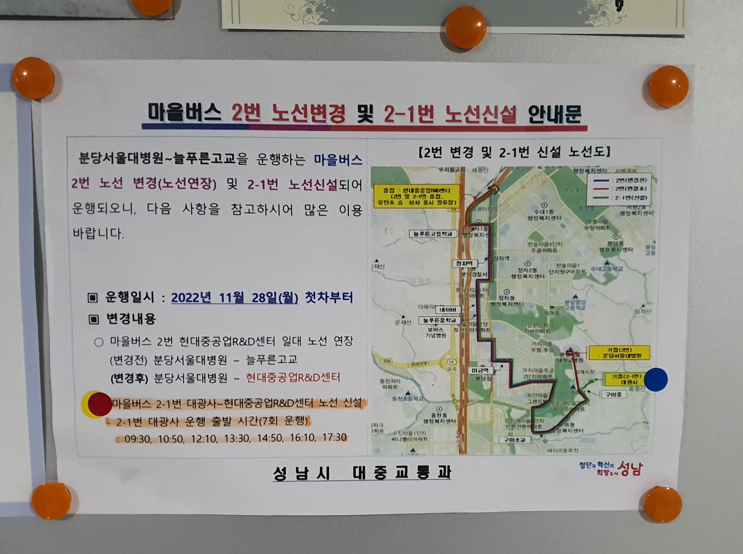 [미금마을버스 2-1번(대광사~구미동주민센터,구미초교,그랜드빌,불곡중고교,꿈터유치원,미금역,청솔마을,네이버,분당경찰서,정자역,청소년수련관~현대R&D센터)][1350] ※ 평일에만 운행