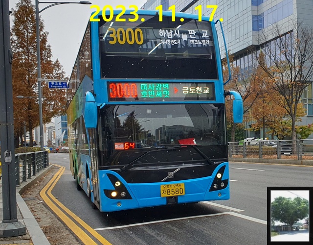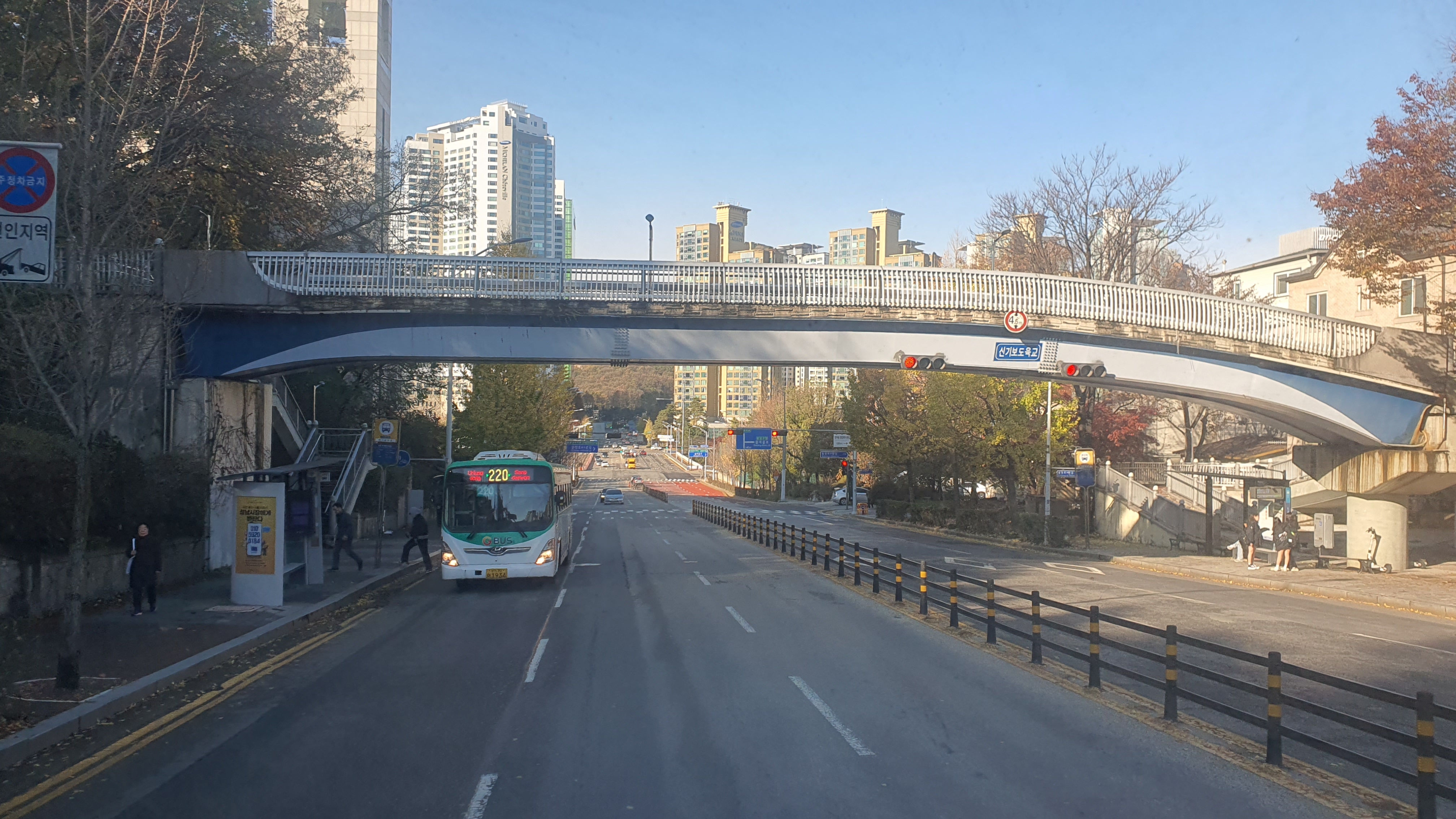 성공적으로 단독구간을 해결한 저는 후련함을 느끼며 서둘러 봇들육교에서 하차합니다. 아까 넥슨에서 3분 정차한 것 때문에 이번 3000번을 타지 못할까 걱정은 됐지만, 천만 다행히도 제가 버스보다 먼저 정류장에 도착하여 무사히 버스를 탈 수 있었습니다. 2층버스가 걸리더군요. ㅋㅋ