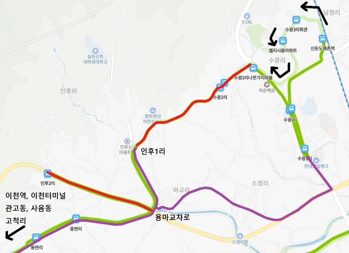 이렇게 용면리 노선도 해결이 되는구나 싶었습니다.