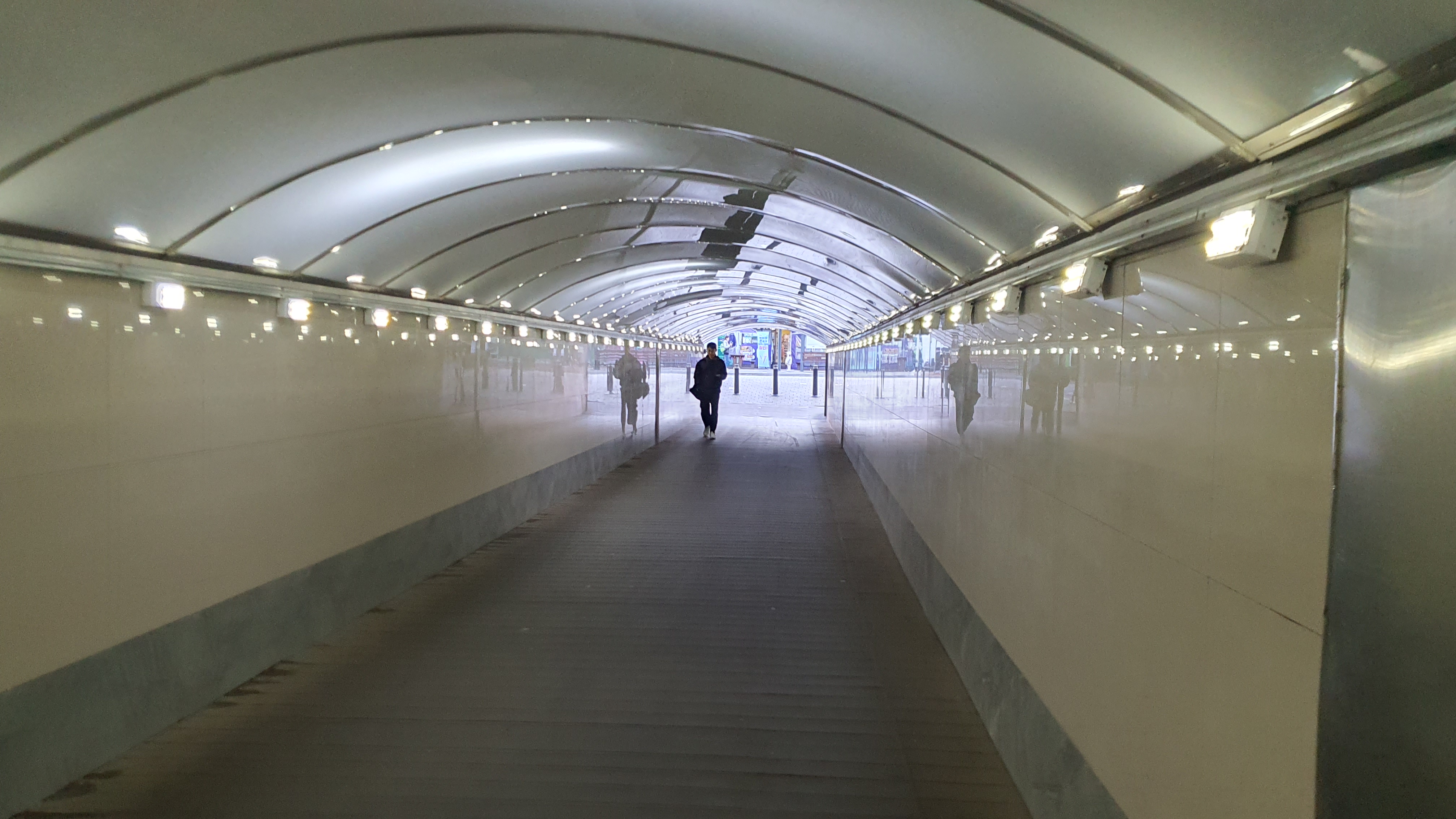 계단을 내려가면서 천장에 머리를 박는 바람에 아픔이 좀 밀려오지만, 중앙차로 정류장으로 건너간 다음 때마침 도착하던 13-2번에 승차합니다.
