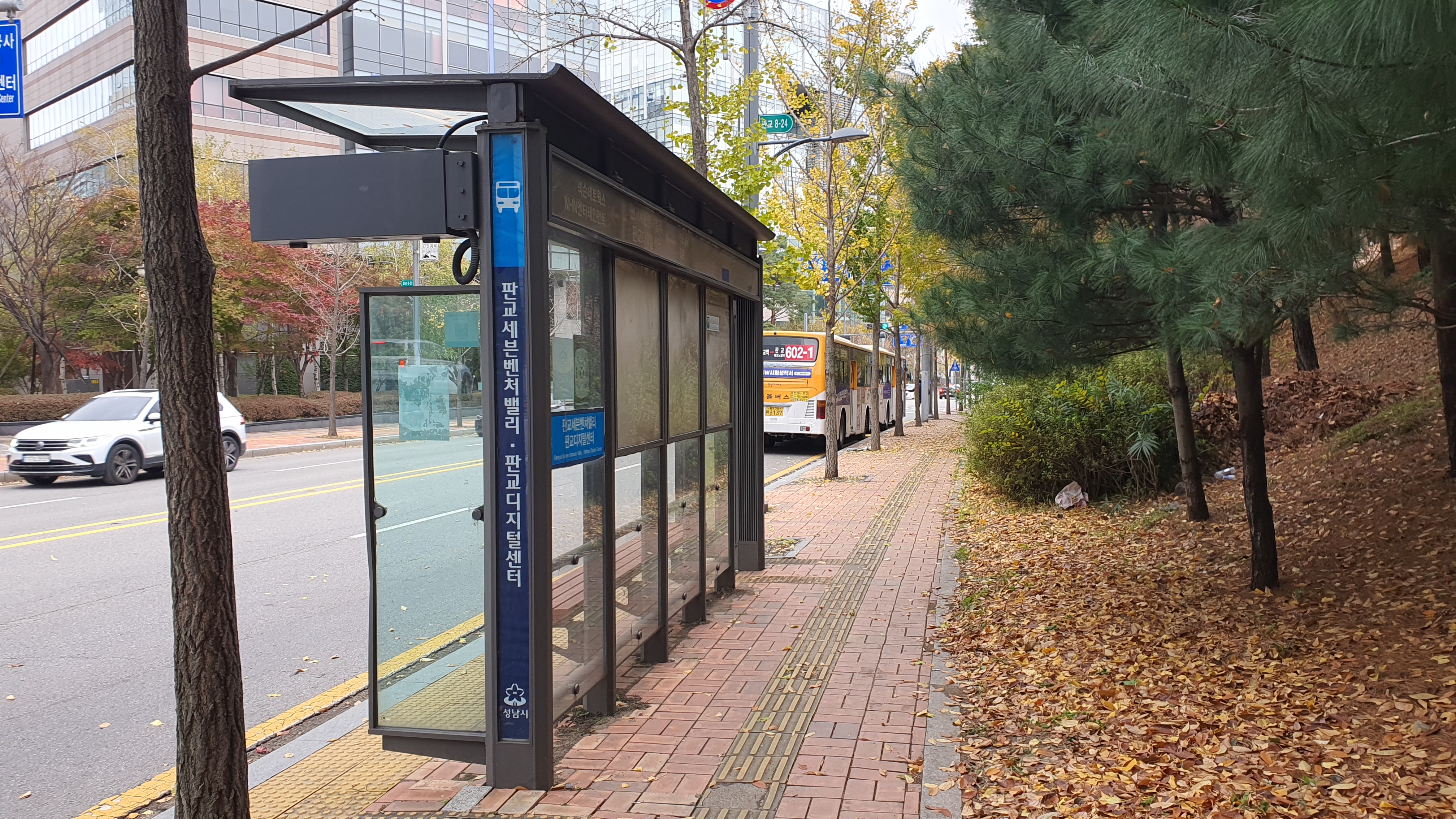 이제는 판교세븐벤처밸리를 향해 살짝 걸어가면 되었는데, 히든 챔피언 중 하나인 마이다스아이티도 이 곳에 있었다는 것도 알아가게 되었죠. 마이다스아이티 사옥을 지나 오른쪽으로 가니 드디어 판교세븐벤처밸리 정류장이 등장합니다.