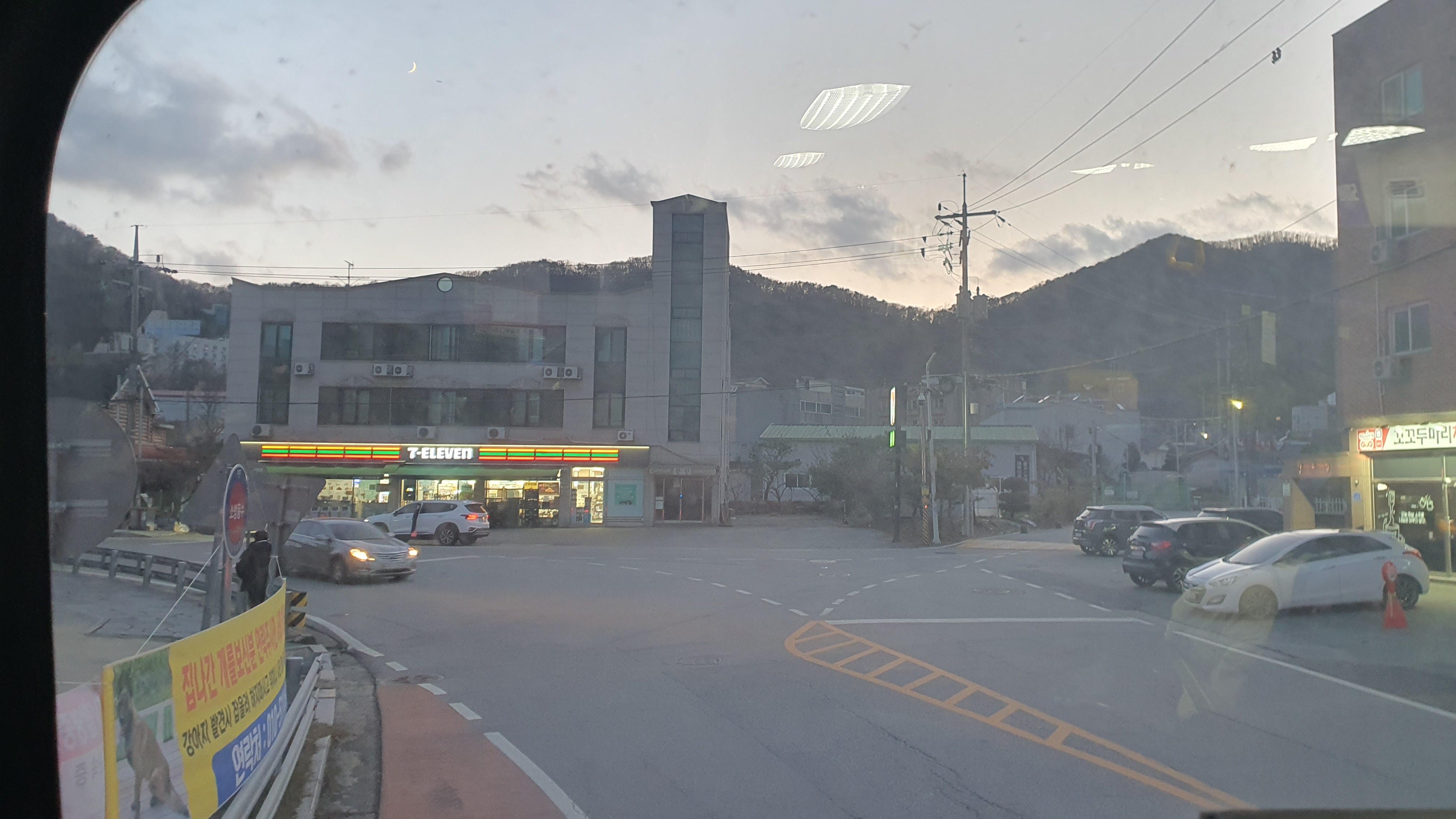 보정역에 내리니 오전 7시 41분이었고, 보정고등학교 정류장으로 가보니 버스가 출발 대기중이었습니다. 날씨가 추운데 20분 가량 시간이 남다보니 저는 구석의 의자에서 시간을 보내다 버스에 승차하였습니다.