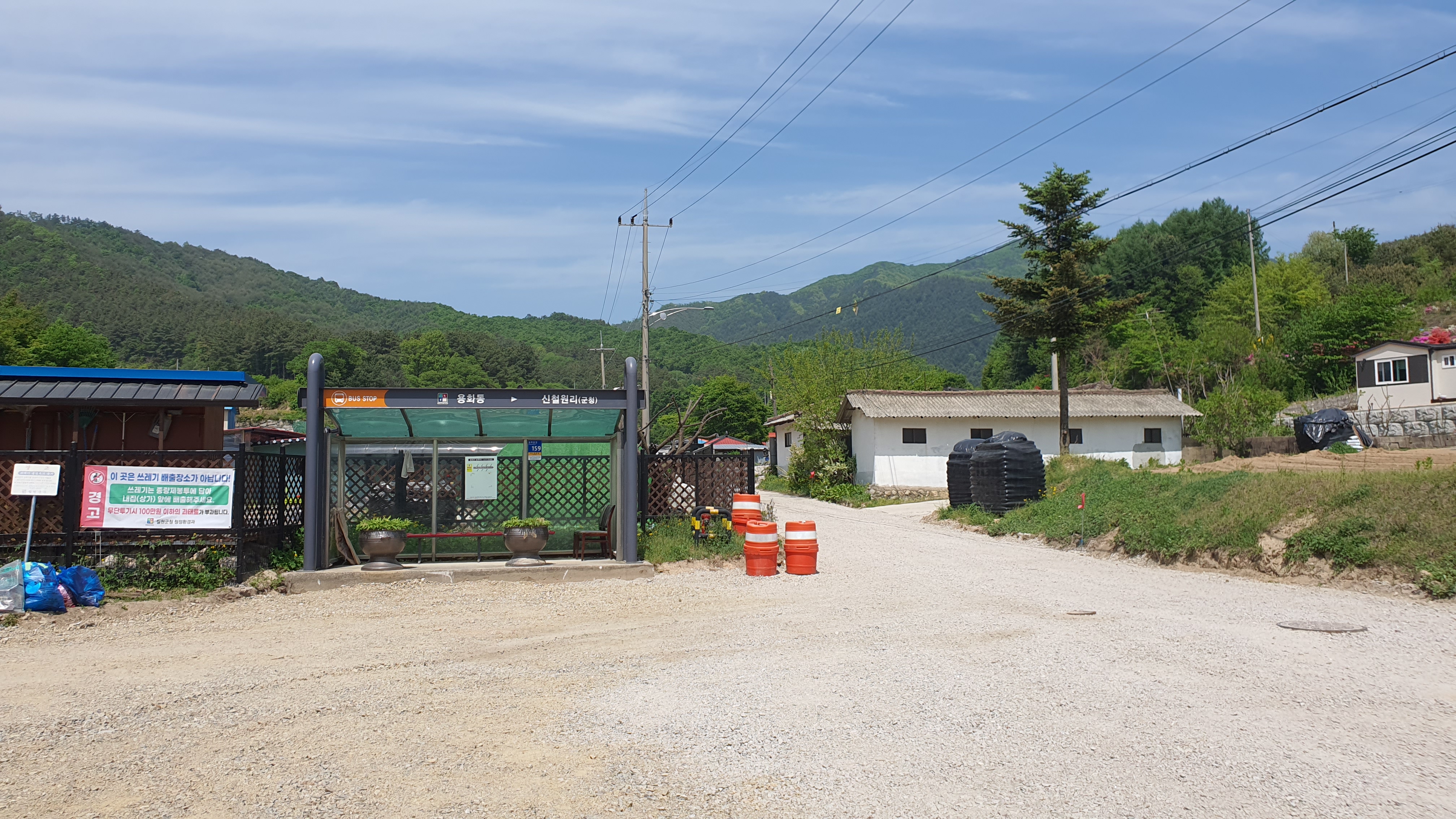 오후 2시 5분이 넘어가자 저는 얼른 채비를 마치고 공터로 나와 버스를 기다려 봅니다. 철원군내버스는 종점에 도착하면 바로 회차하는 경향이 있으며, 용화동 버스종점은 신철원에서 10분이면 도달할 수 있어서입니다. 또한 이미 예상했던 대로 용화동 노선은 실시간 버스위치가 나오지 않았지만, 어차피 시골에서 믿을 것은 버스 시간표와 소요시간 감각밖에 없으므로 제게 아무런 장애물이 될 수가 없었습니다. 시골에서도 도시마냥 실시간 버스위치가 나와준다든가 노선번호가 무조건 있을 거라고 생각하는 것 자체가 잘못된 생각이죠.