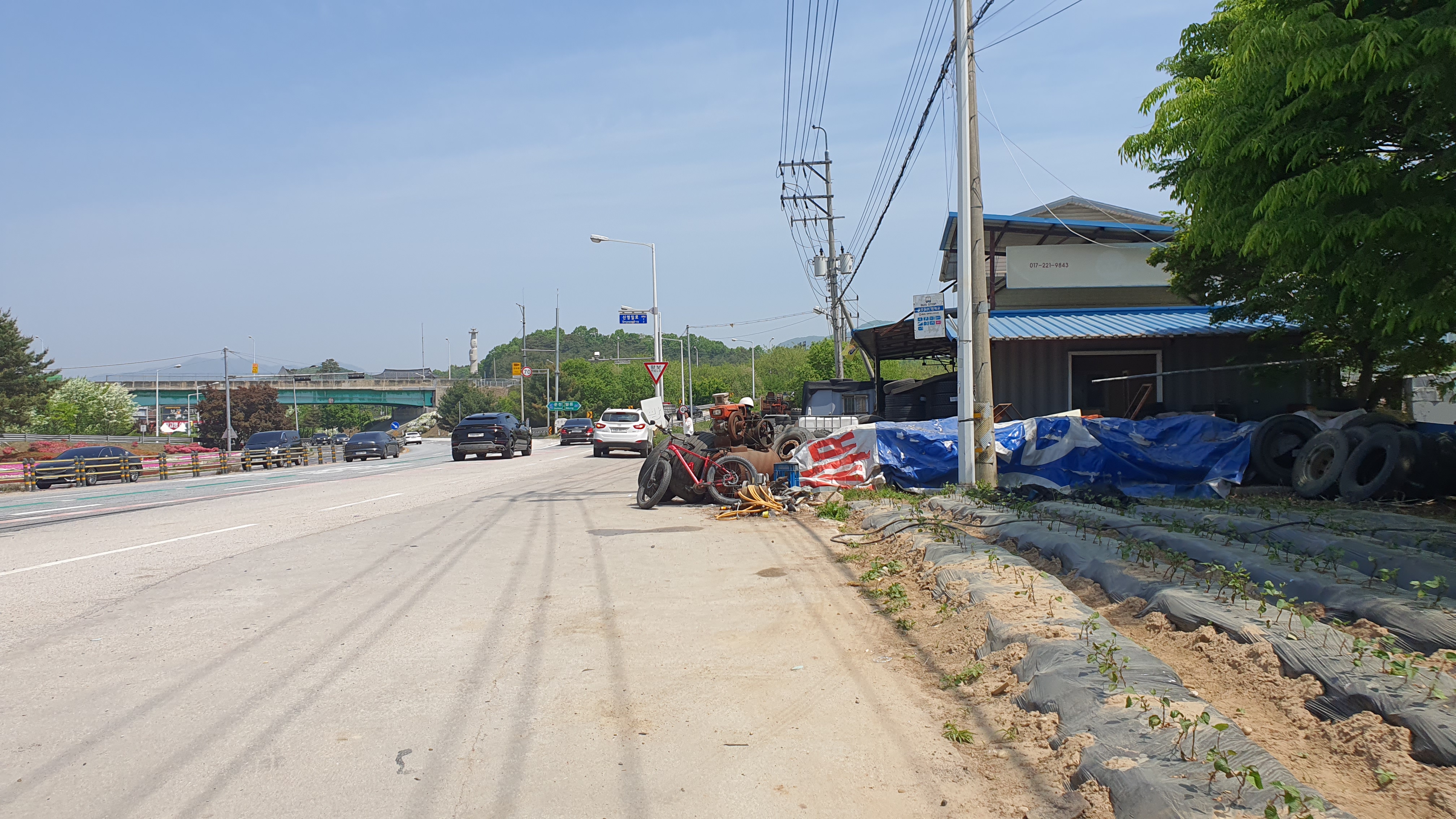정말 천천히 걸어서 만세교삼거리에 도착했지만 오늘따라 1386번도 못 오고 있다보니 아직도 30분 가까이 기다려야 하는 상황. 설상가상으로 여기서 운천 방향으로 버스를 타자니 의외로 정류장 표지판 찾기가 어려워서 약간 애를 먹어야 했지만, 버스가 설만한 장소, 그리고 그늘을 찾아 어찌어찌 시간을 보냅니다.