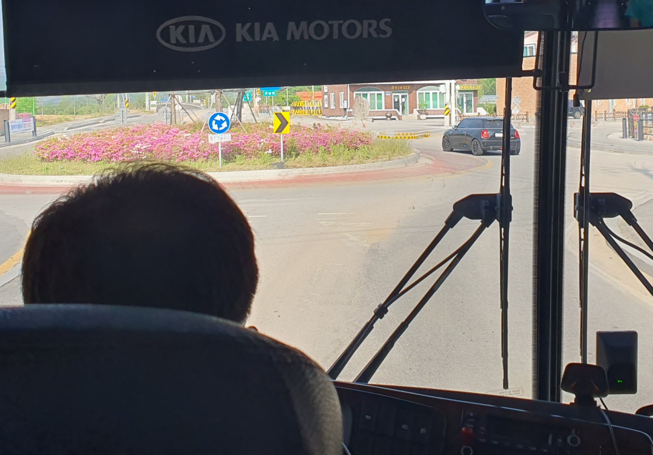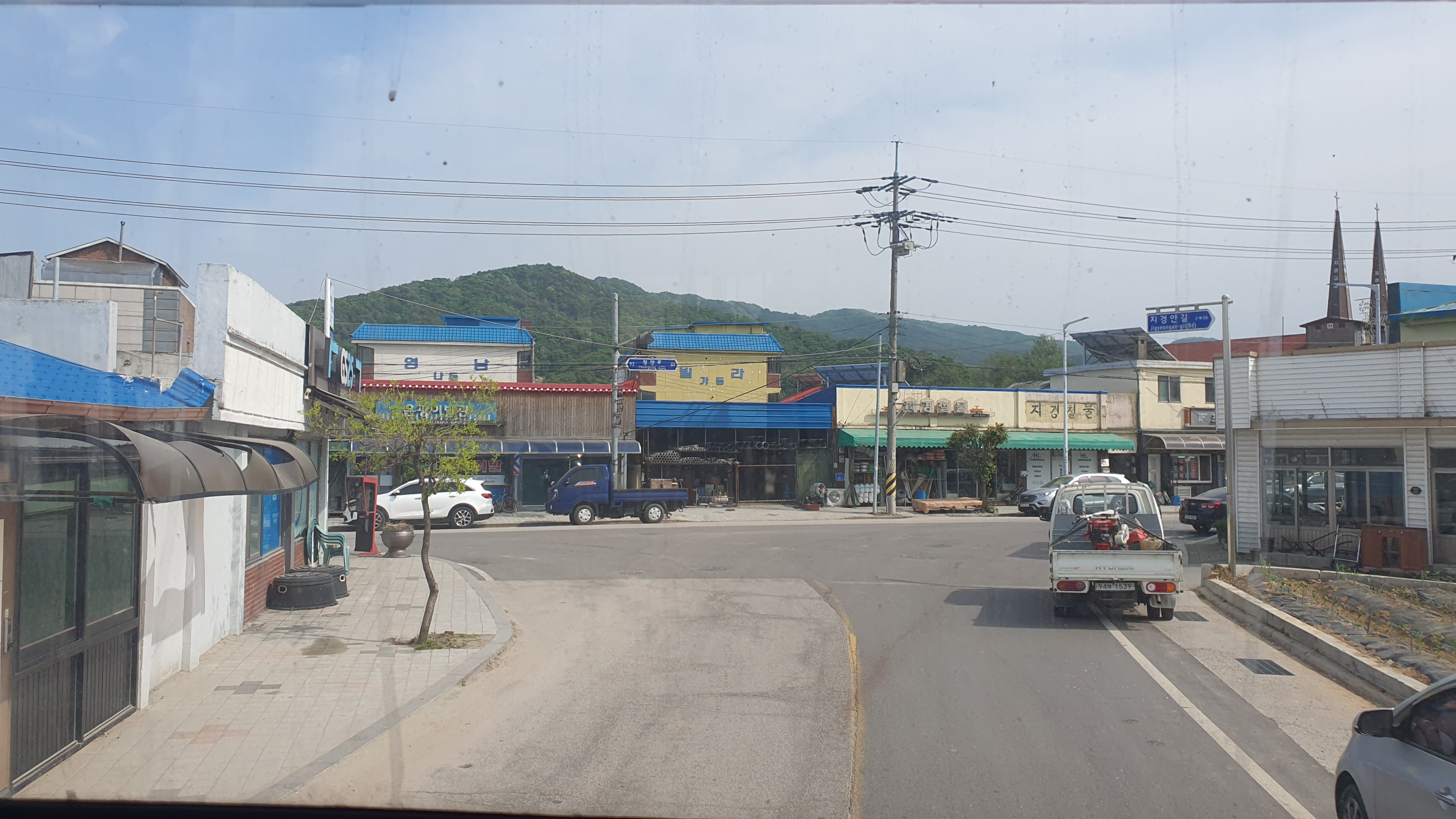 토성리 버스정류장 바로 앞 삼거리에서 버스가 회차하는데, 타거나 내리는 사람이 없으니 바로 돌려 나가버립니다. 토성리는 왕복2차선이라 쩌는 것은 없었지만 희소성으로 타게 되는 것이더군요.