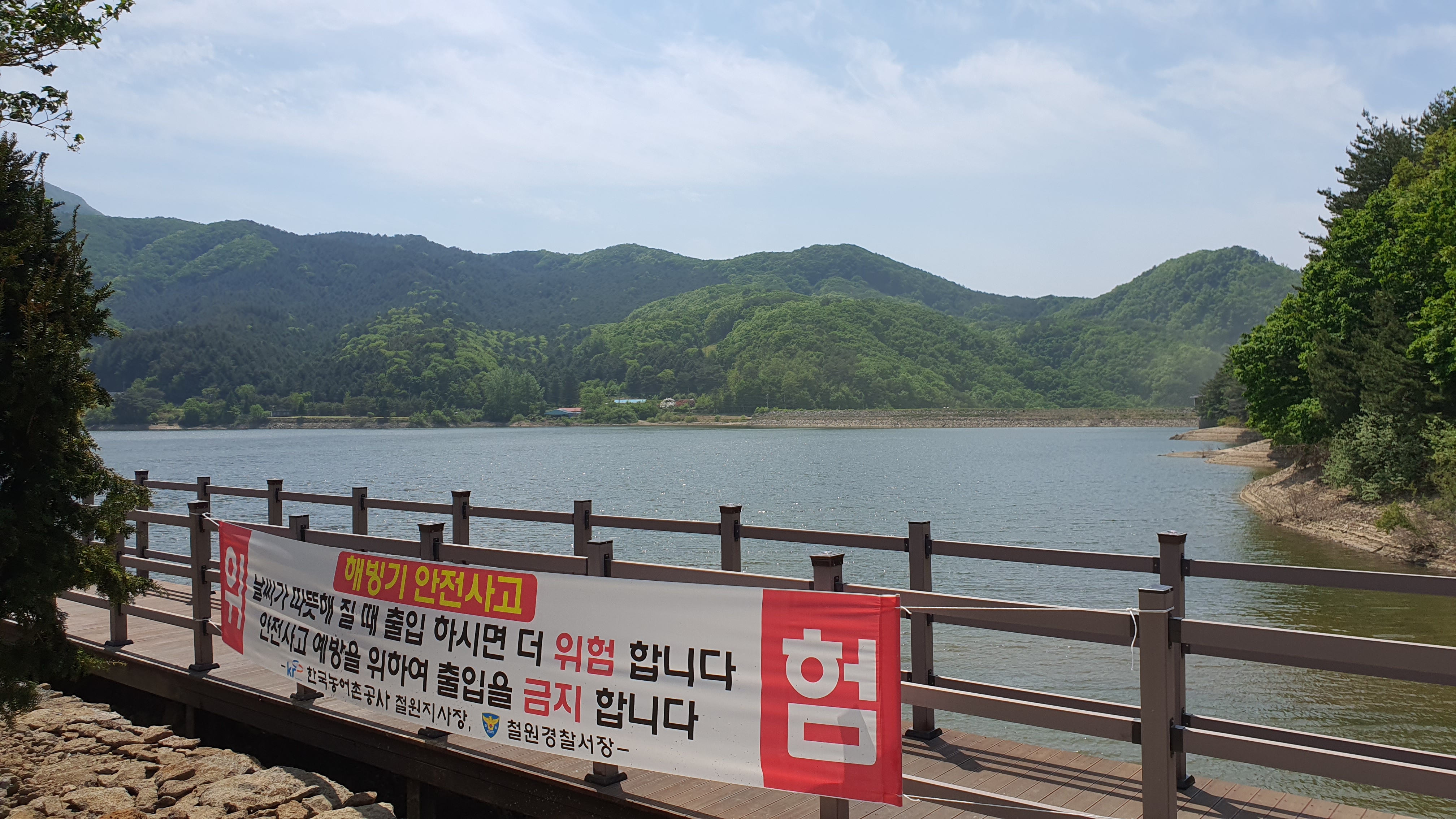정자는 화장실과 달리 이미 준공까지 마쳤는지 개방이 되어 있었는데, 완공된 지 오래되지 않아서 그런지 이천 송갈1리 마을회관 앞 정자와 같이 정말 깨끗했습니다. 버스는 신철원에서 오후 2시에 있으므로 30분 정도 시간이 남아 정자 안에서 저수지를 구경하게 되었죠.