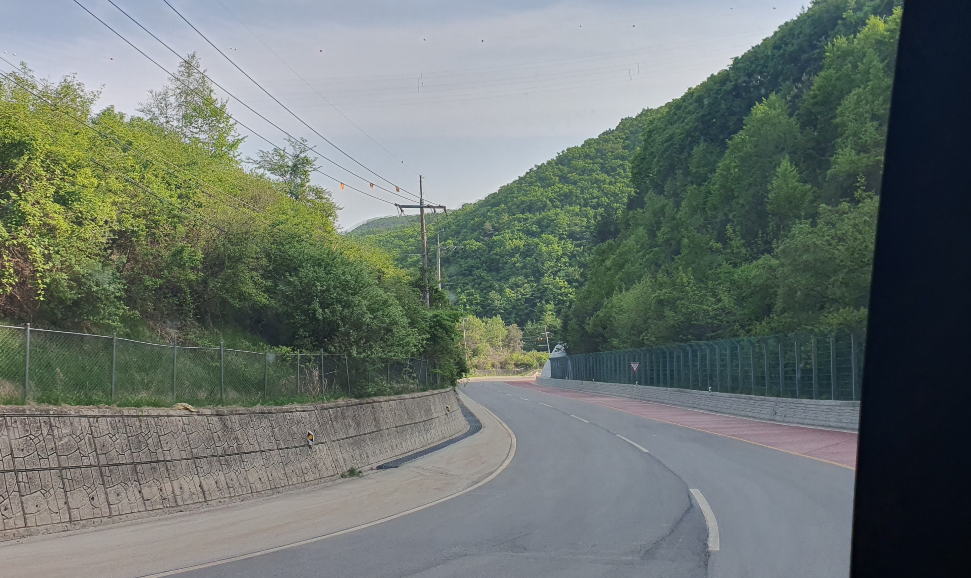 처음에는 길 주변으로 군부대 및 아파트(물론 군인아파트였습니다)가 보였지만 그것도 잠깐이었고, 길 주변으론 온통 산과 나무들뿐인 무인지경이 펼쳐집니다. 와수리터미널을 출발한 이후 한 번도 멈추지 않았던 버스는 여전히 빠른 속도로 달리다가 결국 수피령을 만나 좌우로 요리조리 움직이는데, 정말 고갯길 넘는 재미가 들 수밖에 없더군요. 수피령은 와수리 방향으로 넘는 것이 더욱 재미있다는 그분의 말씀 또한 여전히 유효한 것이었습니다. ㅋㅋ