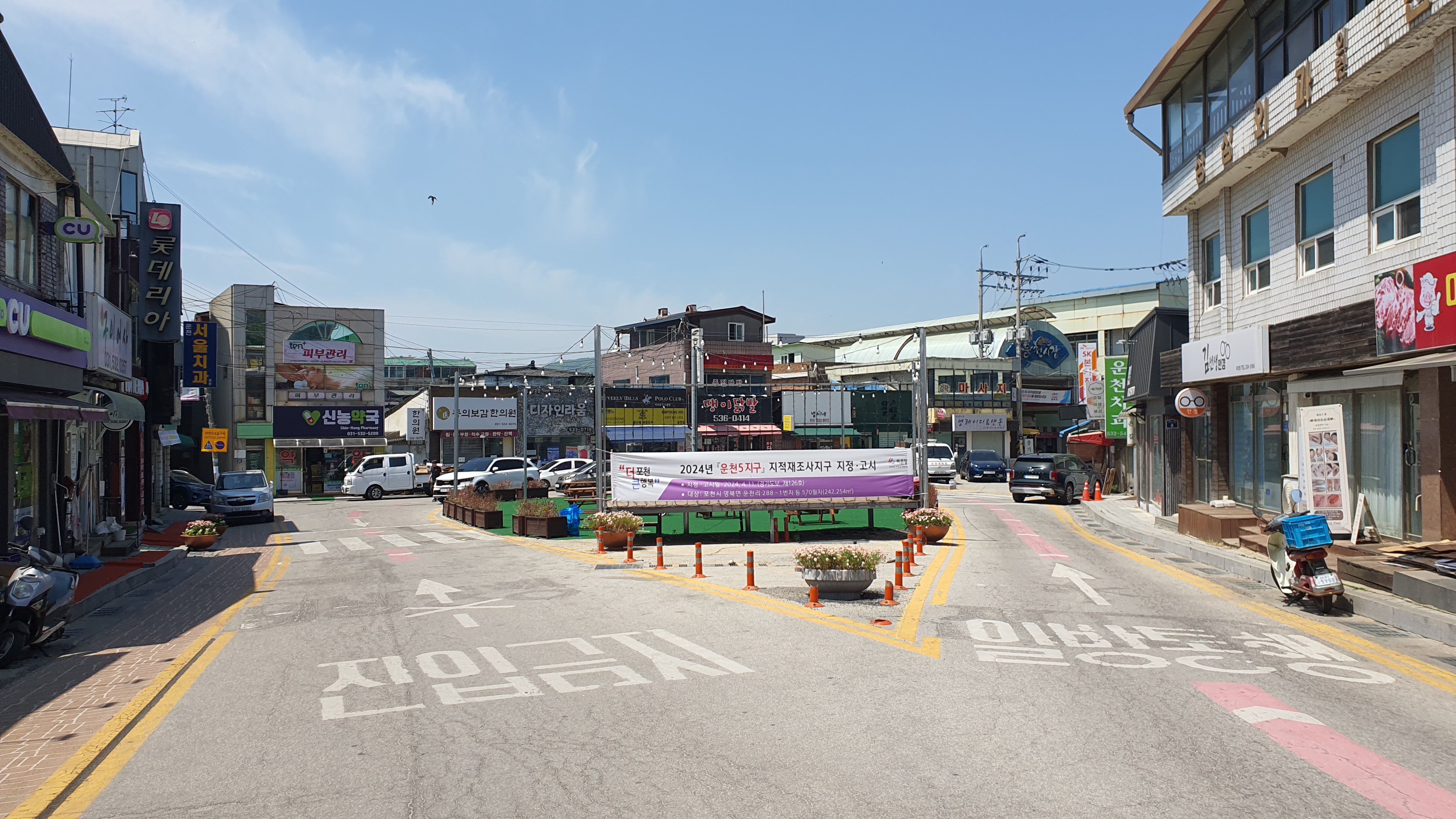 신철원 기점에 도착하여 내려보니 와수리행 버스가 출발하는 신철원우체국 정류장 앞이었는데, 때마침 다음에 탈 와수리행 버스도 오후 3시에 있으니 그동안 군청에 가서 화장실도 들르고 용화동 노선 타는 장소 확인을 해보게 되었습니다. 하지만 타는 장소는 생각보다 너무나 간단하게 확인할 수 있었는데, 흥안님의 사전 정보도 있었지만 마실 것을 사러 CU편의점으로 가면서도 바로 찾을 수 있었던 겁니다. 용화동 버스 타는 곳이라는 자그마한 화살표 모양 이정표를 말이죠.