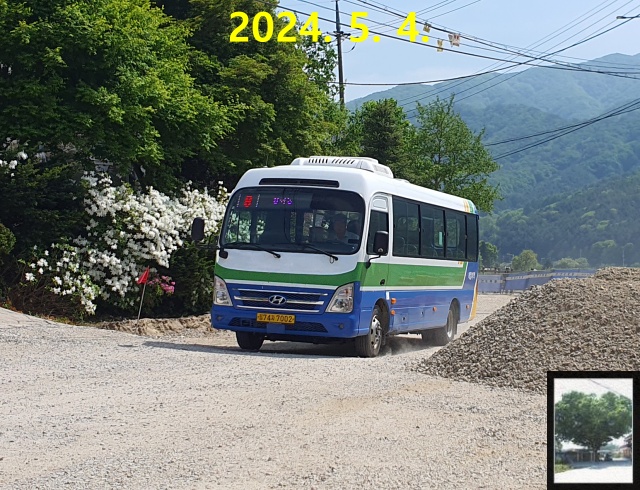 토성리에서 지경리로 다시 나온 이후로는 와수리를 향해 쭉쭉 달렸고, 이번에는 와수리 종점에 내렸습니다. 다만 종점은 와수리 차고지가 아니라 와수삼거리를 살짝 지난 곳이더군요. 와수리 차고지까지 타는 것을 기사가 딱히 막지는 않을 듯했지만, 오늘 마현리 노선을 탈 것도 아니고 차고지 주변을 굳이 버스로 가야 할 이유 또한 딱히 없어서 저는 그냥 와수삼거리에 내리게 됩니다. 사창리로 가는 시외버스가 오후 4시 20분에 있으니 버스시간도 40분이나 남겠다, 와수리 차고지는 와수리 시내도 구경할 겸 슬슬 걸으면서 봐도 충분했으니까요. ㅋㅋ