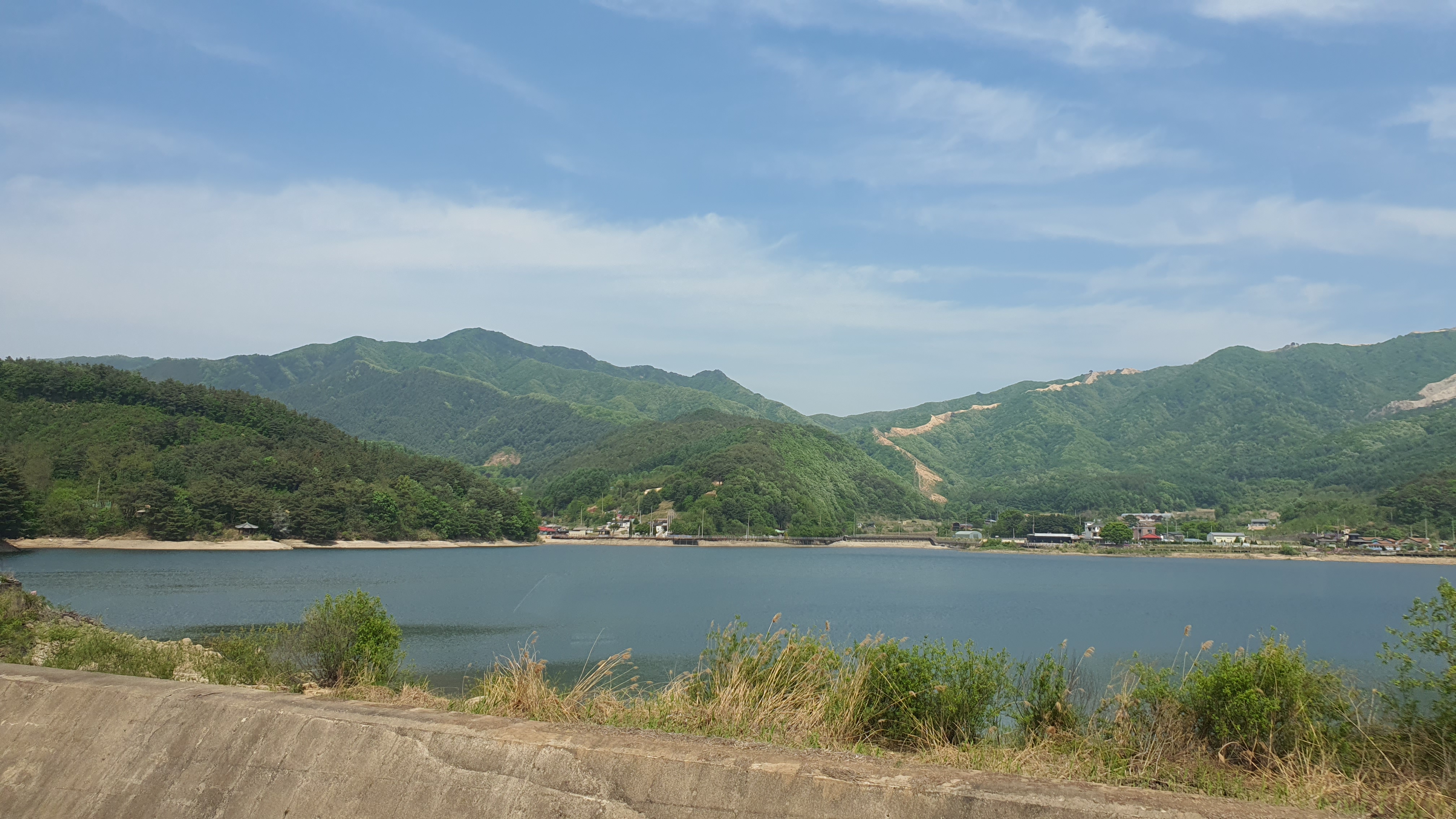 손님들을 태워 나름 북적북적해진 버스가 다시 앞으로 쭉 달리다보니 이번에는 안내방송에 아파트가 나옵니다. 이런 곳에 일반 아파트가 있을 리 없으니 군인아파트일 것은 뻔할 뻔자였지만, 그래도 이런 곳에도 시외버스가 정차한다는 것은 분명 좋은 정보였죠. 명월리를 지나며 계속 산을 넘어가니 오후 4시 50분 정도 되자 목적지인 사창리 시가지가 보였고, 버스는 시가지 외곽도로를 달리다 바로 터미널로 골인해줍니다.