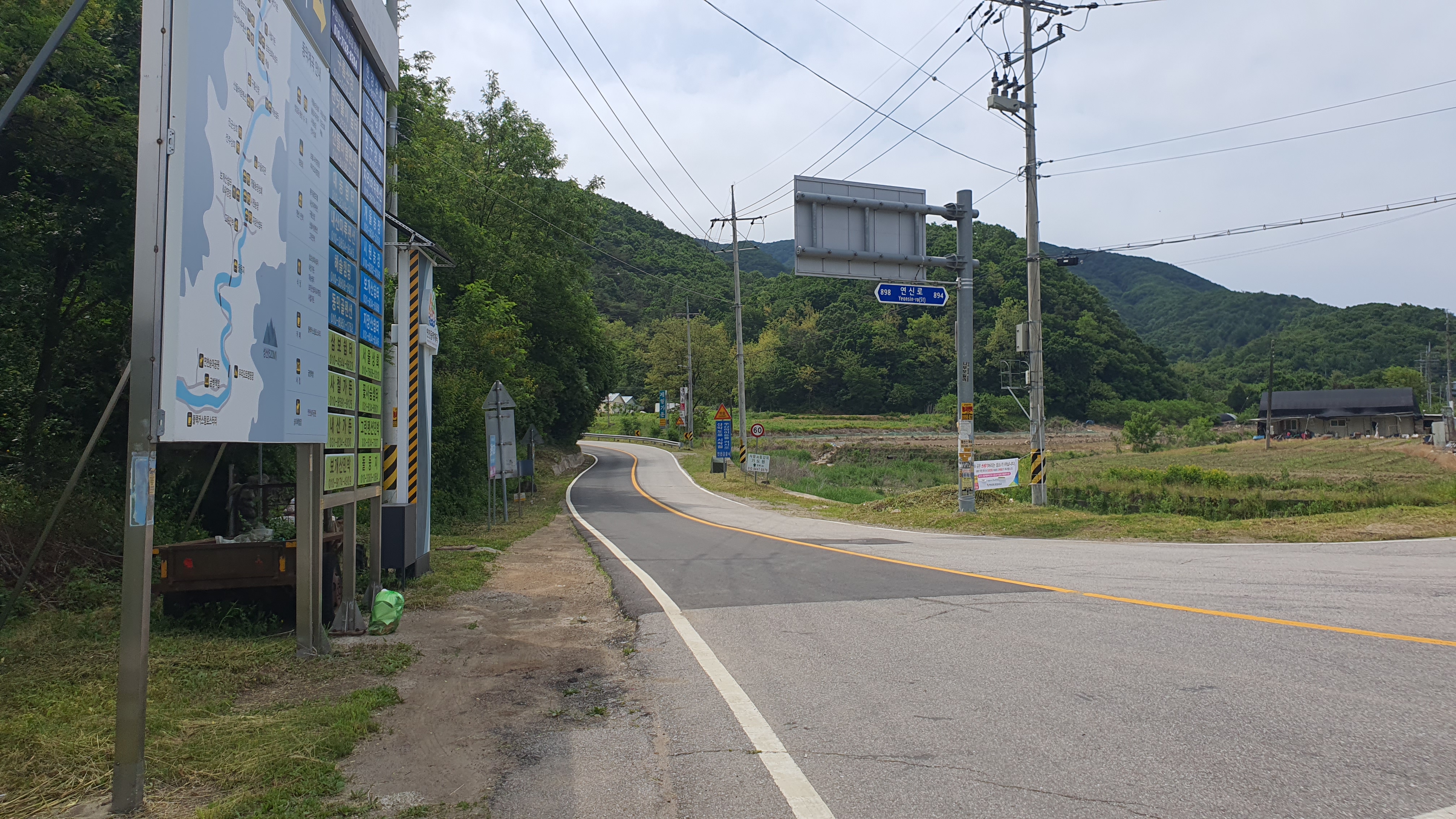 신수리 시가지를 벗어난 버스는 신철원을 향해 우회전을 하는데, 이번에는 나름 험한 고갯길이 나오려는 듯 산들이 눈앞에 보입니다. 그런데 아쉽게도 버스는 군청 노선표에는 적혀 있긴 하던 지명인 싸리골 안으로 들어가지는 않고 그대로 직진을 하더군요. 싸리골은 손님 없으면 안 간다는 이야기가 있었는데 2024년 5월 현재도 마찬가지인 듯 싶습니다.