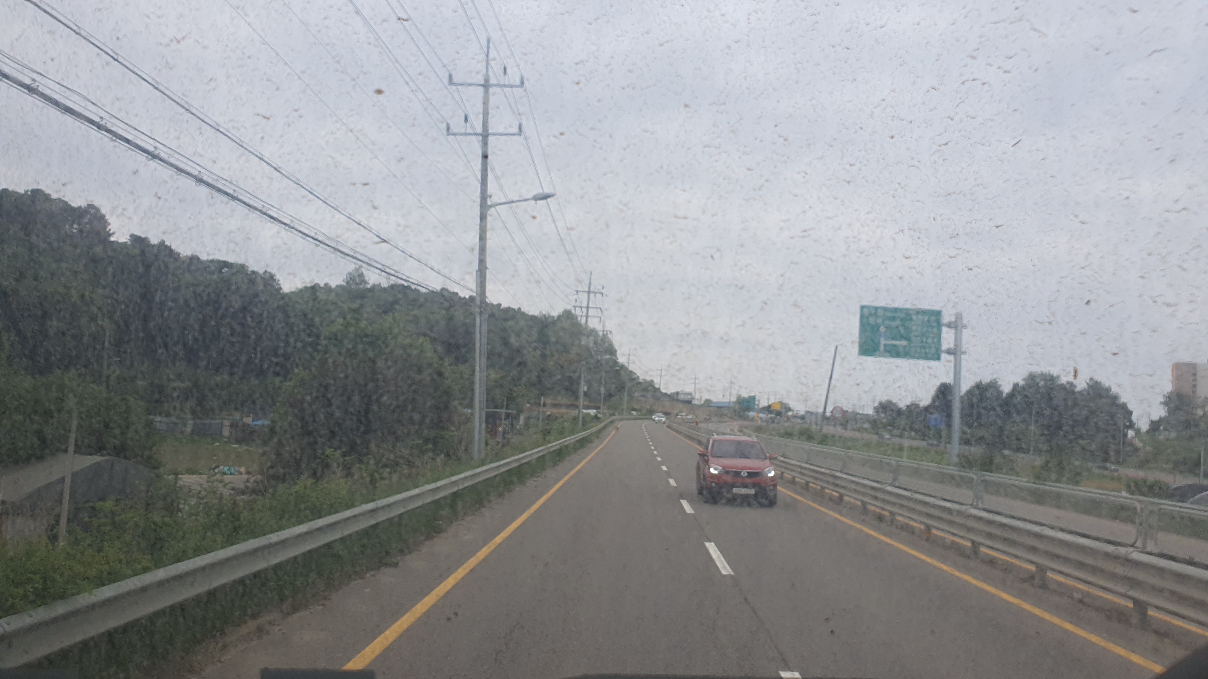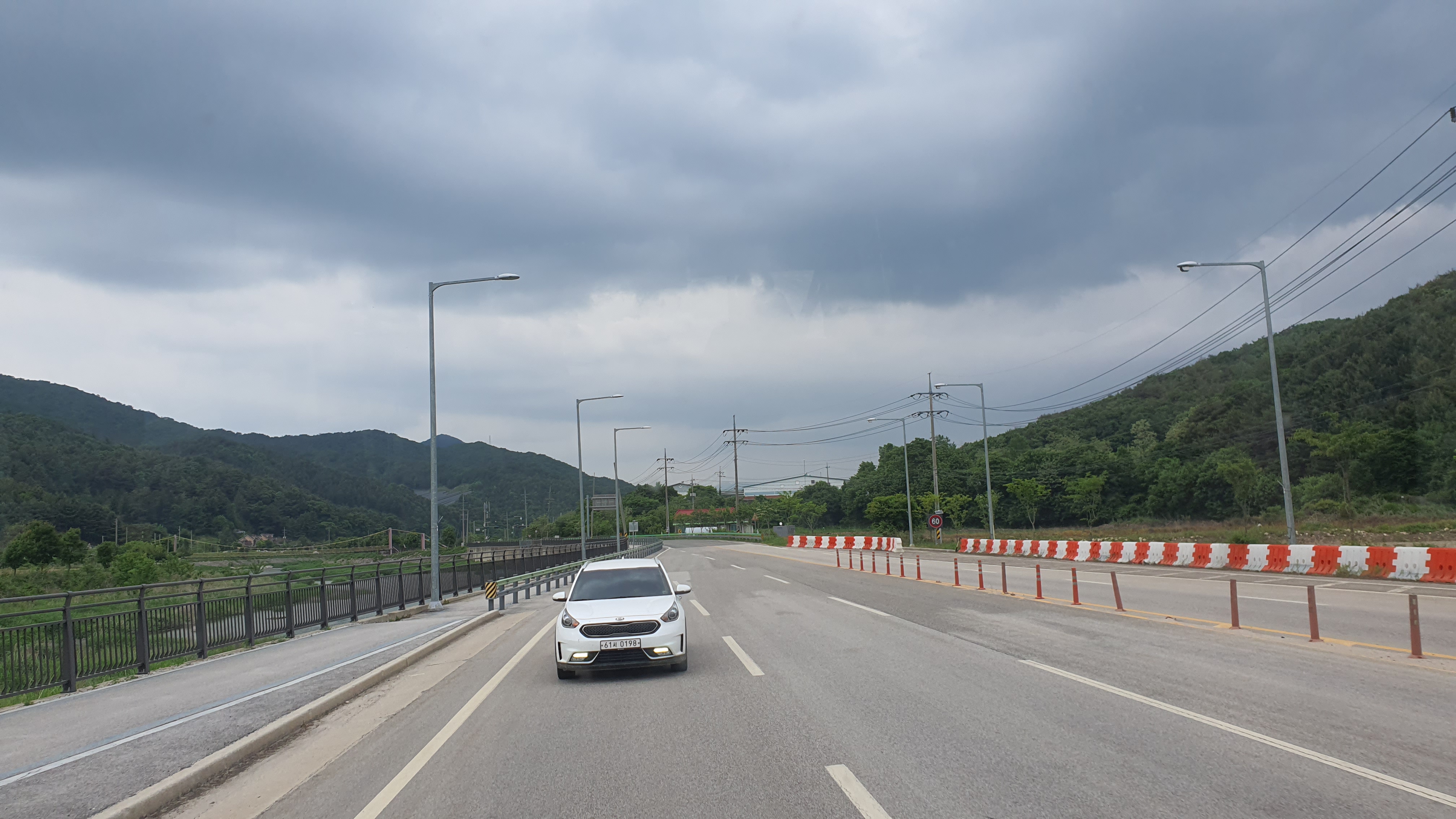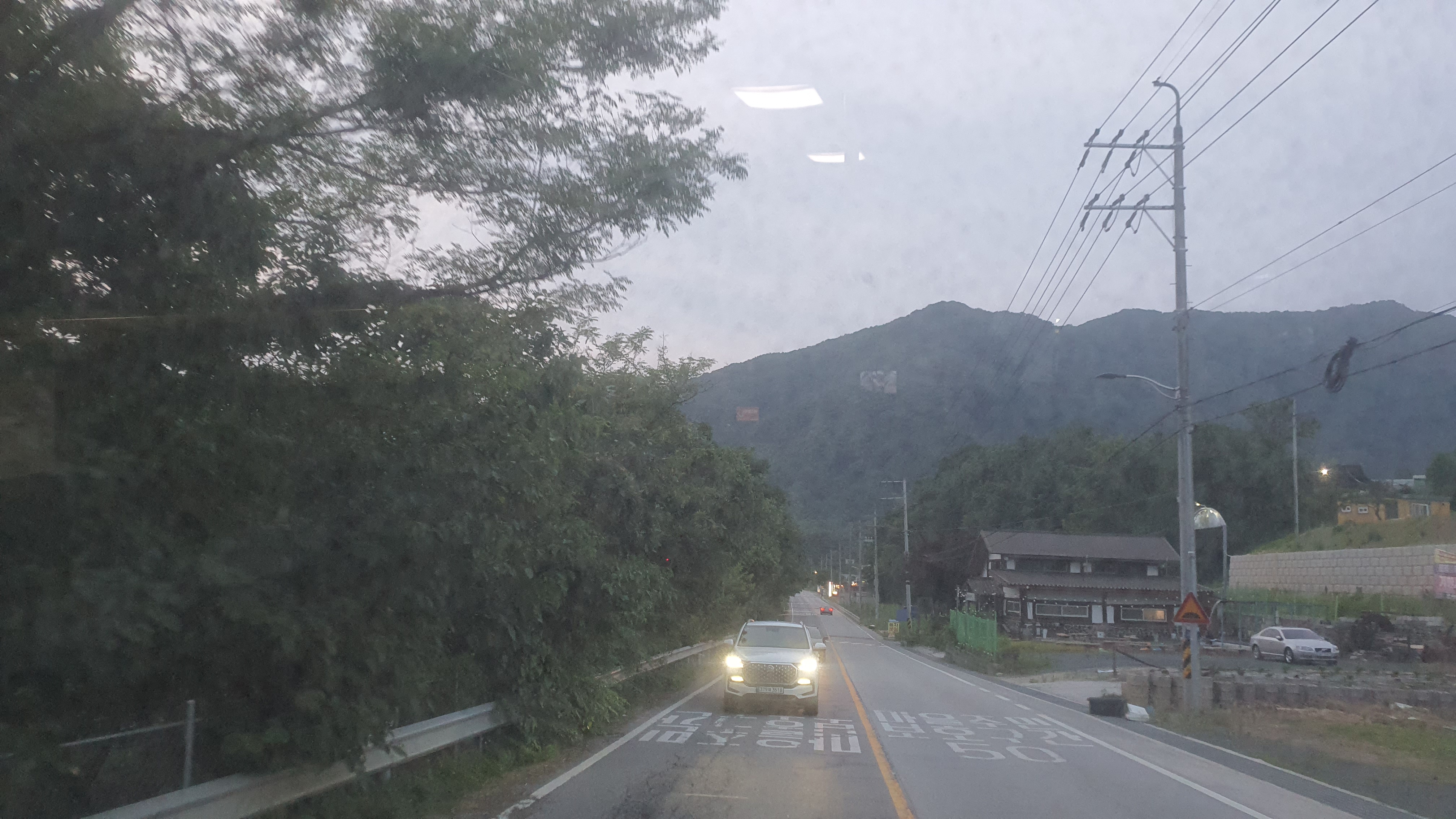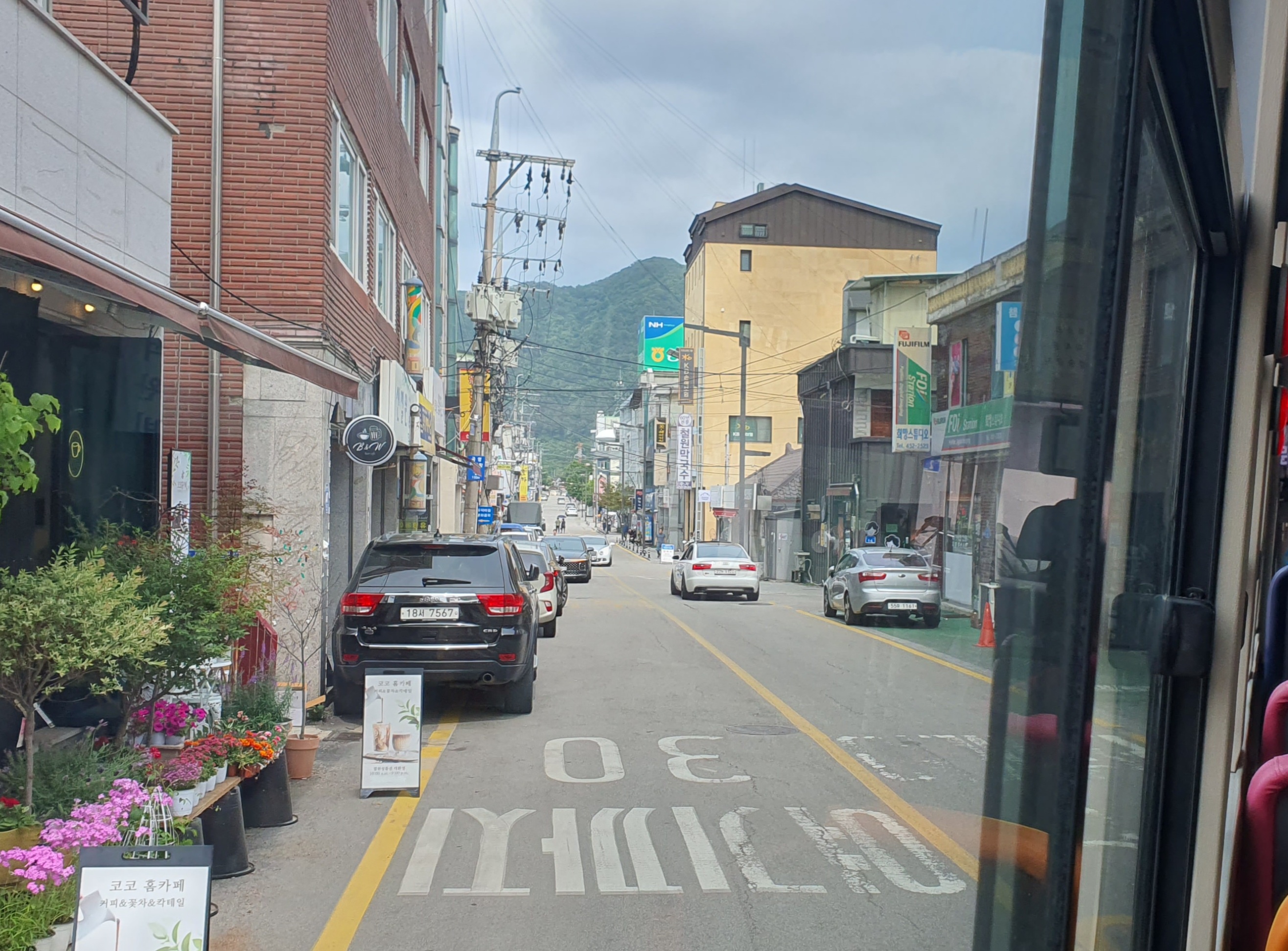 이곳에서 타는 손님은 없었던 탓에 산골짜기를 따라 나있는 왕복2차선 도로를 버스는 빠르게 달리는데, 문혜헌병사거리에 가까워질수록 평야지대가 펼쳐지고 산들이 멀어지는 장면을 보니 지도라는 게 정말 잘 만들어졌다는 걸 체감하게 됩니다. 물론 현재의 지도는 측량기술의 발달 및 GPS 위성 등을 바탕으로 만들어진 것이므로 정확한 거야 두 말하면 입 아프지만, 이걸 직접 체감하는 것은 또 다른 거였죠. 높새바람 및 푄 현상이 생기는 현장을 직접 두 눈으로 보았을 때와 같은 느낌이랄까요?