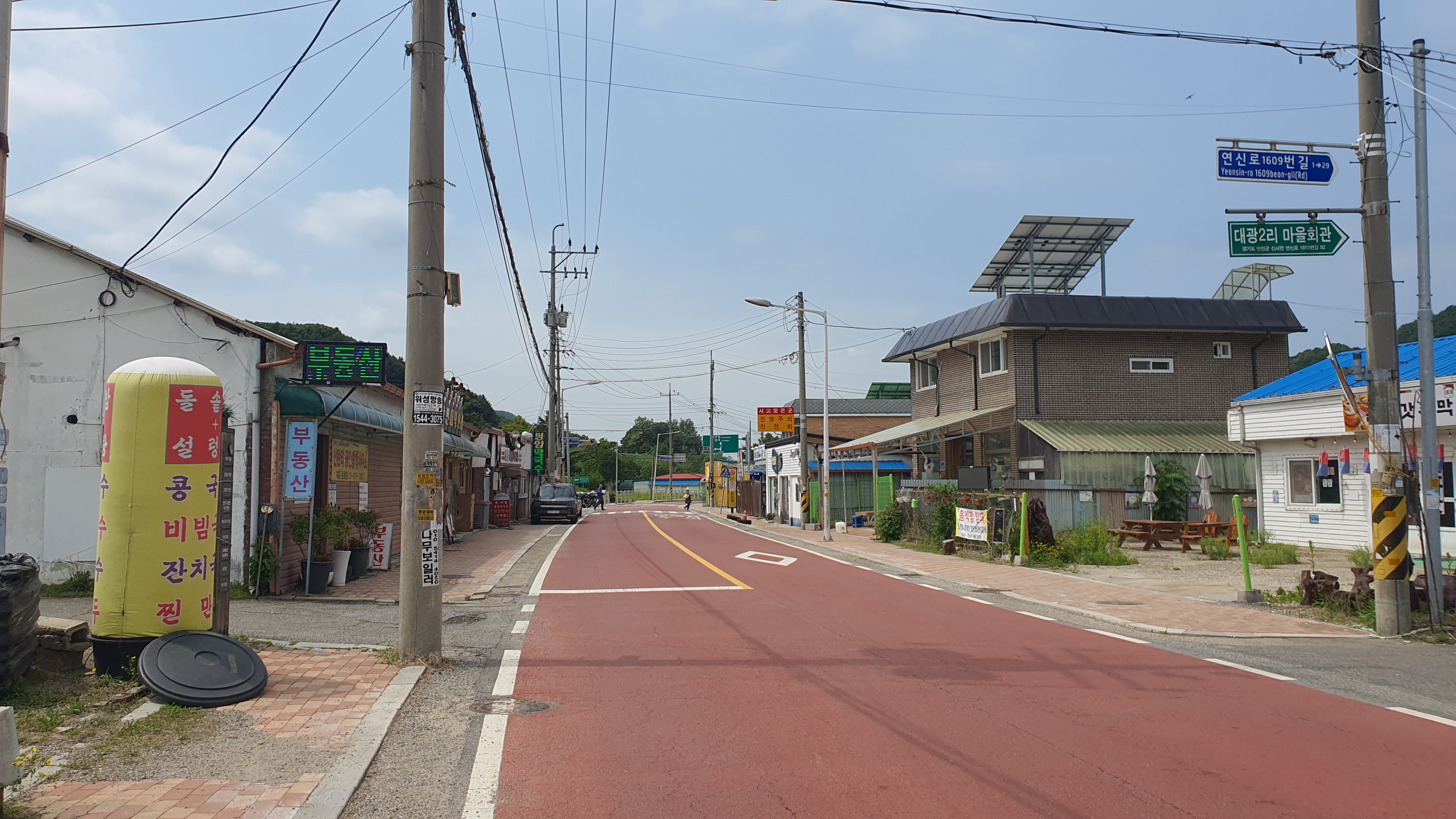내려보니 연천교통 차고지가 근처에 있었습니다. 39-2번과 G2001번이 여기를 출발해서 그 먼 거리를 왔던 거구나 생각하니 경기도 최북단 마을의 무게가 크게 느껴집니다. 아무튼 고대산 자연휴양림은 여기서 안으로 쭉 들어가면 갈 수 있구나도 알게 되었는데, 여기는 어쨌든 면소재지는 아니기 때문인지 대광리보다는 확실히 인구 수며 가게들이며 확연히 적은 느낌이 나더군요.