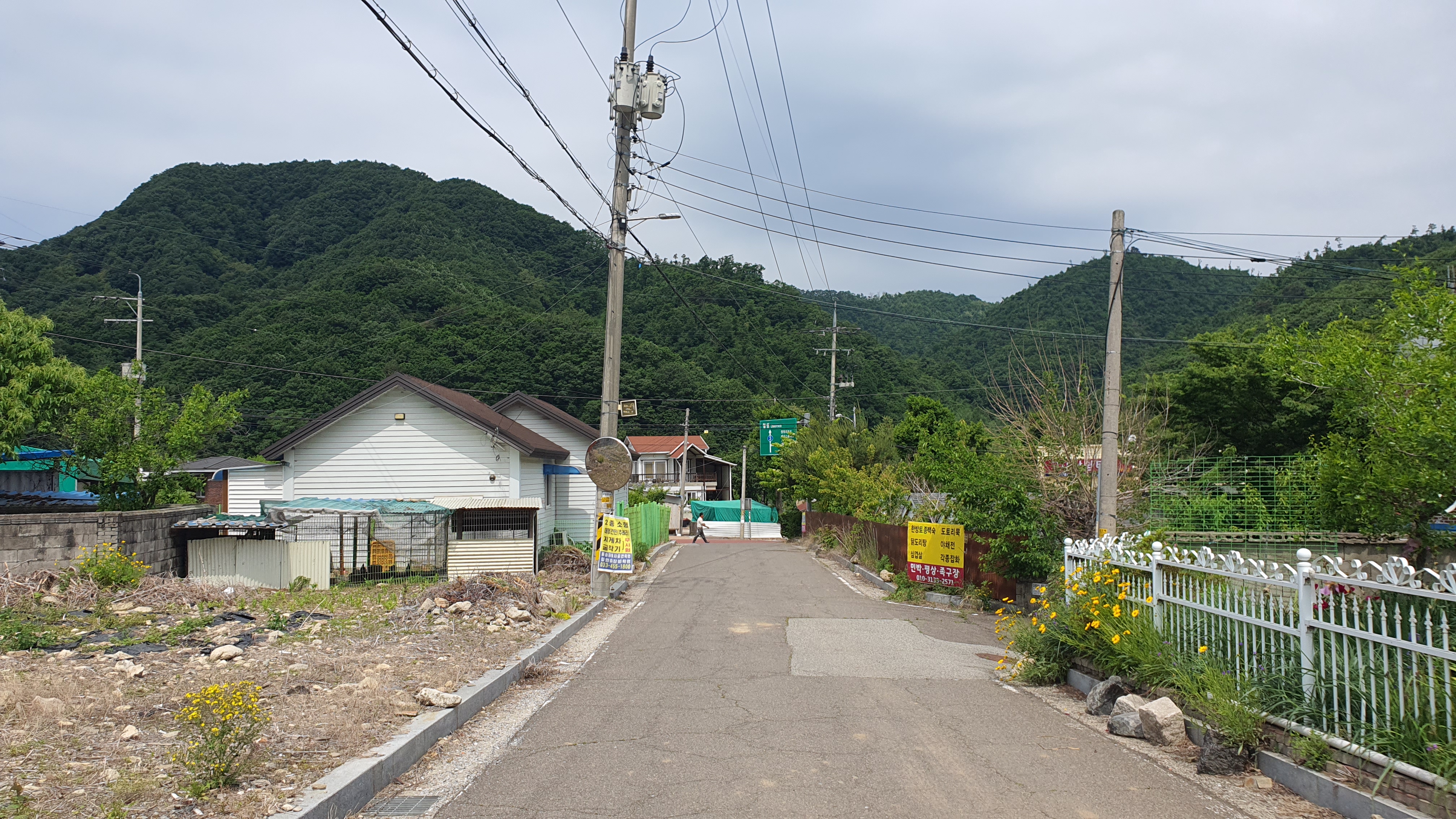 버스에서 내린 사람은 저 외에 등산객으로 보이는 아저씨들 3분이었고, 버스는 제가 예상했던 대로 오른쪽 구석의 길에 후미를 박아넣어 회차를 하고는 내산리종점을 향해 곧바로 떠나버렸습니다. 저 또한 도신3리를 향해 정면에 버티고 있는 고개를 넘어가야 해서 바로 오르막길을 향해 발걸음을 옮기게 되었습니다.