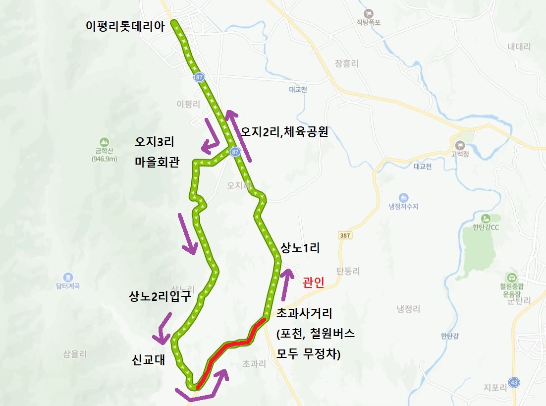 [철원 11번(이평리롯데리아~이평10리,오지2리→오지3리마을회관,오지3리,상노2리,신교대,상노1리,오지1리입구→오지2리 이하 역순)][환승]