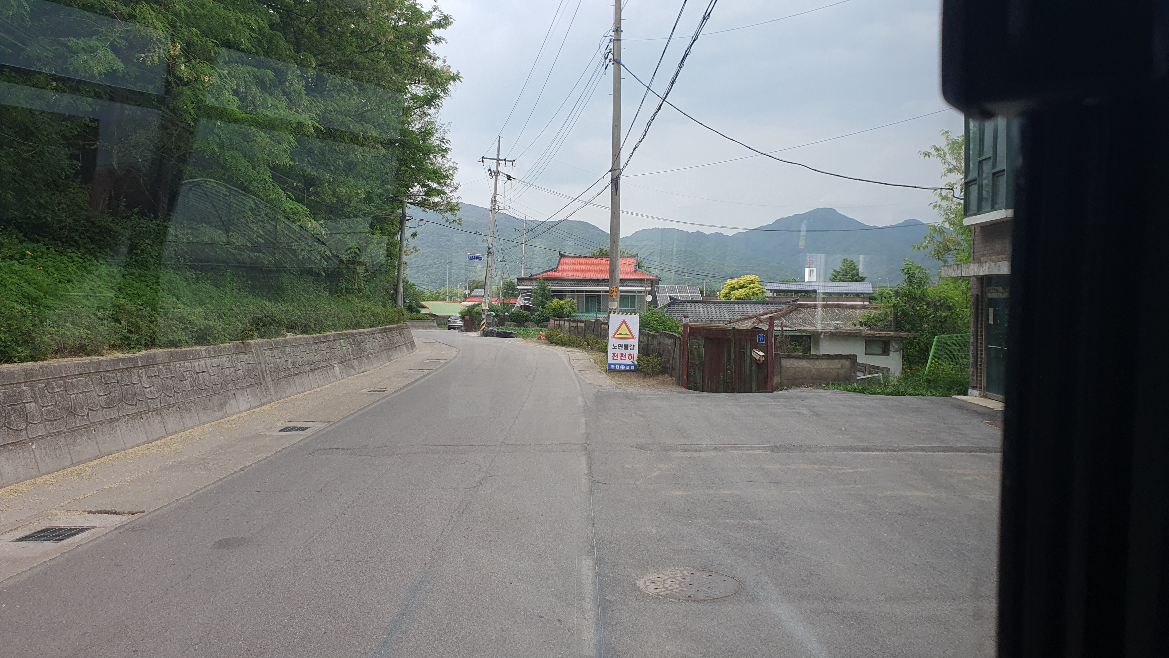 타는 사람도 내리는 사람도 아무도 없이 버스는 구불구불한 도로를 따라 산골짜기 깊숙한 곳으로 들어가기 시작했고, 내산리 종점으로 가기 직전 삼거리에서 좌회전을 하여 오르막길을 올라가기 시작합니다. 문목동으로 가는 것이었죠.