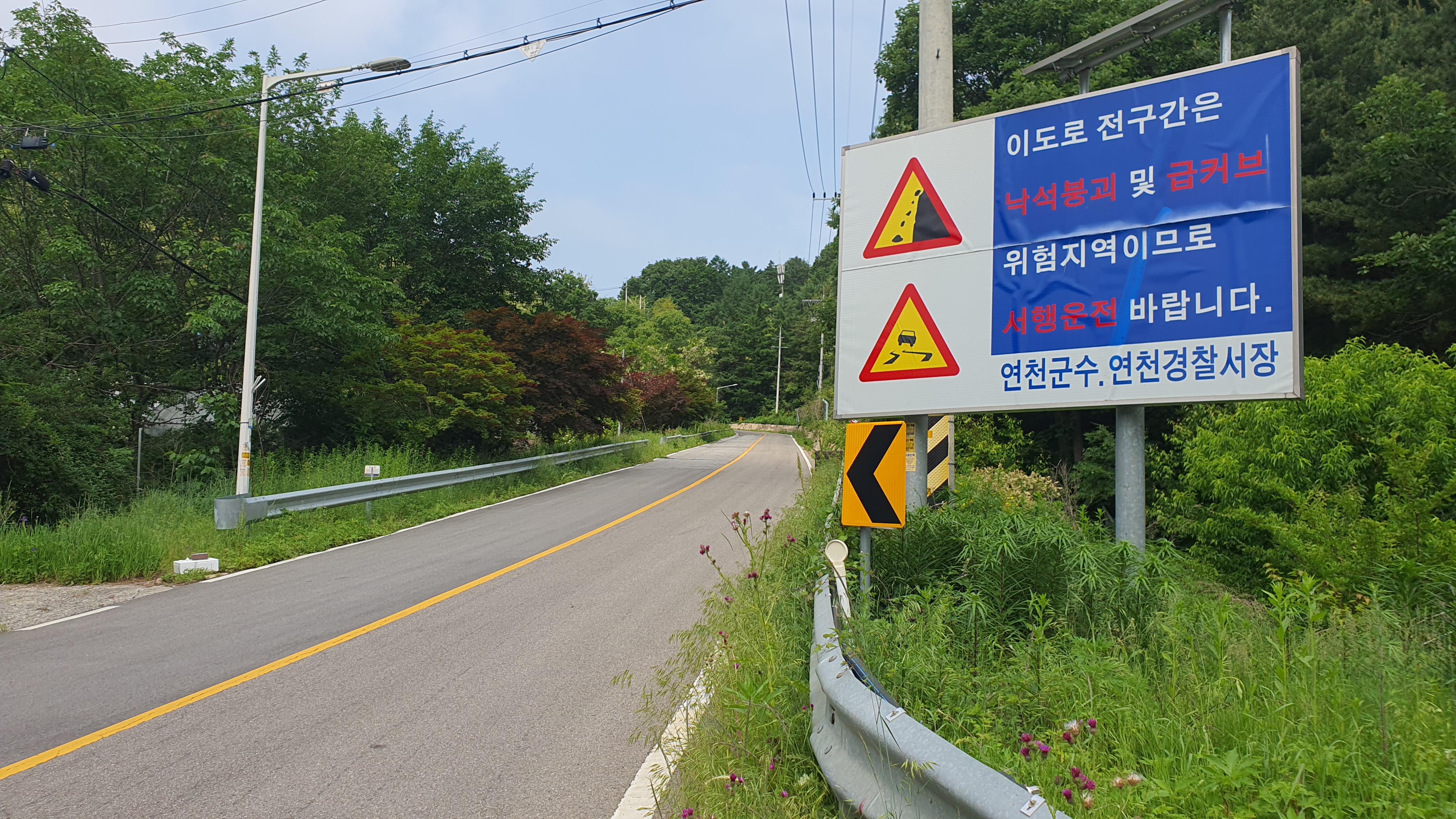 그런 가운데 자동차는 고갯길을 넘어 내리막길을 달리고 있었는데, 생각했던 것보다 길이 좀 험했습니다. 비록 열화판이긴 하지만 미시령을 넘는 것 같은 느낌마저 들었으니 말이죠. 물론 여유시간을 충분히 두었기에 그 고갯길이 장애물이 될 수는 없었지만, 도신3리 방향으로는 내리막길이 더 많았던 모습에 가슴을 쓸어내리게 되었습니다.