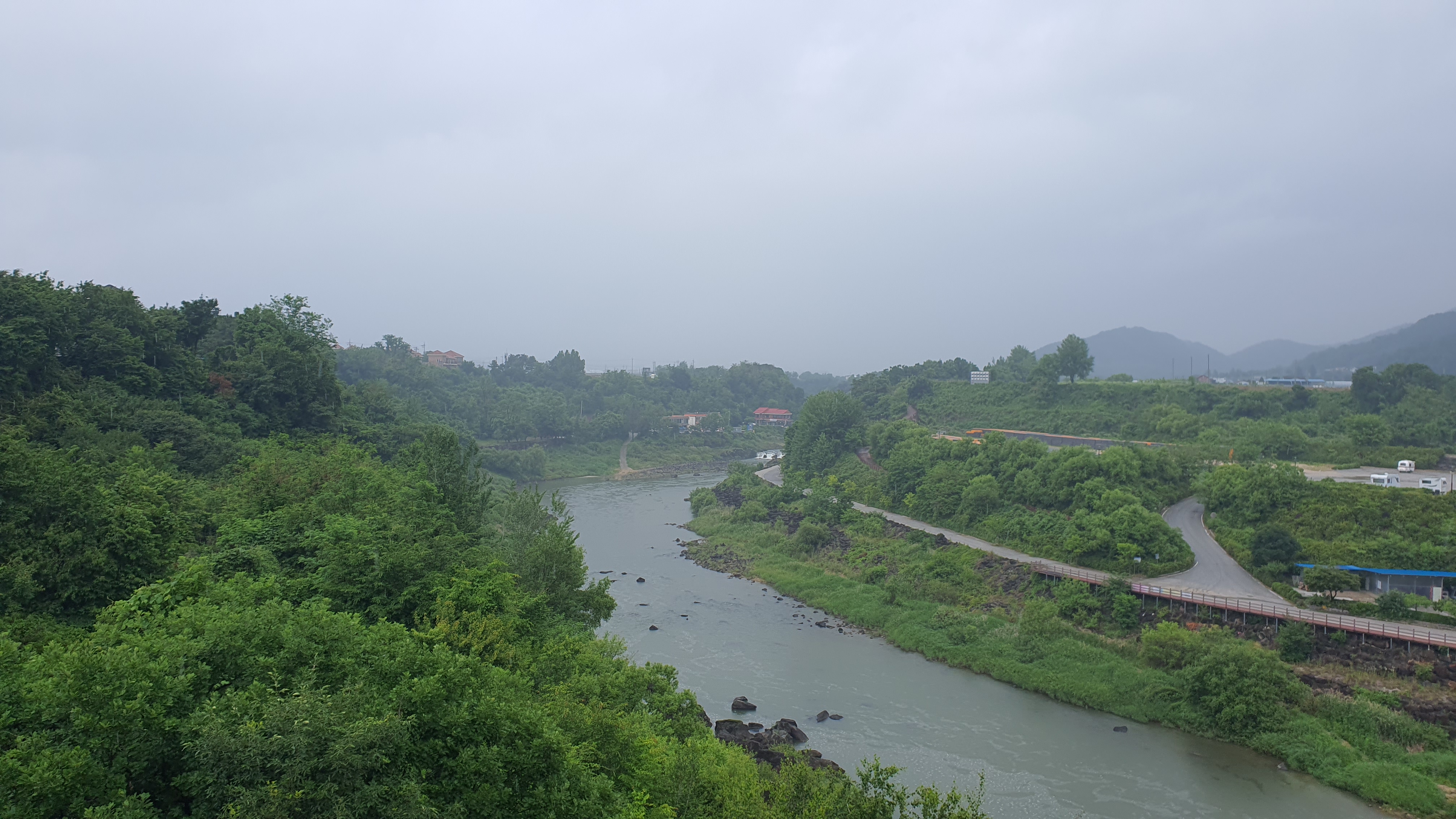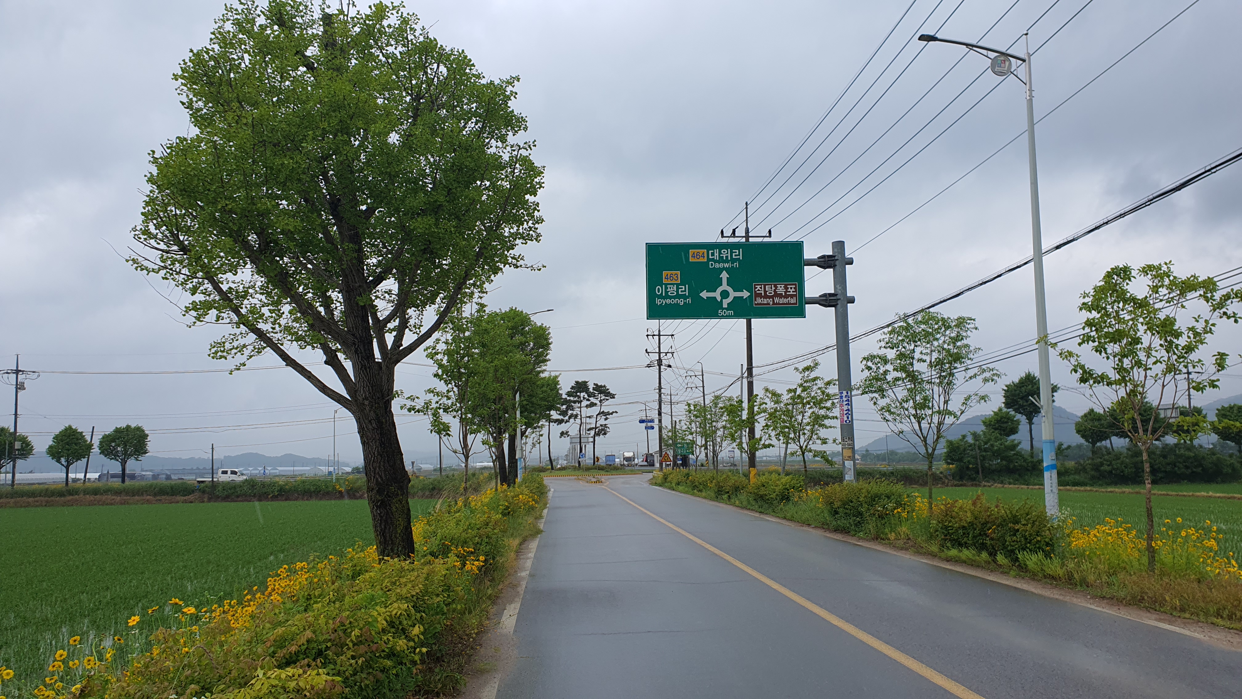 회차를 마치고 우리를 내려준 버스는 문혜리를 향해 바로 떠났고, 우리는 공영21번의 경로대로 직탕입구까지 걸어나갑니다. 시간상 직탕폭포를 못 보고 간다는 게 좀 아쉬웠지만, 그 운행 시간대상 가성비가 매우 좋지 못한 공영21번만 가는 구간을 도보로 때울 수는 있었다는 것이 참 다행이었죠.