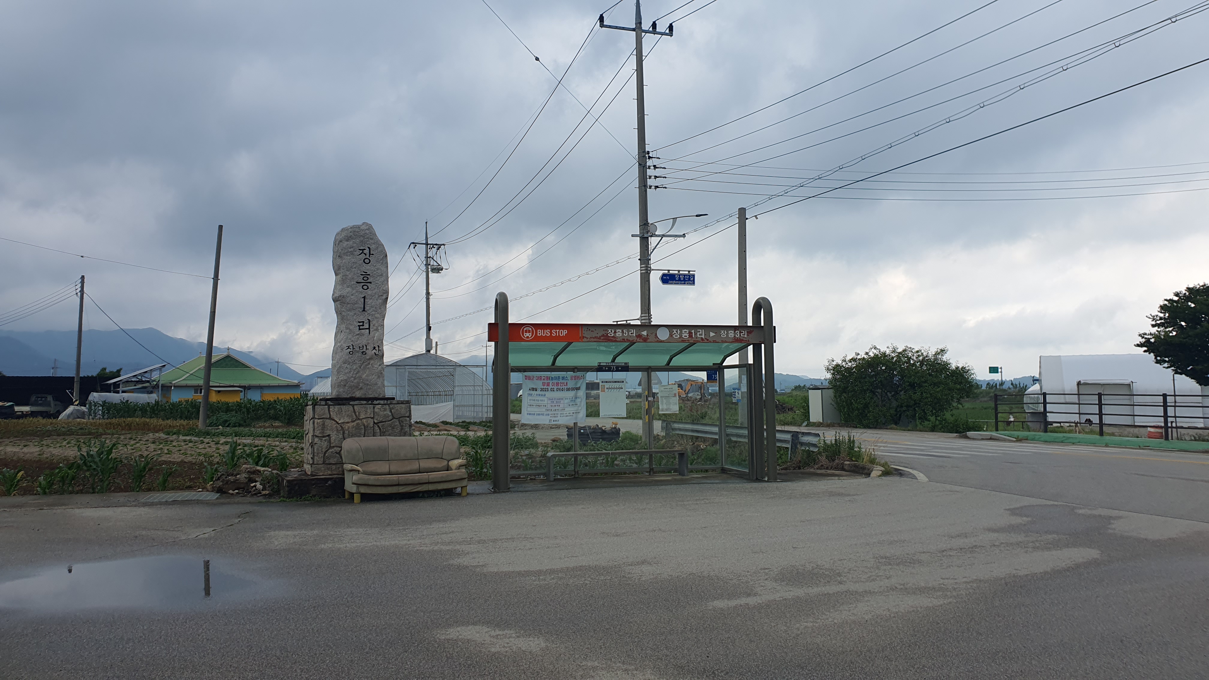 버스는 국방부사거리에서 동송~신철원 노선과 만날 듯한 느낌이었지만 그렇지는 않았고, 큰길 바로 옆으로 나있는 길을 따라 장흥1리까지 그대로 질주해 줍니다. 종점인 장흥1리 근처에 이르니 길이 좁아졌지만, 어찌됐든 노선이 짧다보니 출발한 지 10분도 안 되어 종점에 도달할 수 있었습니다.
