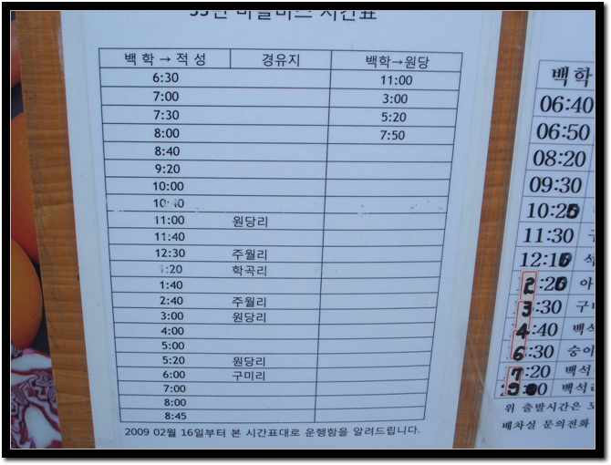 ※ 2009년 3월 27일에 촬영된 시간표이므로 현재와는 많은 차이가 있으니 참고용으로만 보시기 바랍니다.